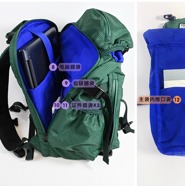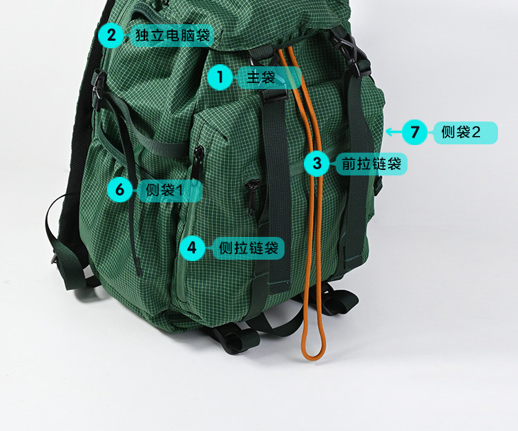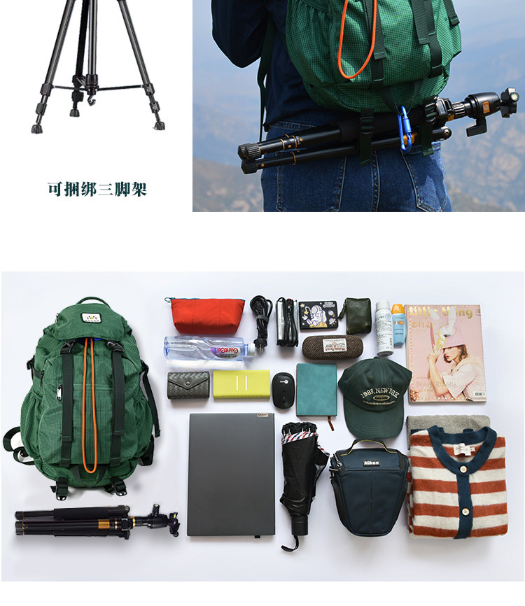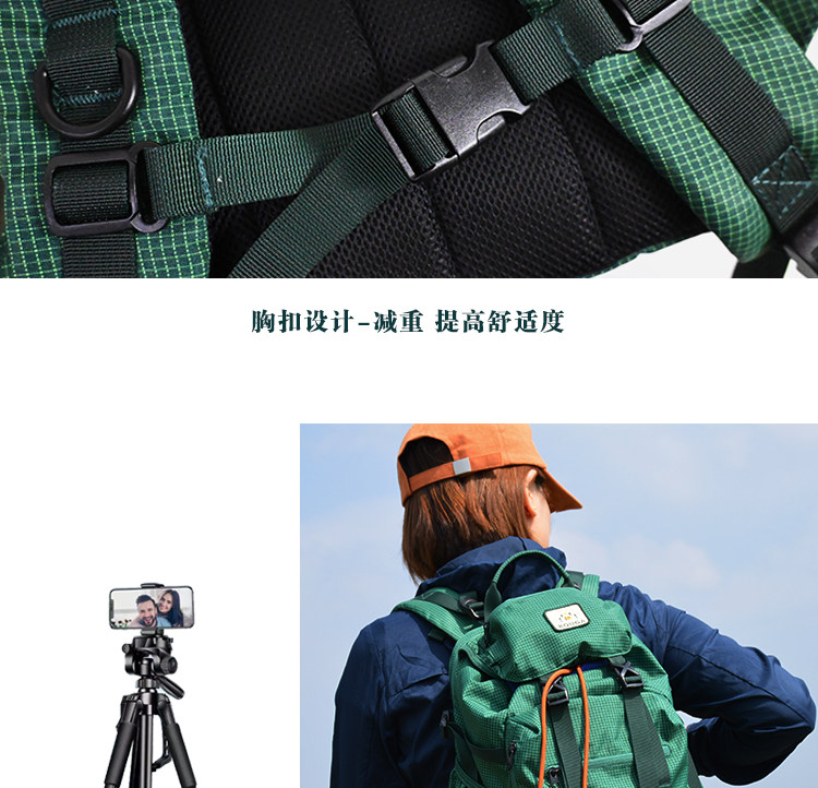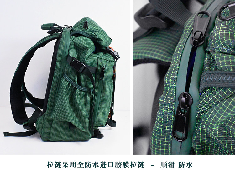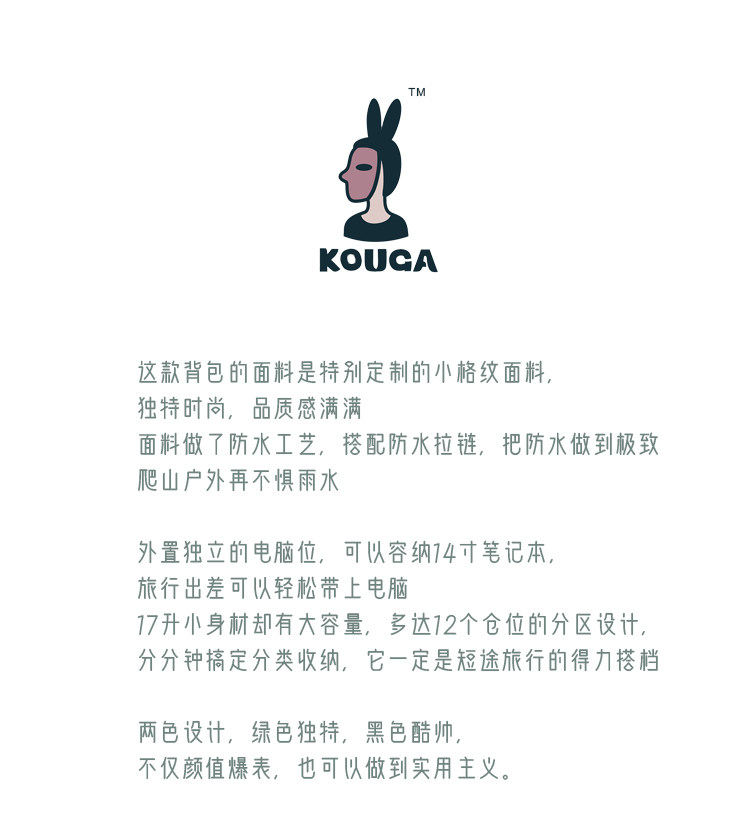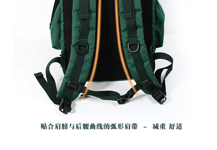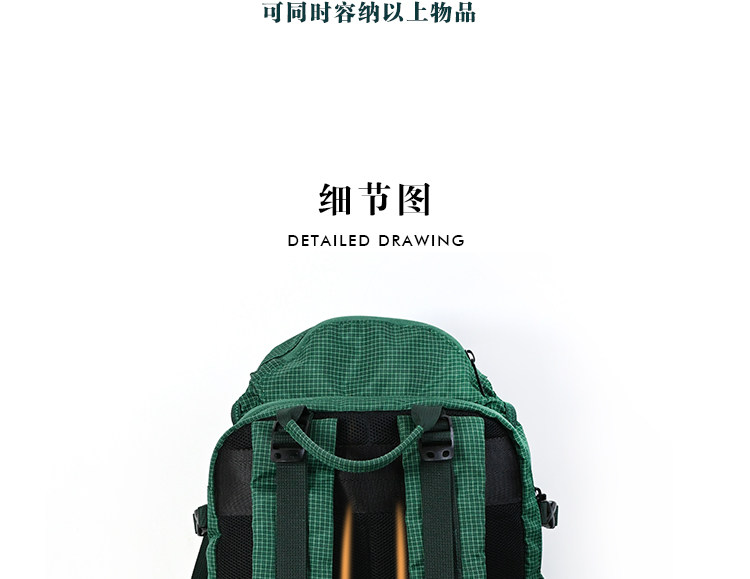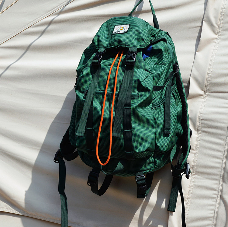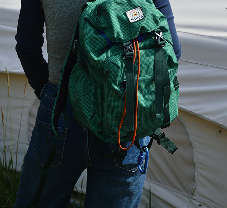 Kouga Niche Design Short-Distance Travel Mountaineering Backpack Multifunctional Waterproof Computer Bag for Women Green Drawstring Plaid