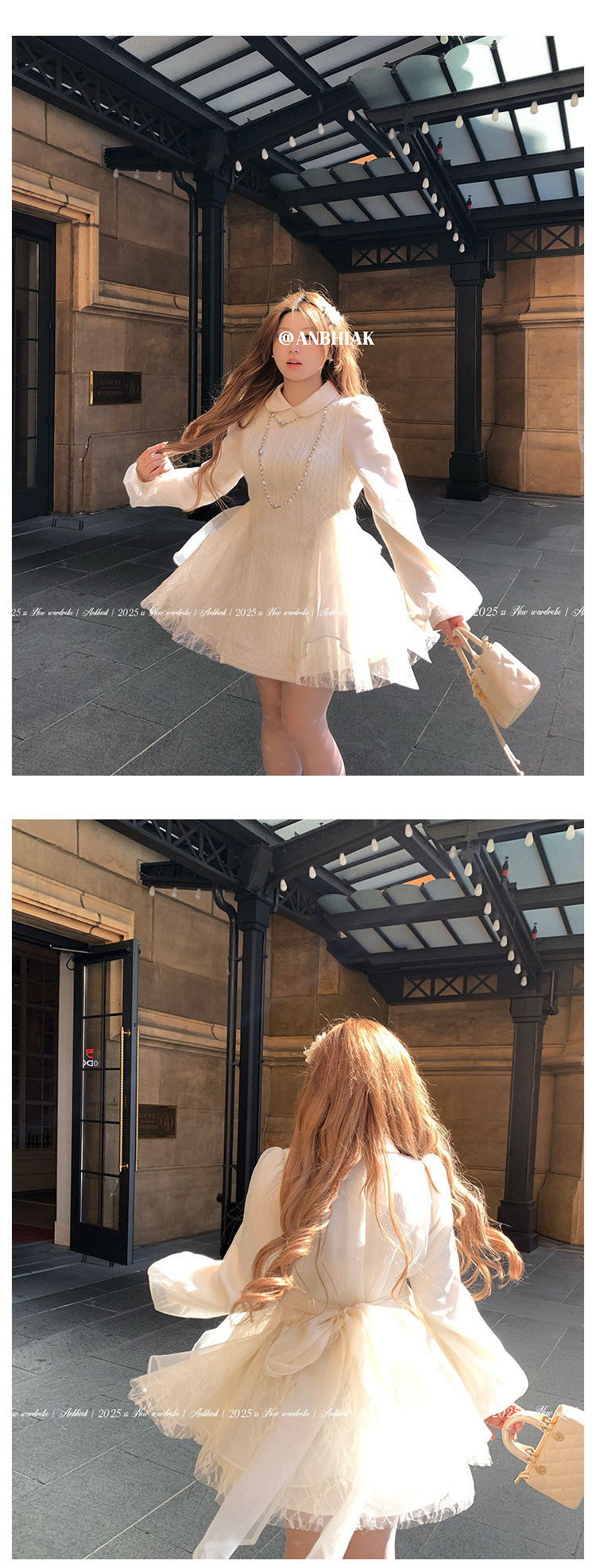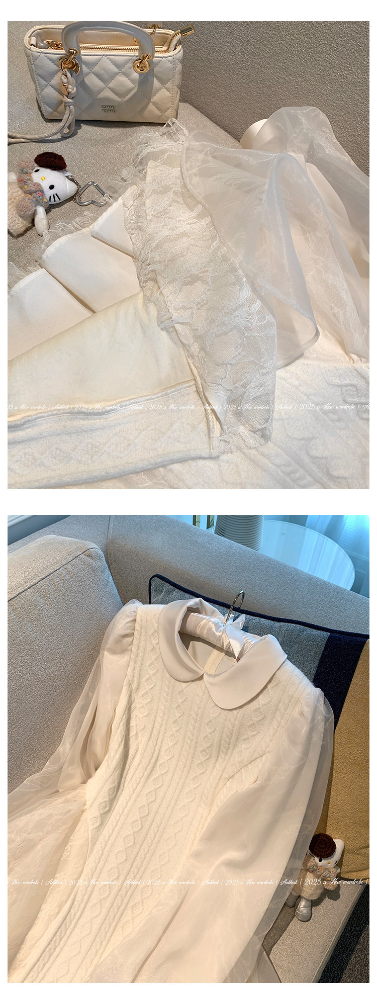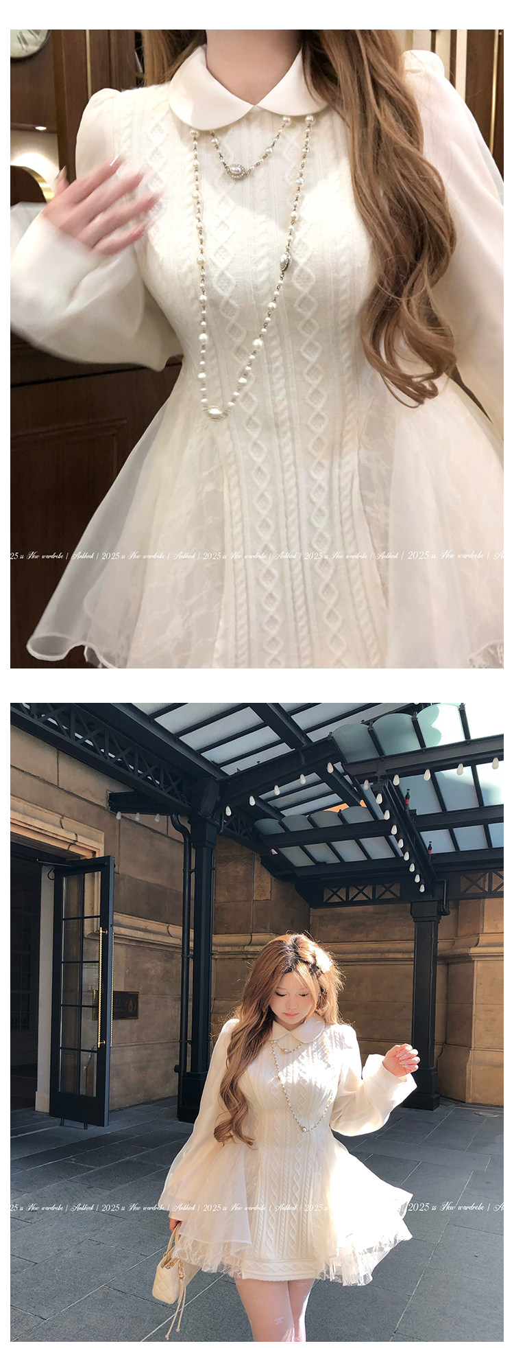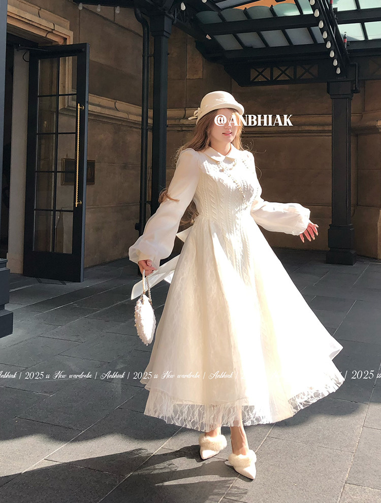 Annie Is Not Popular. Doll Collar Organza Spliced Cable Knit Wool Dress for Women, Slightly Chubby, Plus Size, Waist-Cinching, Elaborate Dress
