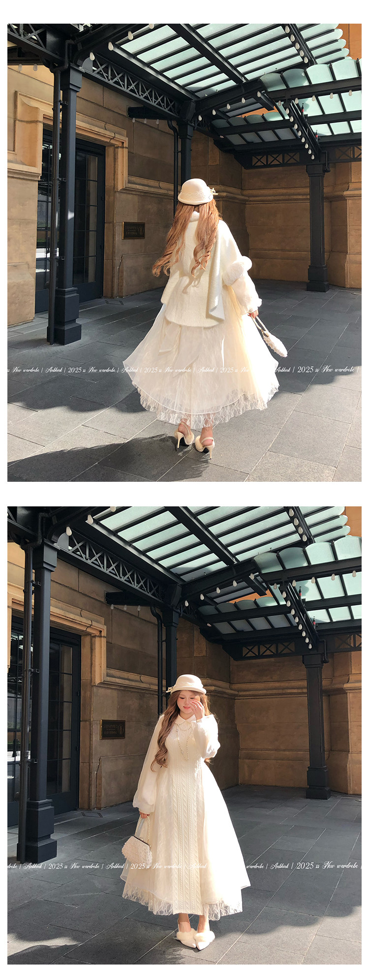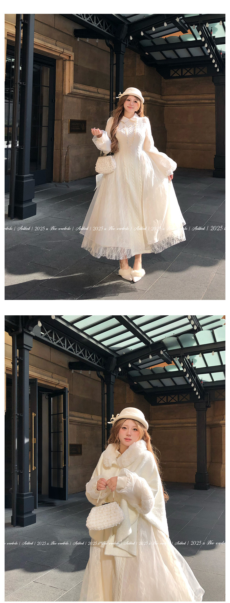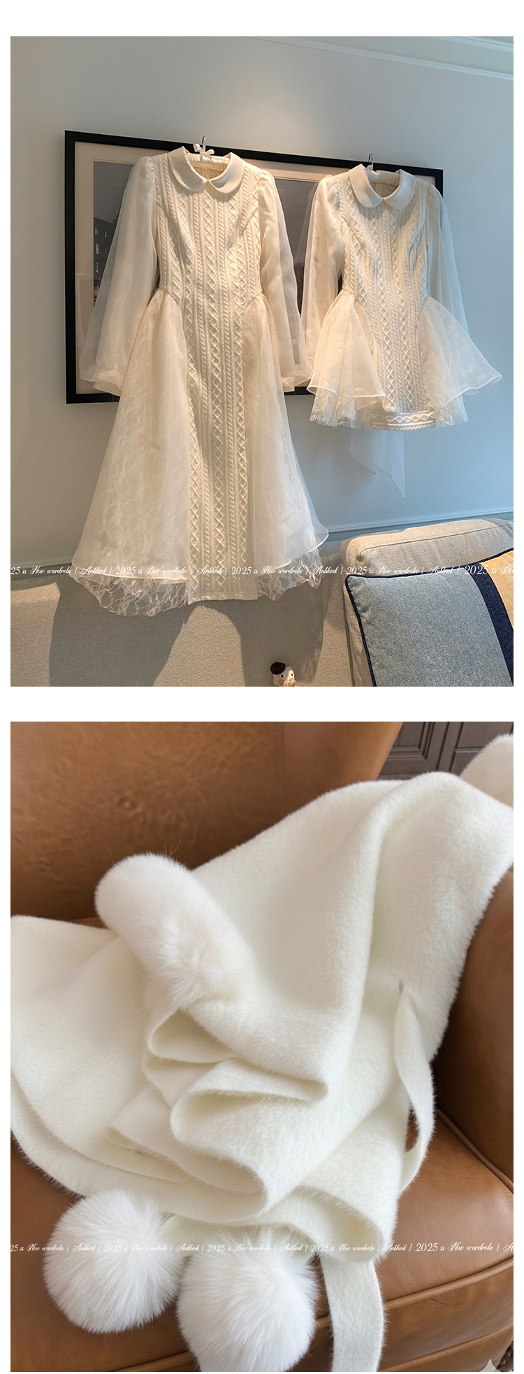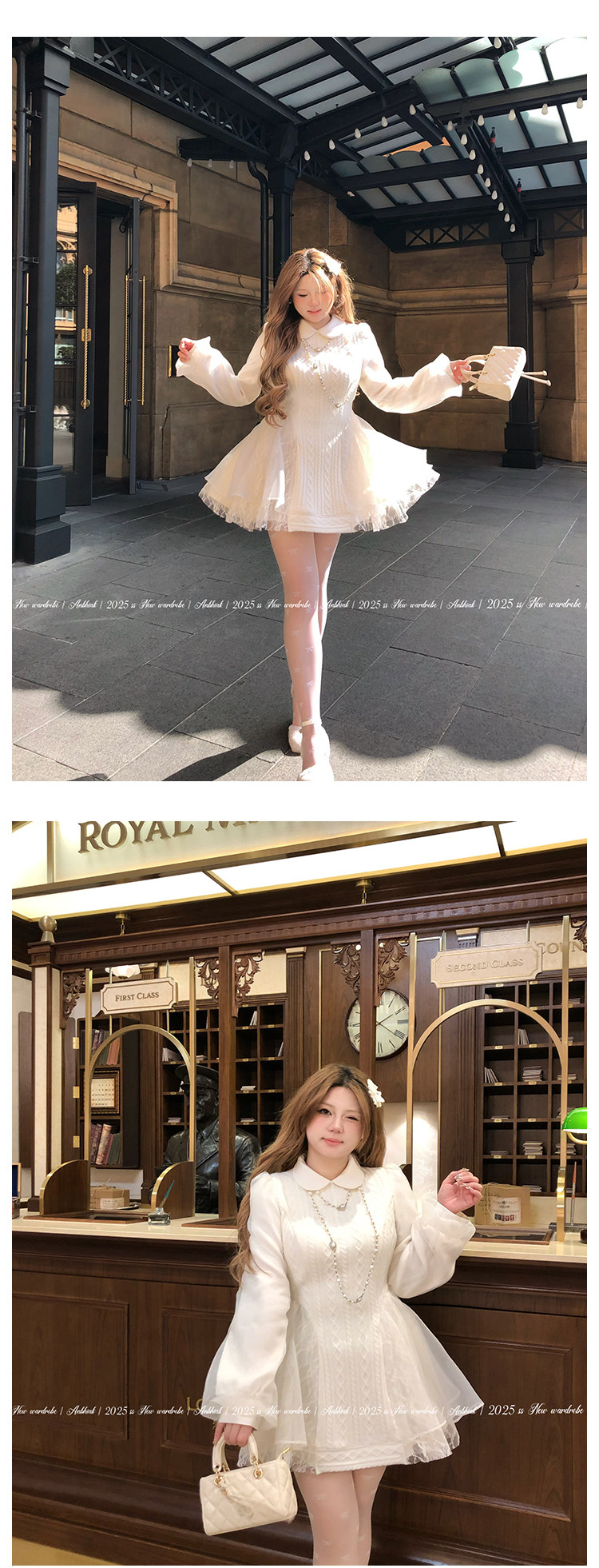 Annie Is Not Popular. Doll Collar Organza Spliced Cable Knit Wool Dress for Women, Slightly Chubby, Plus Size, Waist-Cinching, Elaborate Dress