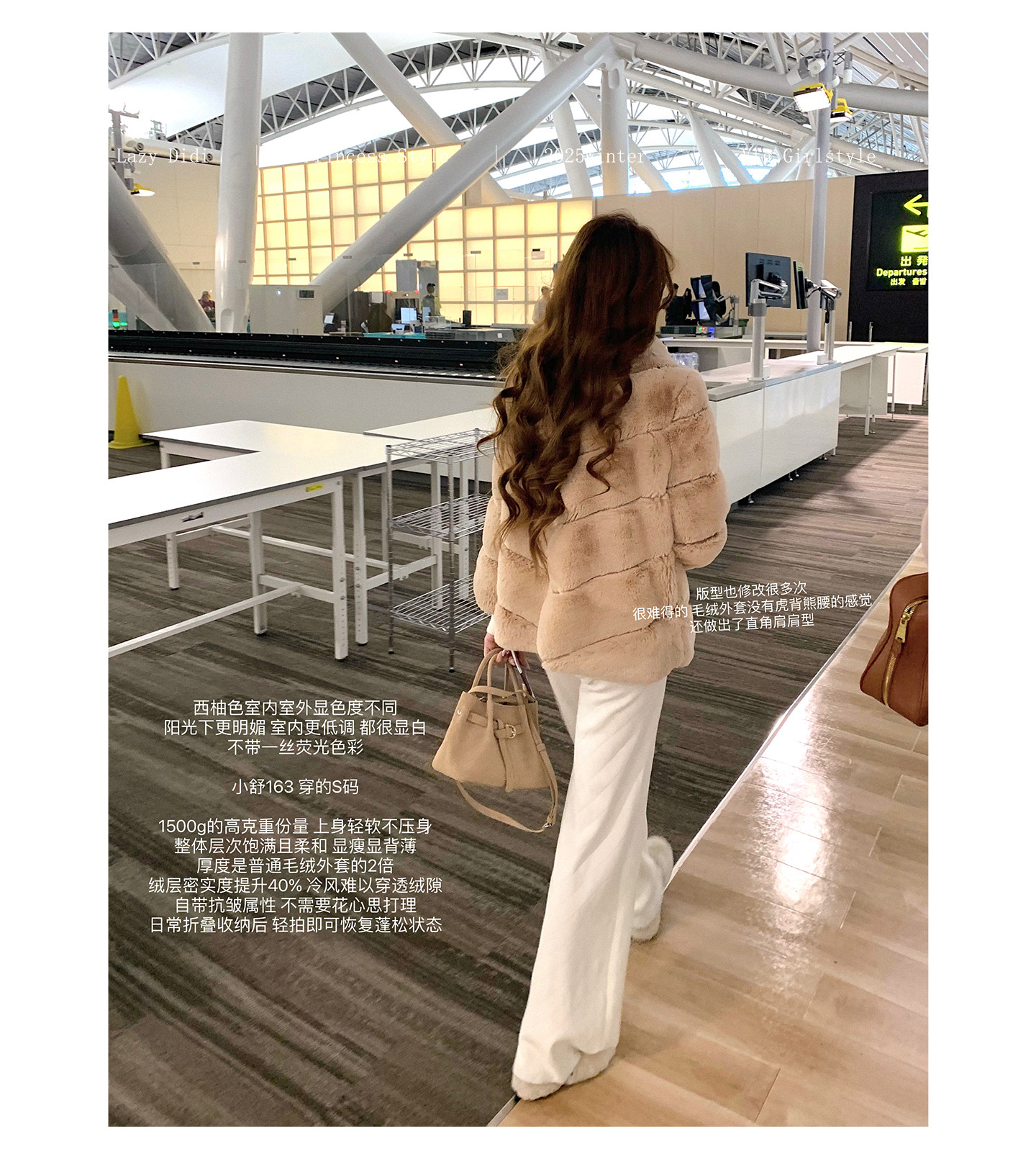 裹着兔毛外套走在深冬街头 软乎乎的质感里藏着恰到好处的甜 每个女孩冬衣橱里的「温柔标配」 典型的秋冬日系温柔风 绘纱子的皮草蕞特别的就在于【显背薄 不会显胖】宽松版型却自带“隐形瘦身”效果 精仿兔毛材质 1500g的高克重份量 从起码10种仿兔毛中选中这一款质地蓬松柔软且保暖性优异 毛面自带朦胧柔光上身轻软不压身 毛毛手感柔软舒适 绒毛丰厚软糯