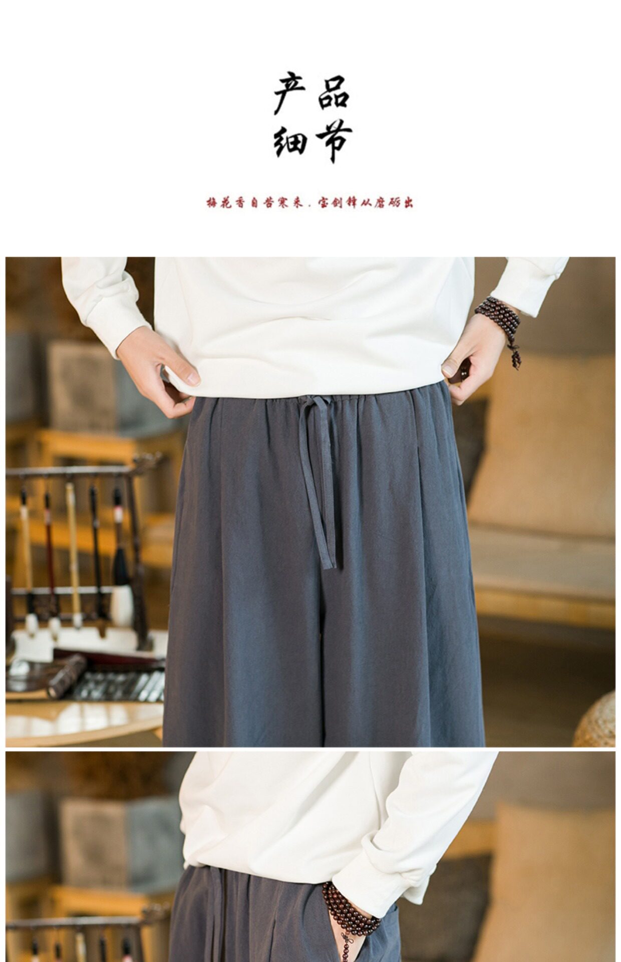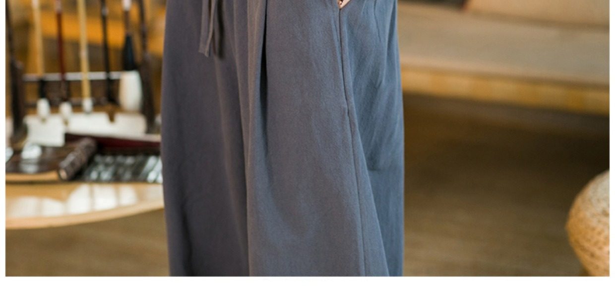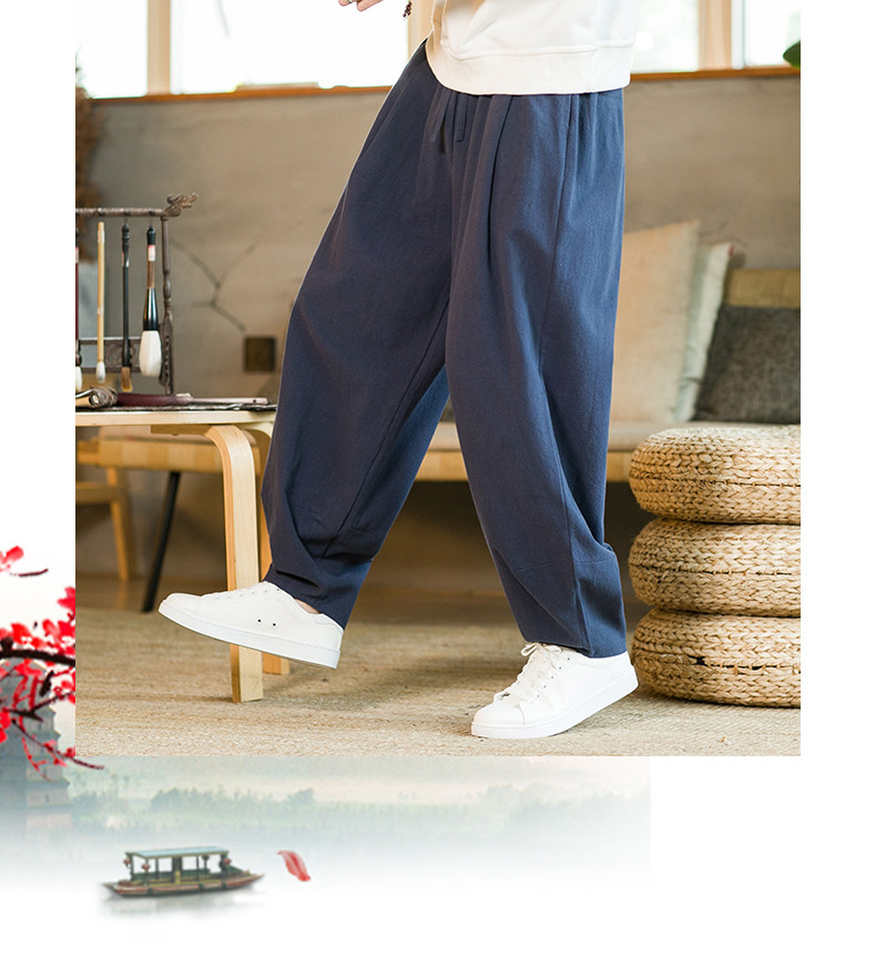 Spring Chinese-Style Linen Casual Pants, Wide-Leg Pants, Chinese-Style Men's Cotton-Linen Tai Chi Lantern Pants, Hanfu Pants, Taoist Clothing Pants