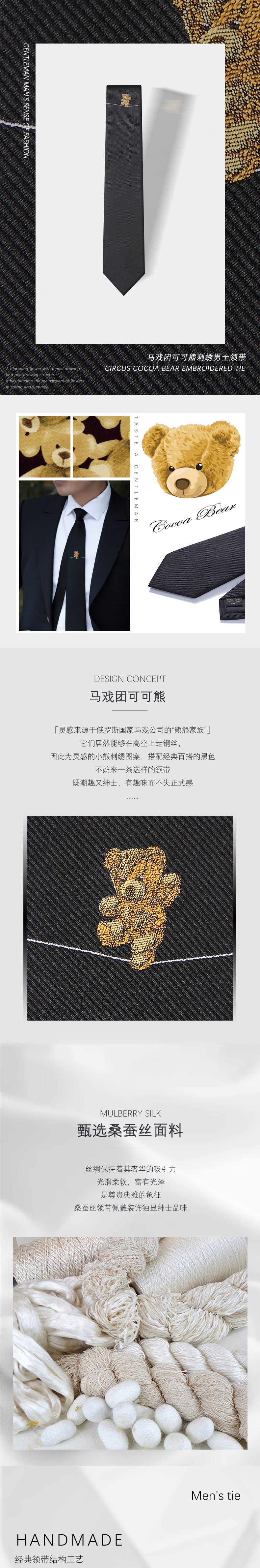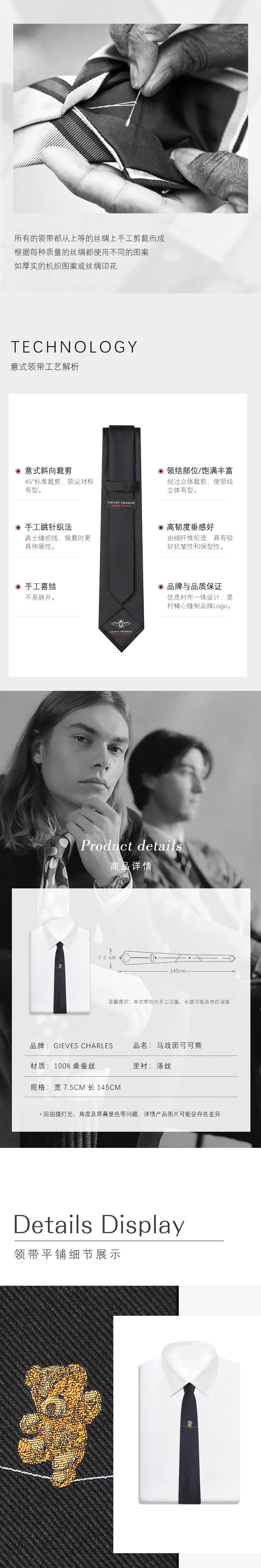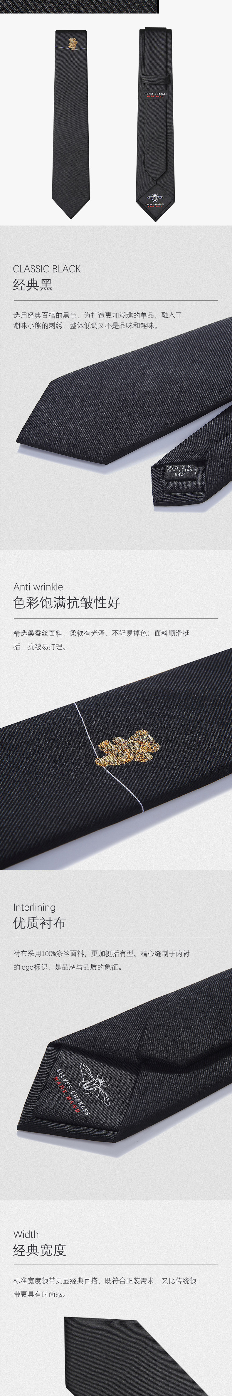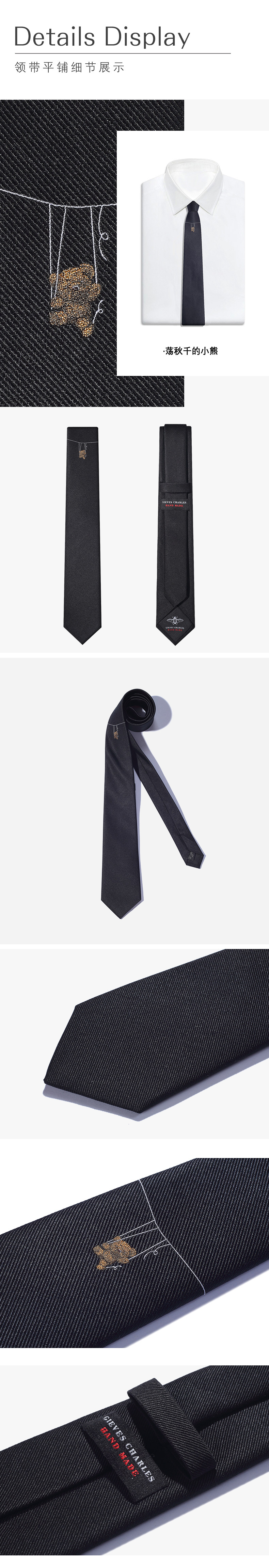 Gieves Charles Italian Style Silk Bear Embroider Limited Edition Men's Tie Men's Casual Gift Box