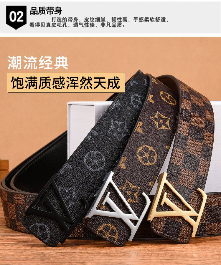Men's New Fashion Versatile Genuine Leather Plaid Business Letter Belt Smooth Jeans Belt