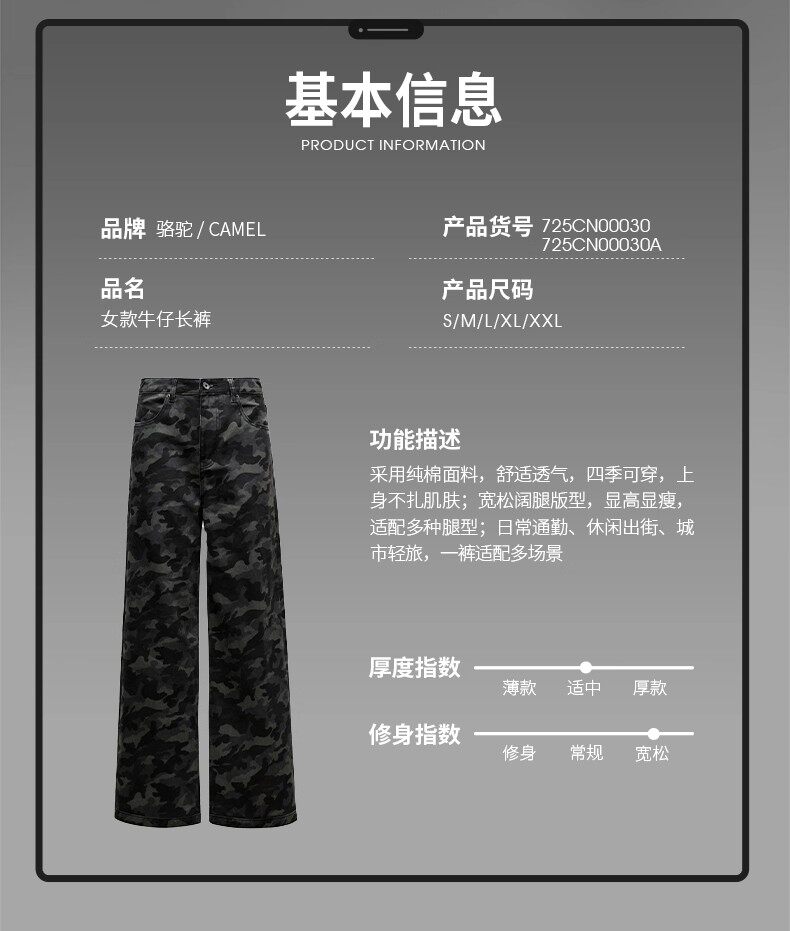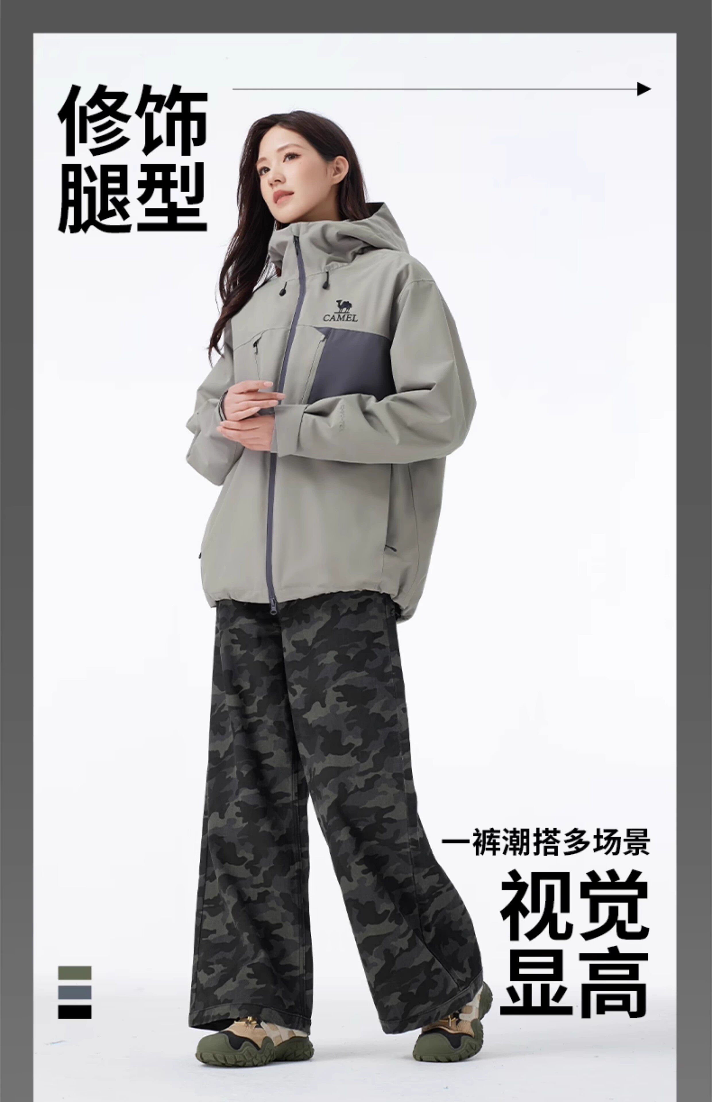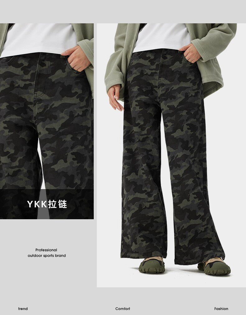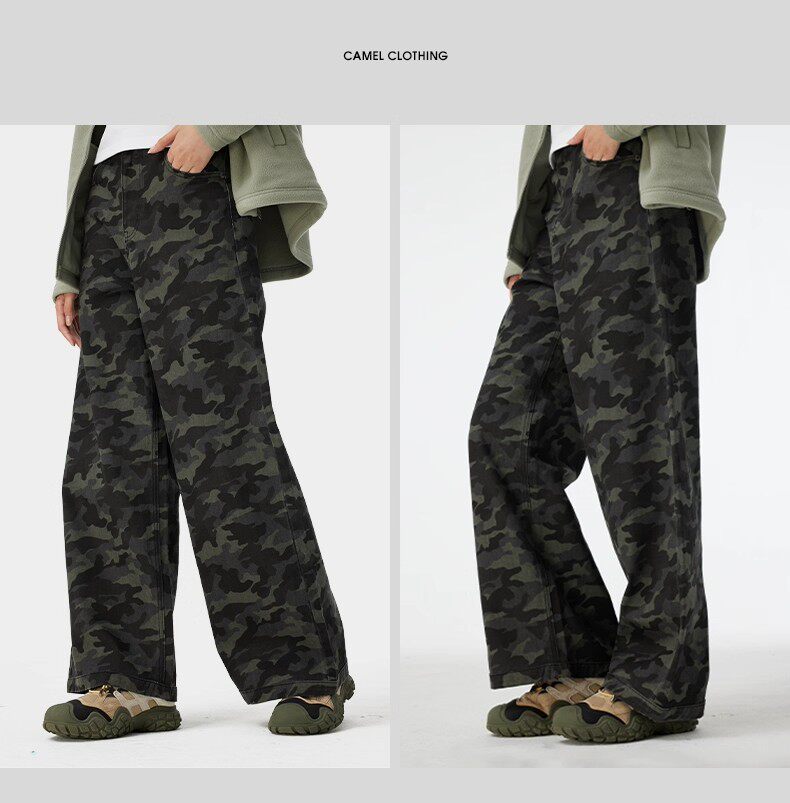 Camel Outdoor Camouflage Pants for Women 2025 New Style Jeans Wide-Leg Pants Work Pants Pure Cotton Hiking Mountaineering Pants