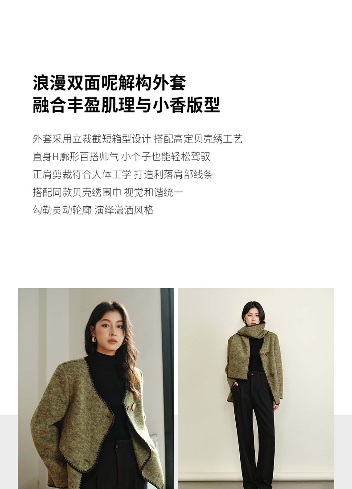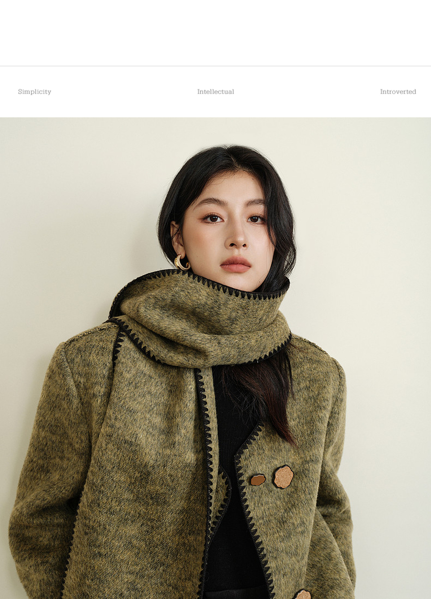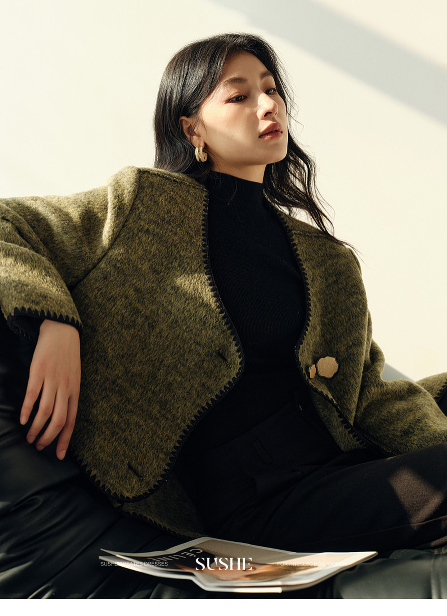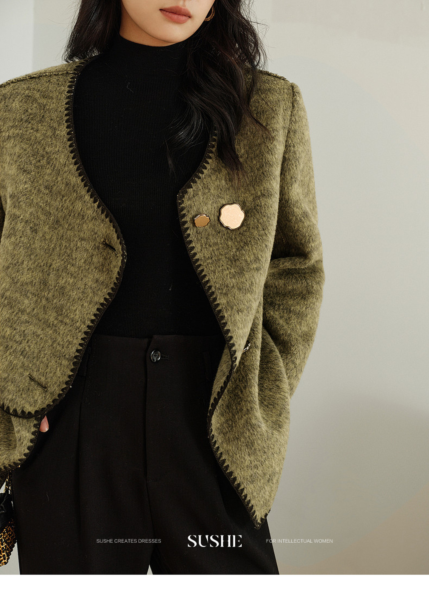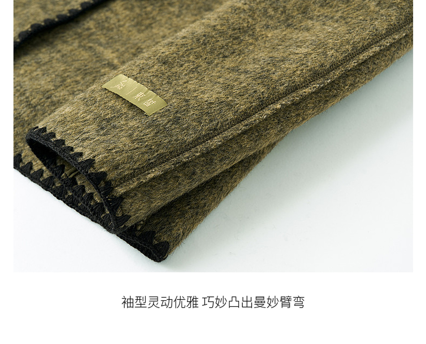 Sushe Green Scarf Double-Sided Wool High-End Sheep Wool Elegant Box-Shaped Straight-Shoulder Coat for Women Winter