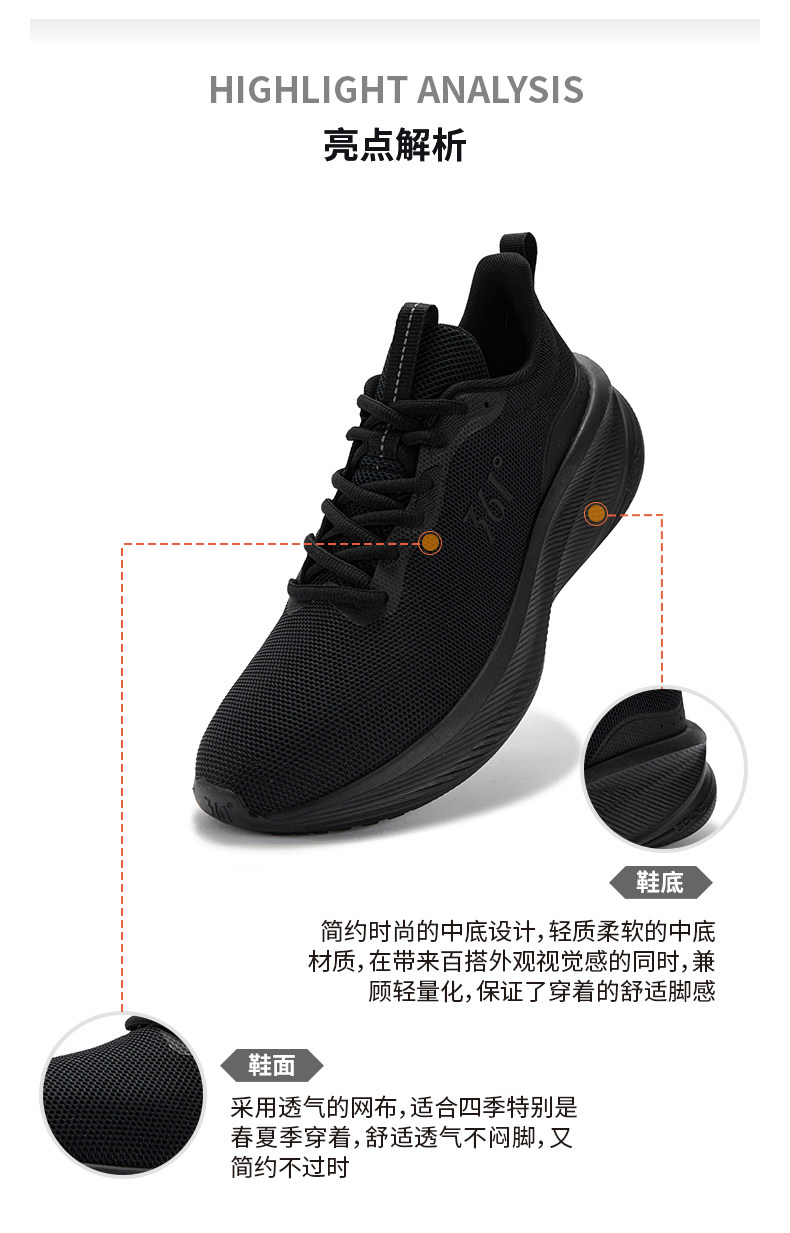 361 Men's Shoes, Sports Shoes, 2026 Spring Mesh Breathable Lightweight Shoes, Shock-Absorbing Soft-Soled Running Shoes, All Black Running Shoes