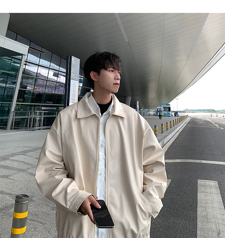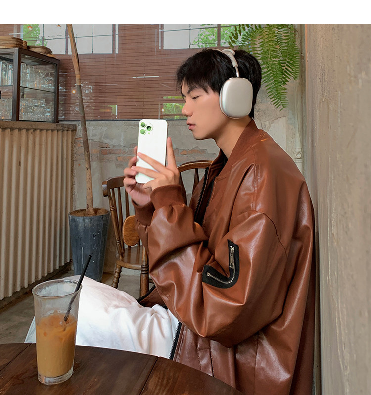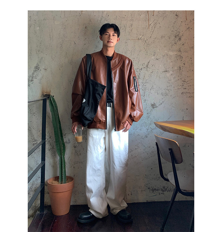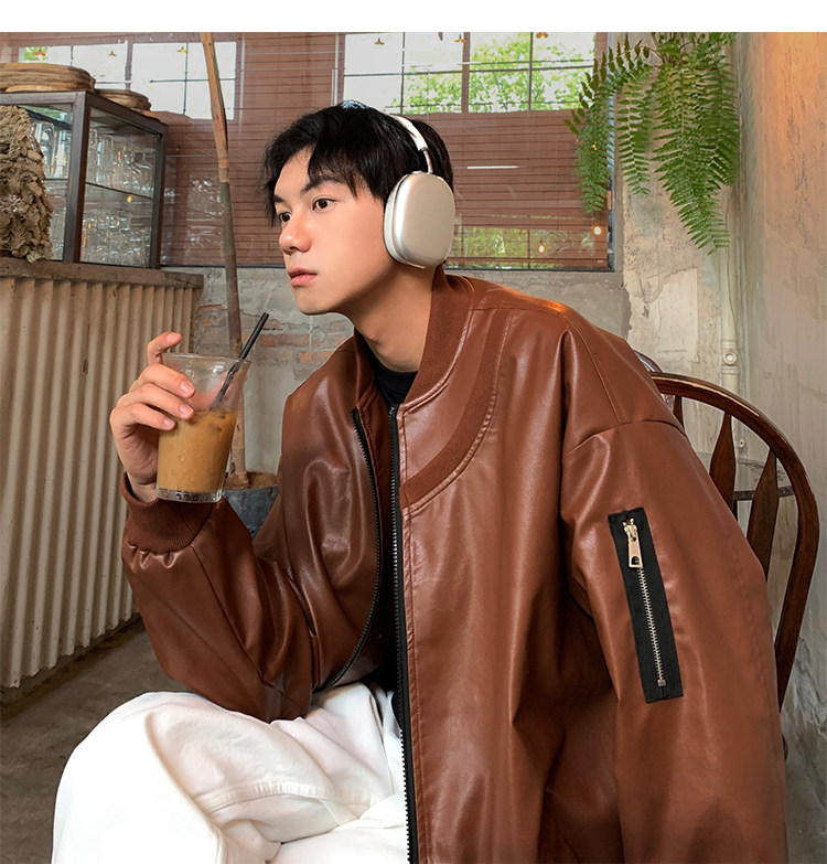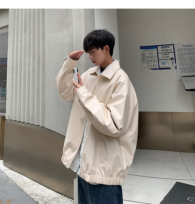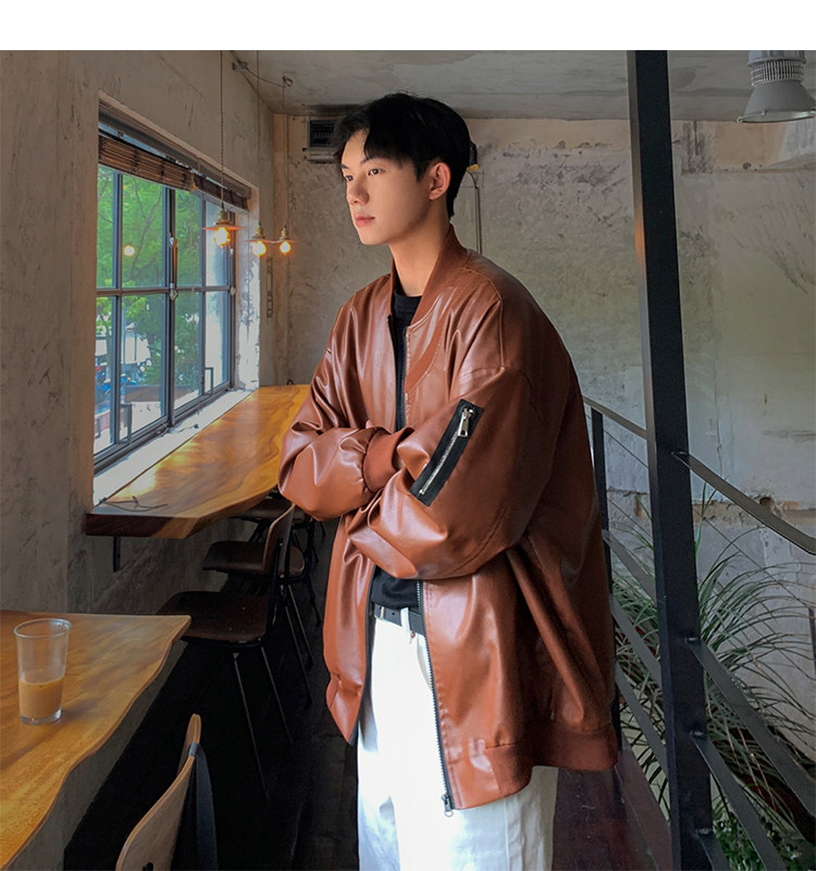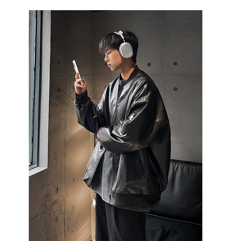 Spring and Autumn Korean Style Motorcycle Leather Jacket for Men, Loose, Trendy, Handsome, Black, Retro, American Style Trendy Brand Leather Jacket for Men