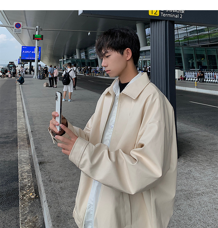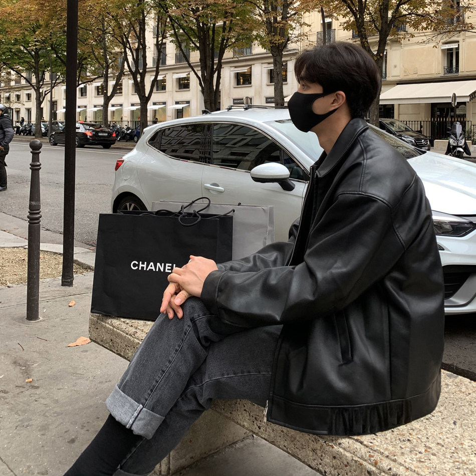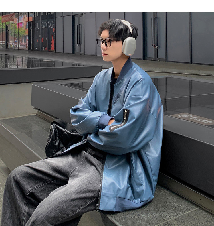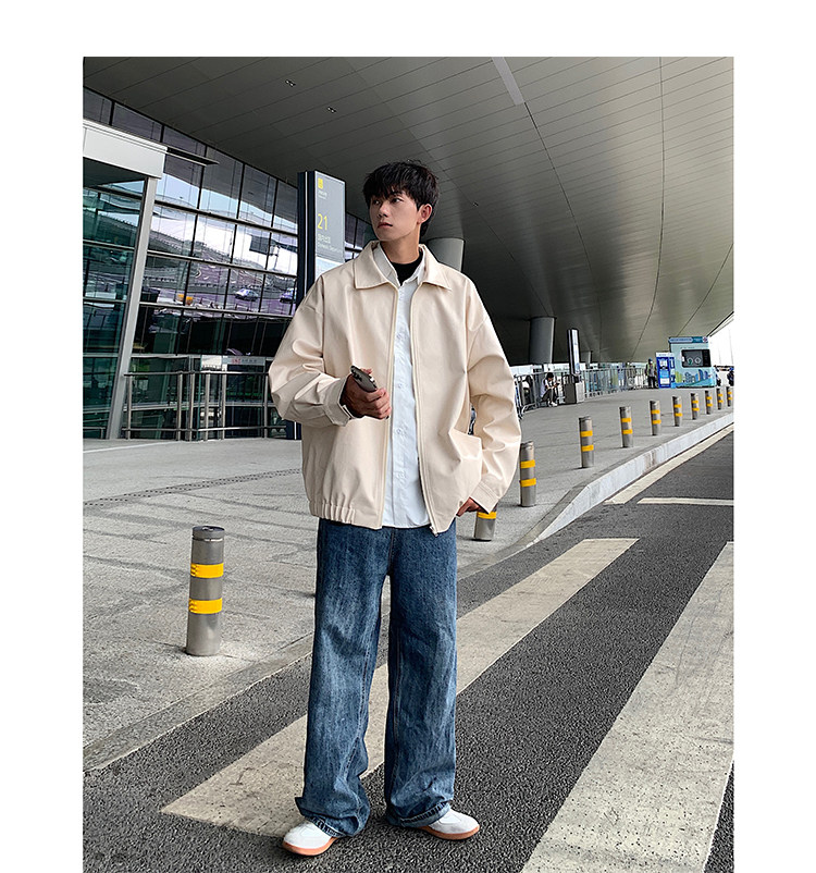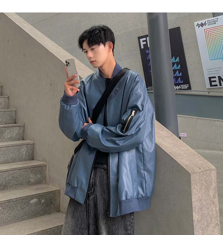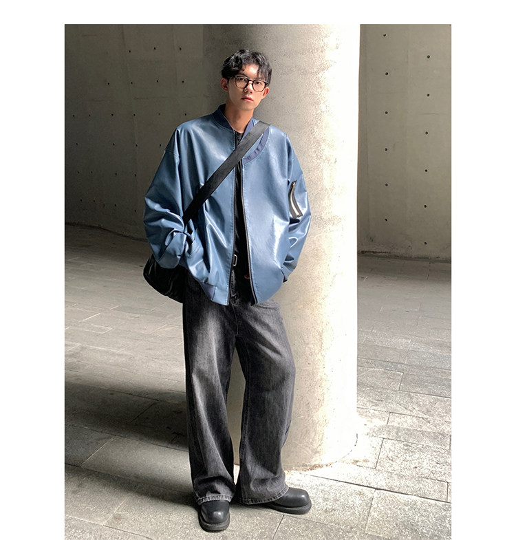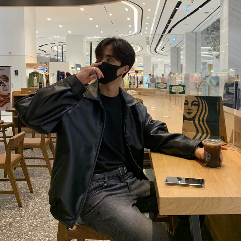 Spring and Autumn Korean Style Motorcycle Leather Jacket for Men, Loose, Trendy, Handsome, Black, Retro, American Style Trendy Brand Leather Jacket for Men