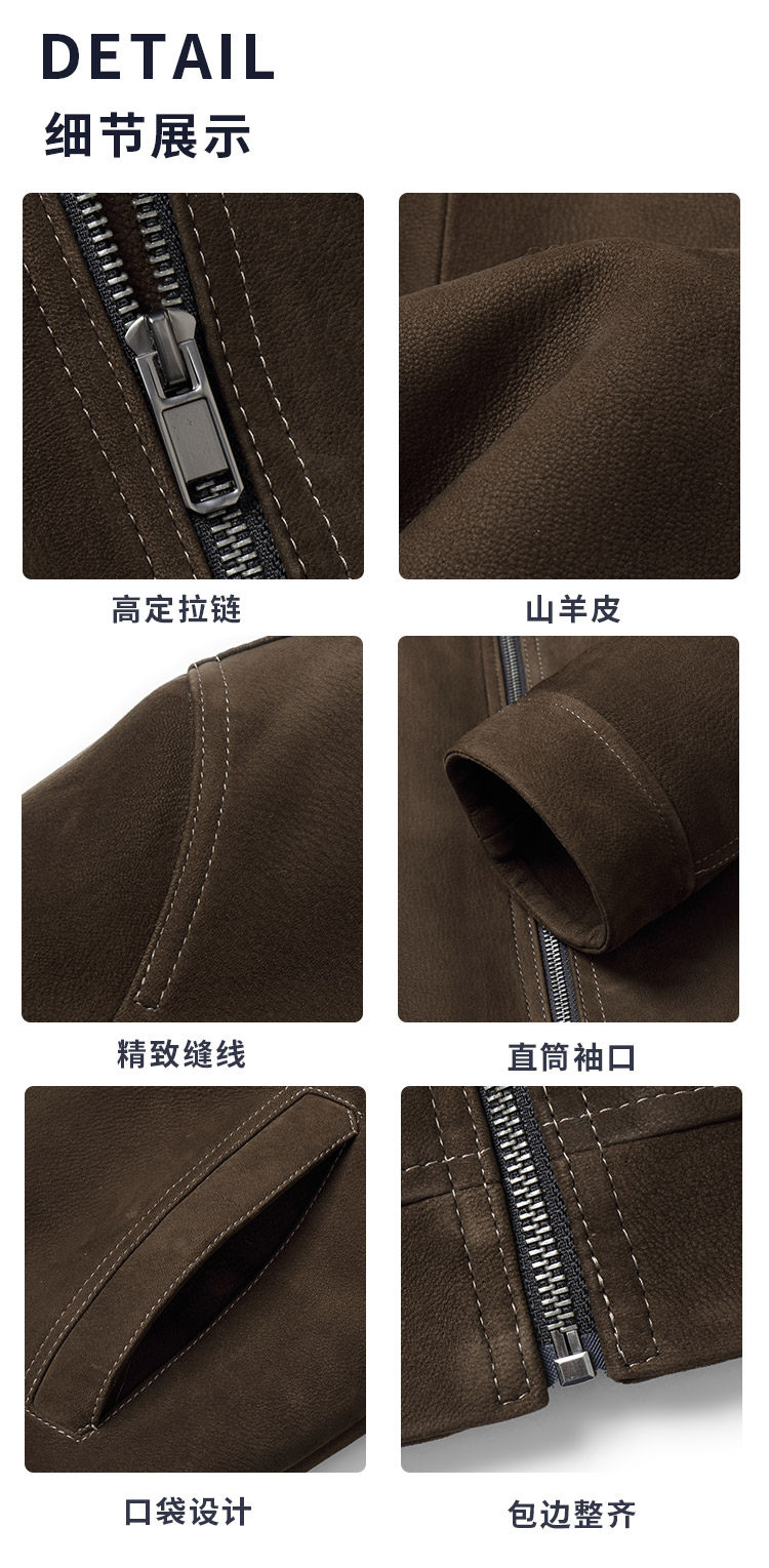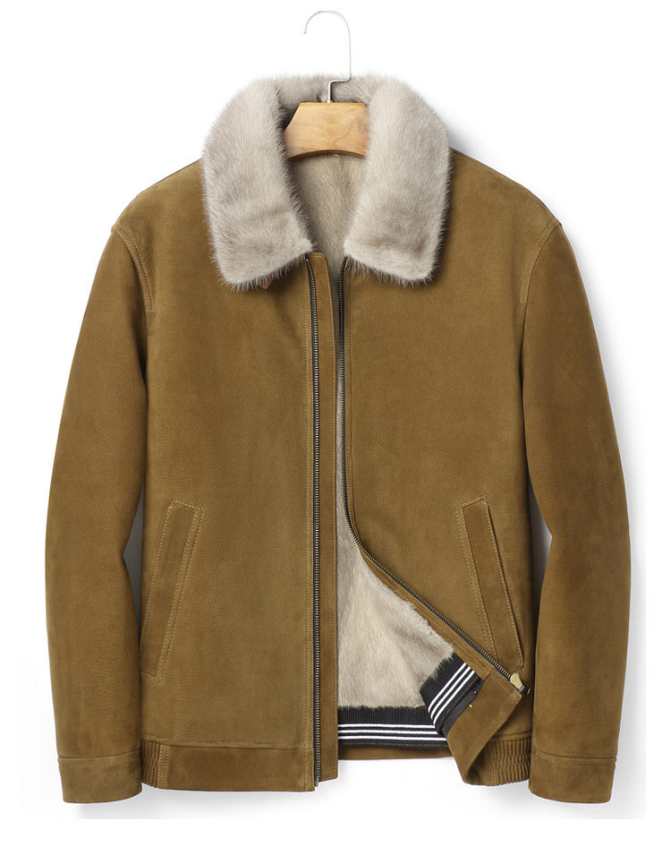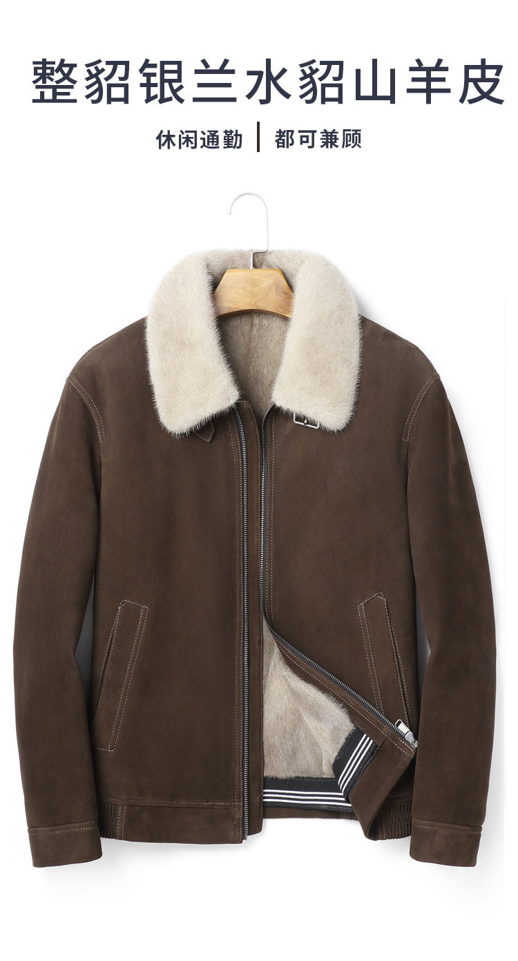 New Genuine Leather Jacket for Men with Mink Lining, Lapel, Suede Goat Leather Jacket, Fur Integrated Fur Coat for Winter