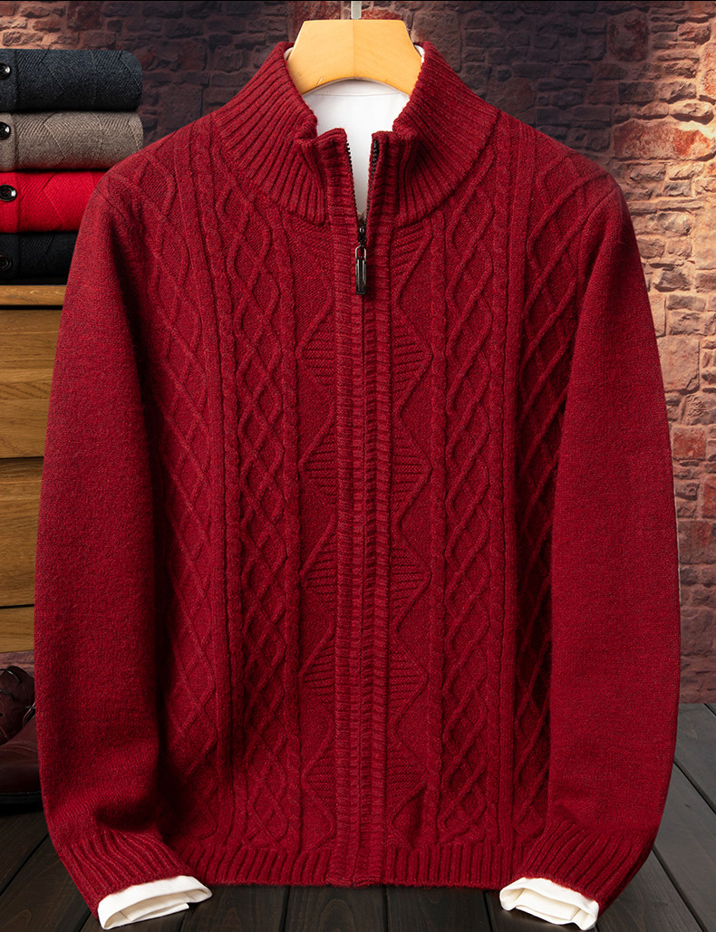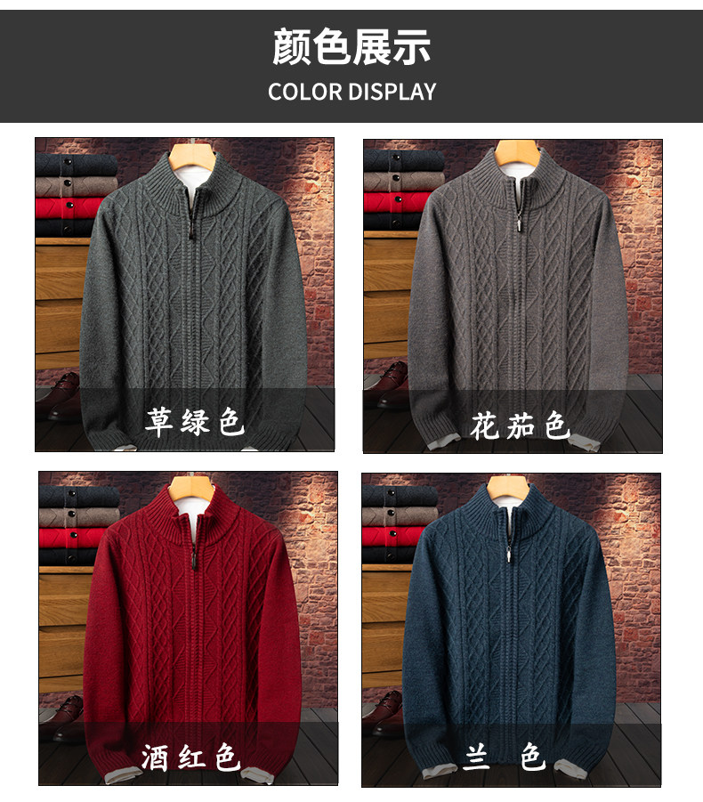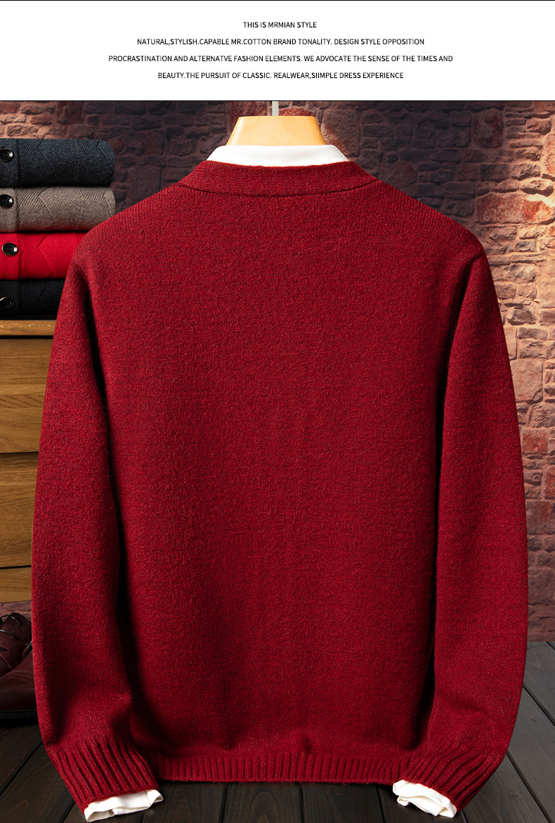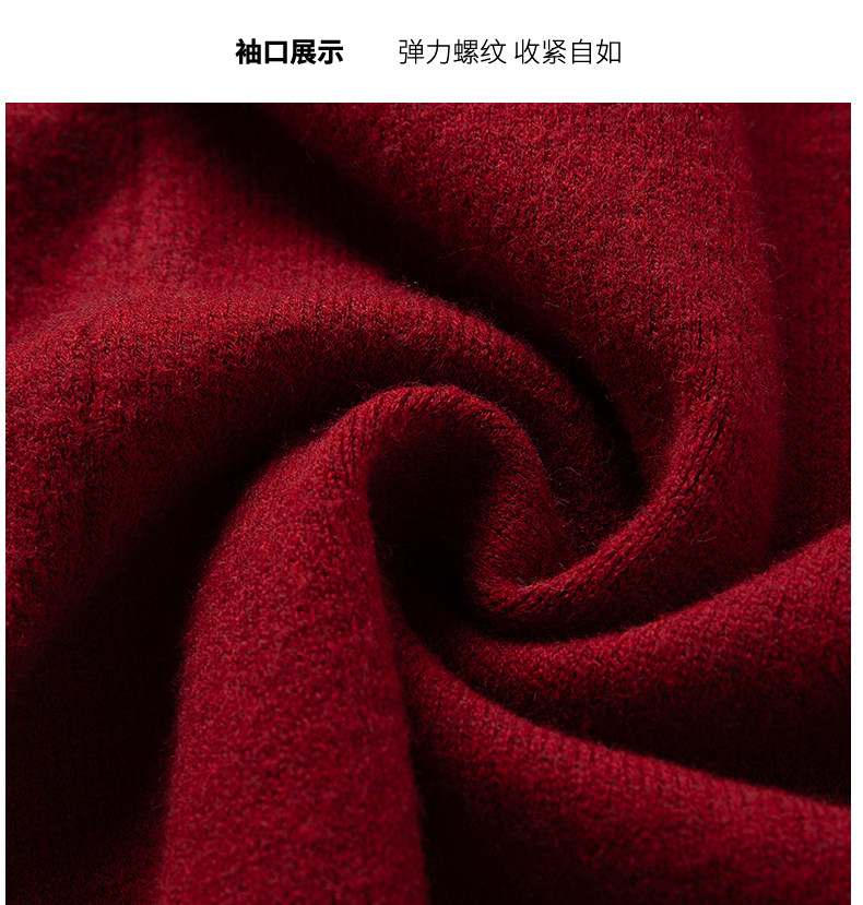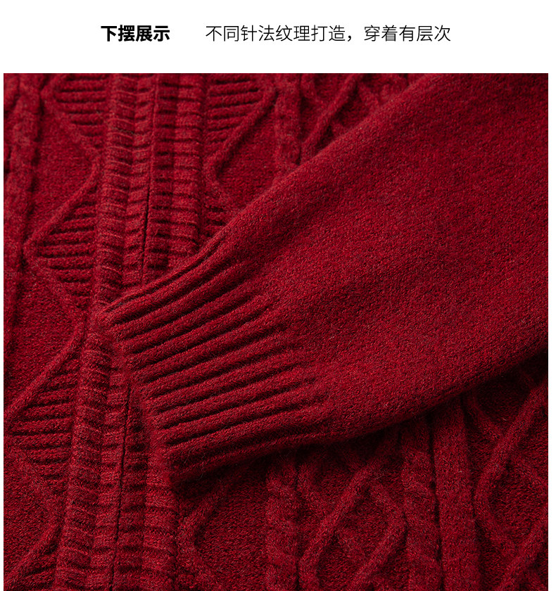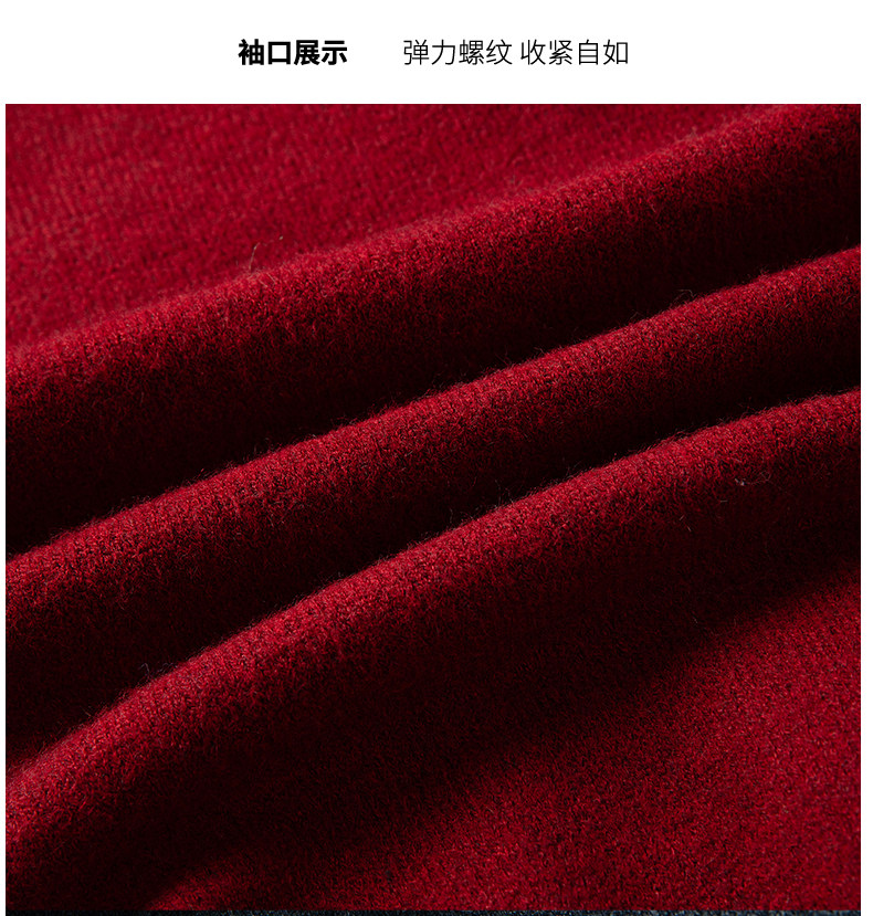 Hengyuanxiang 100% Pure Cashmere Sweater for Men, Middle-Aged Jacquard Zipper Thickened Red Knit Cardigan for the Year of Birth