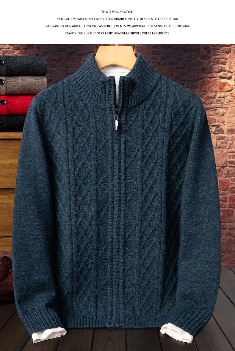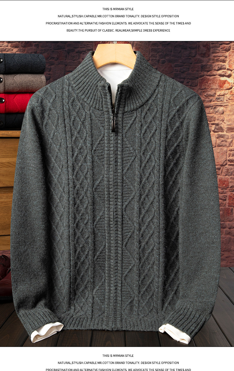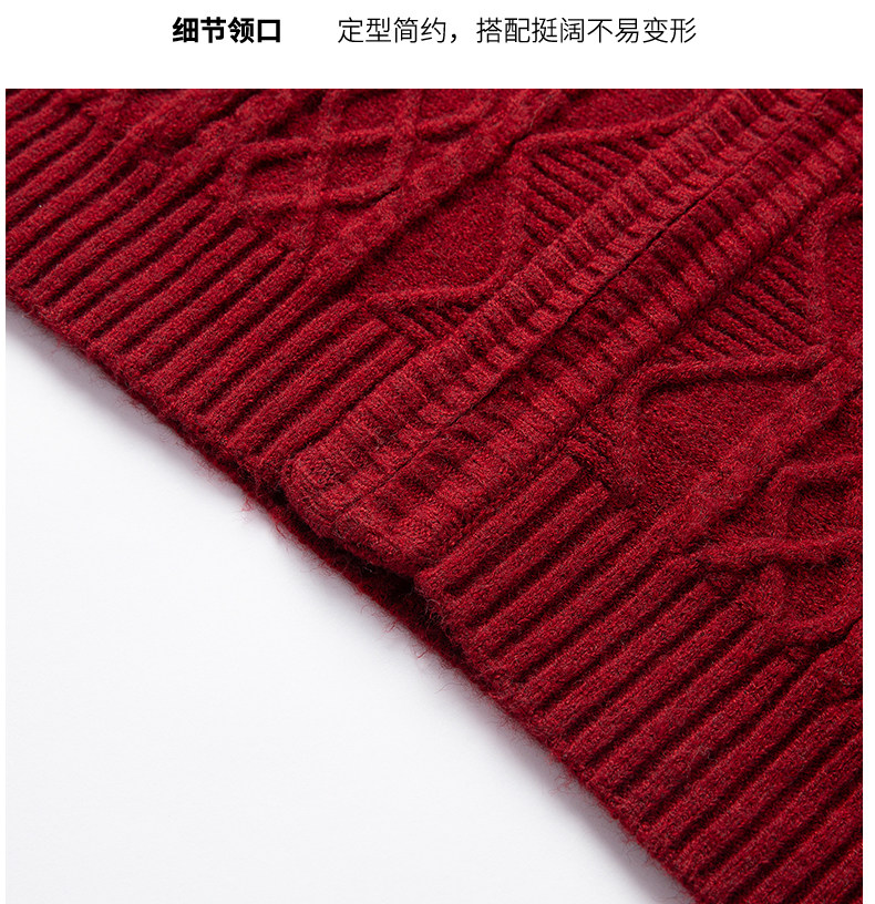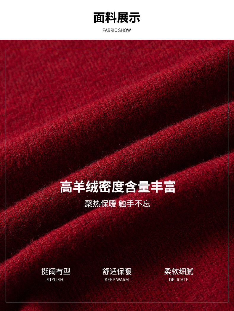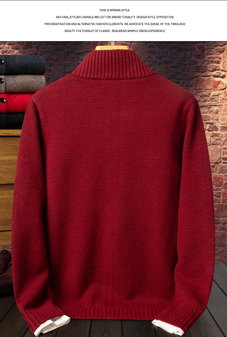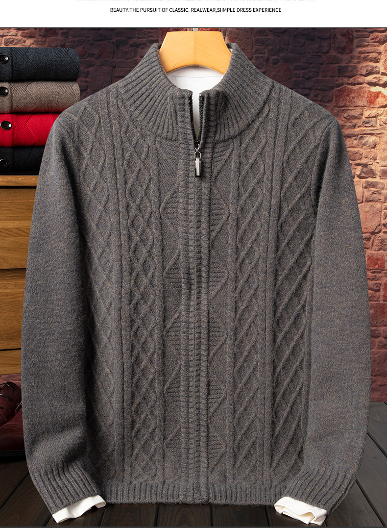 Hengyuanxiang 100% Pure Cashmere Sweater for Men, Middle-Aged Jacquard Zipper Thickened Red Knit Cardigan for the Year of Birth