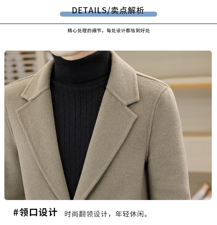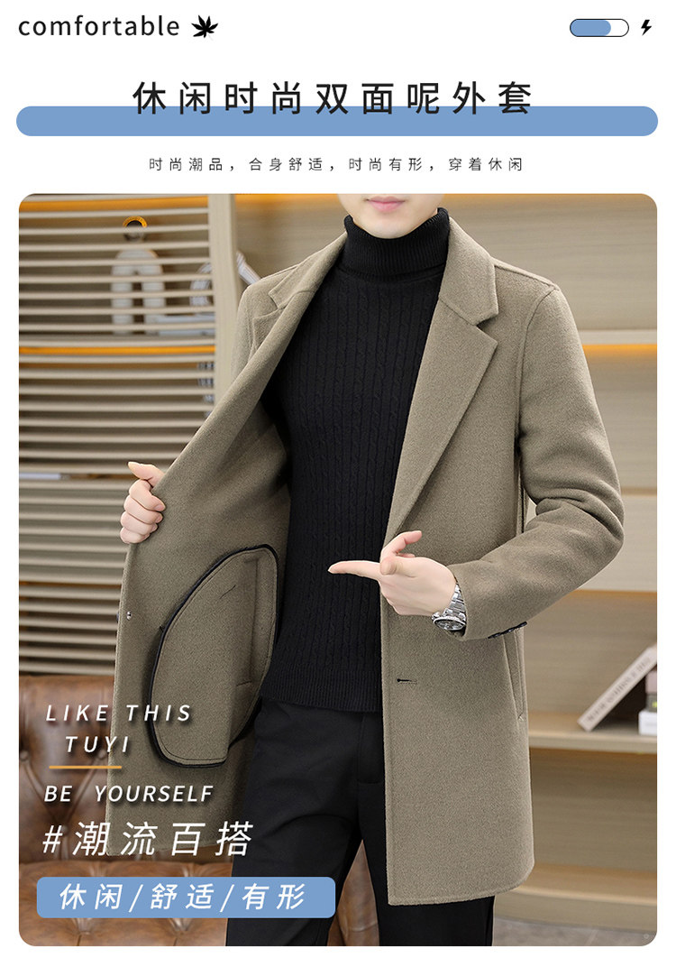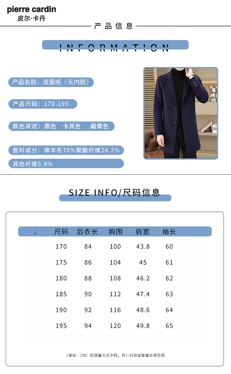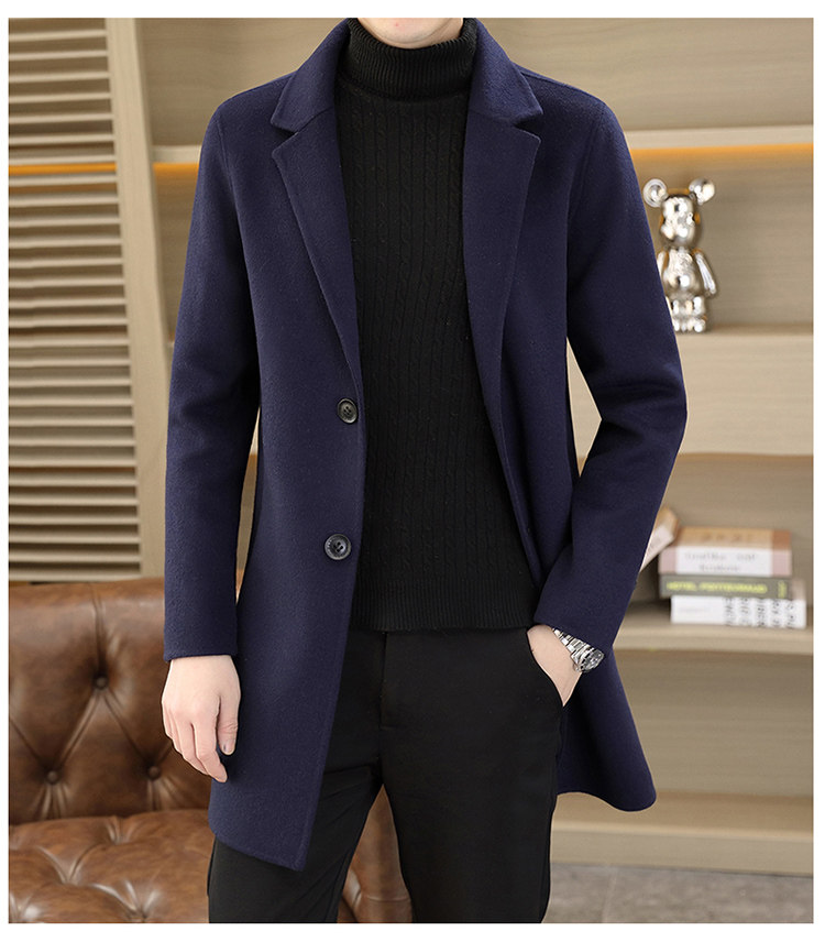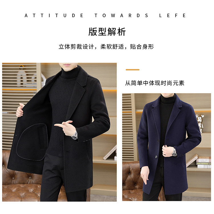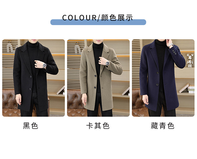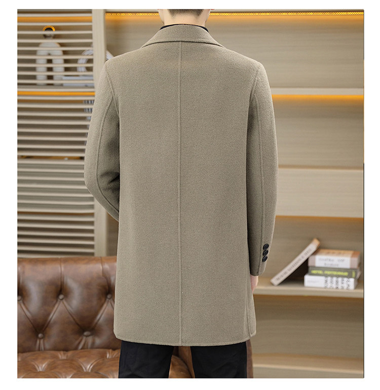 Pierre Cardin Double-Sided Wool Coat Men's Mid-Length Woolen Trench Coat Autumn and Winter Men's High-End Woolen Coat