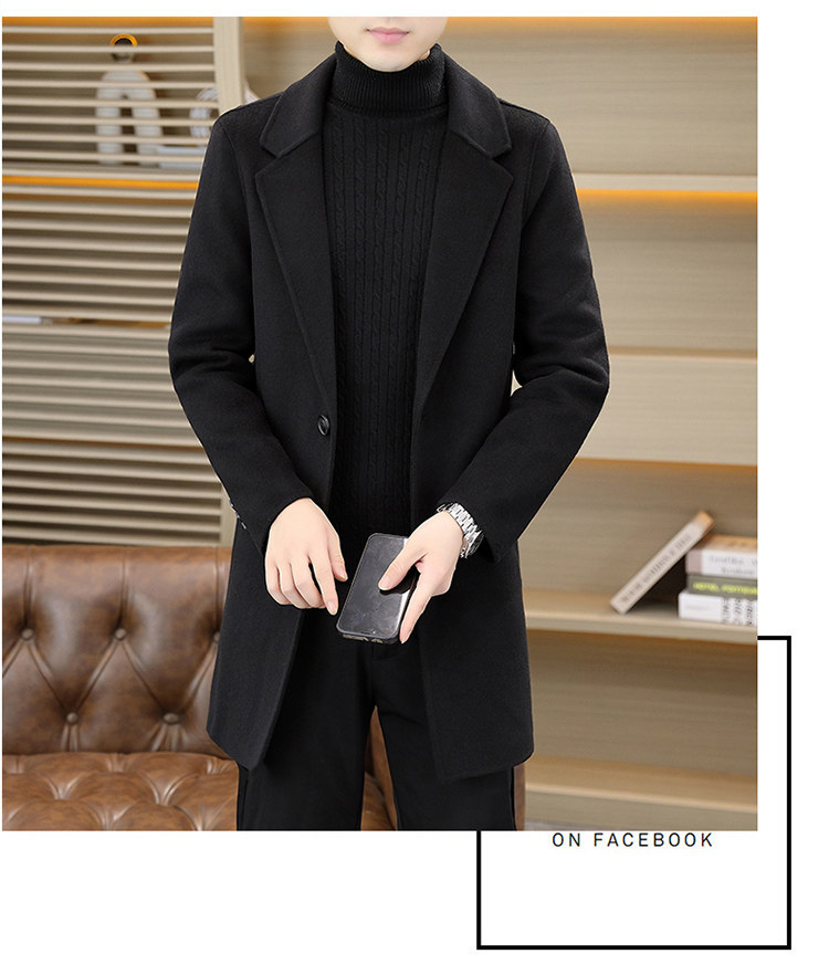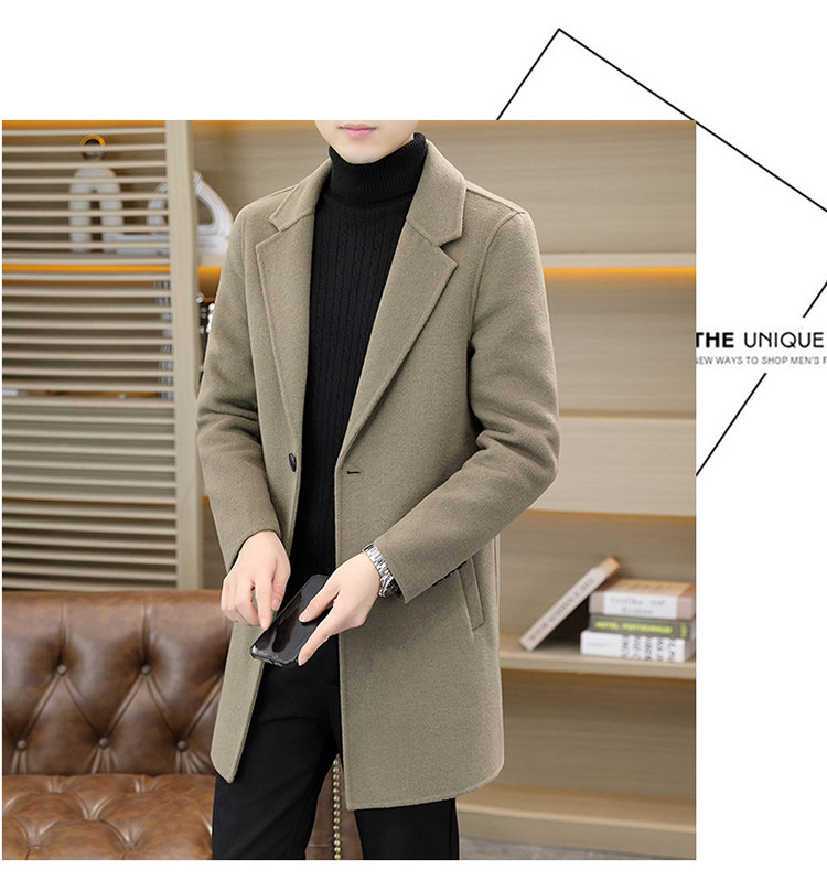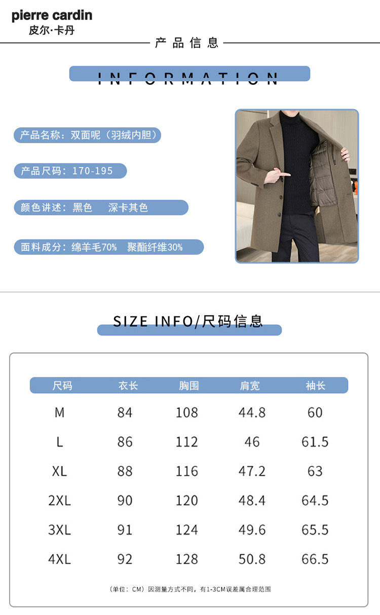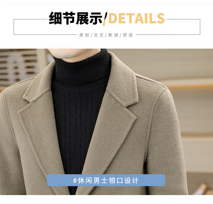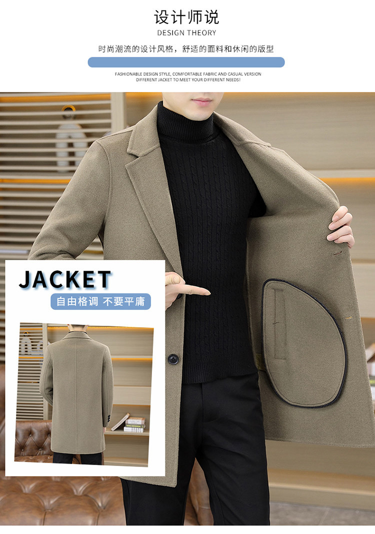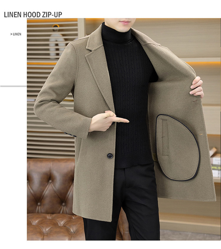 Pierre Cardin Double-Sided Wool Coat Men's Mid-Length Woolen Trench Coat Autumn and Winter Men's High-End Woolen Coat