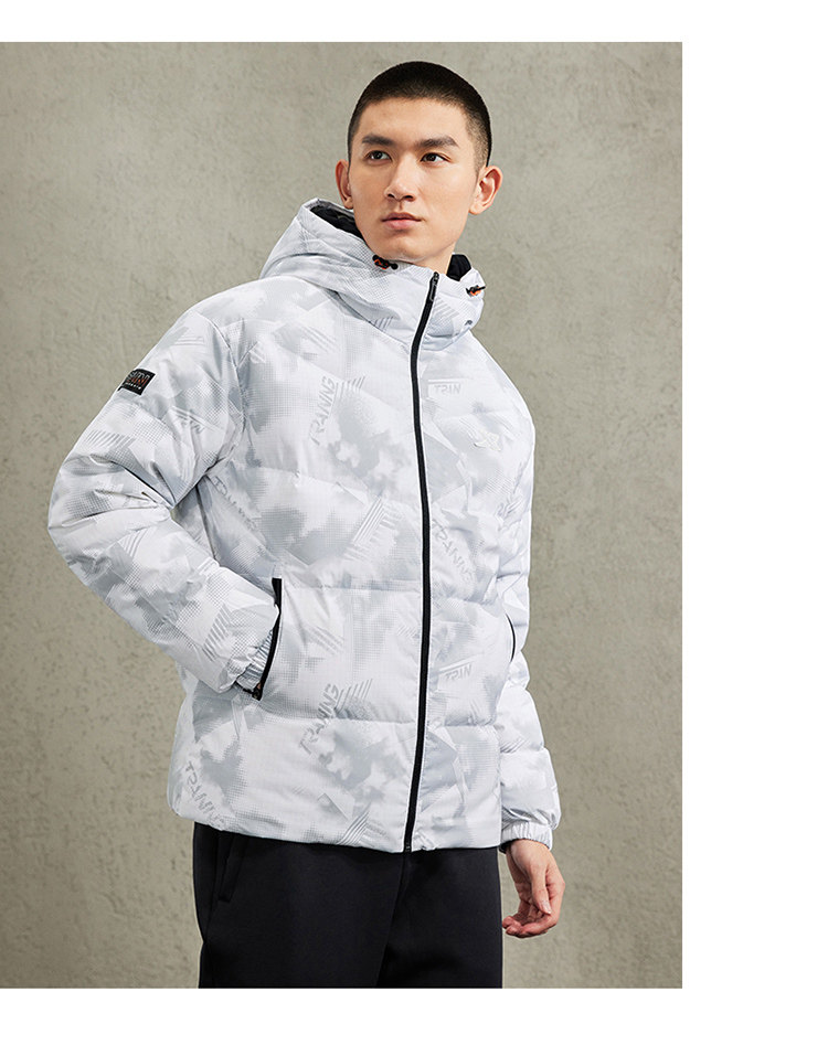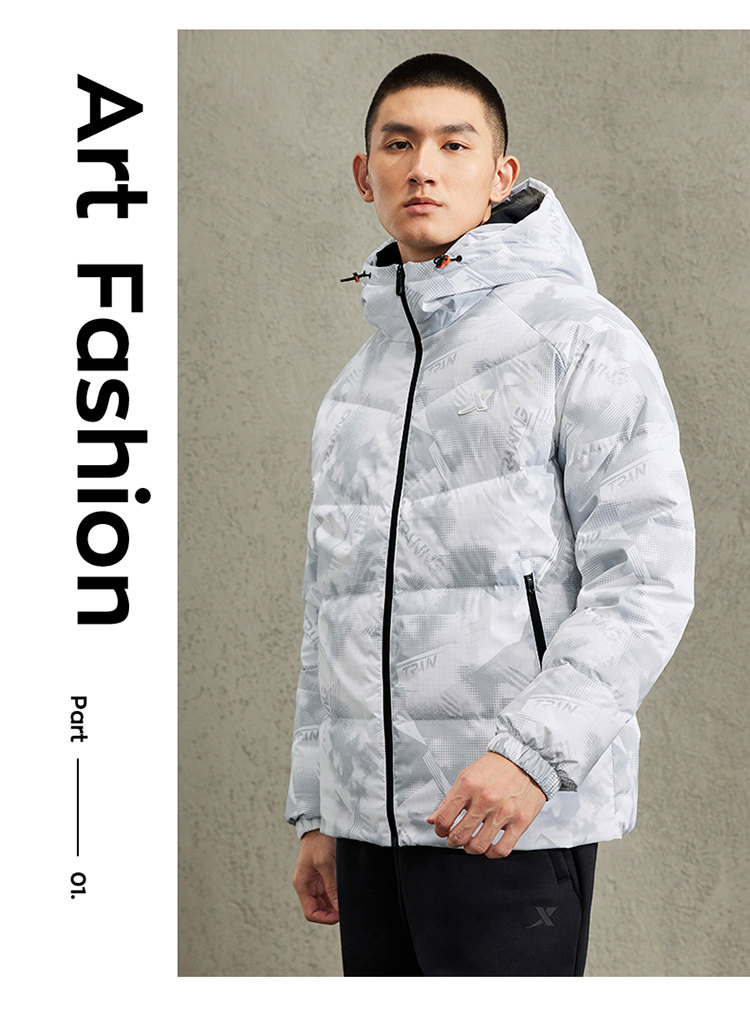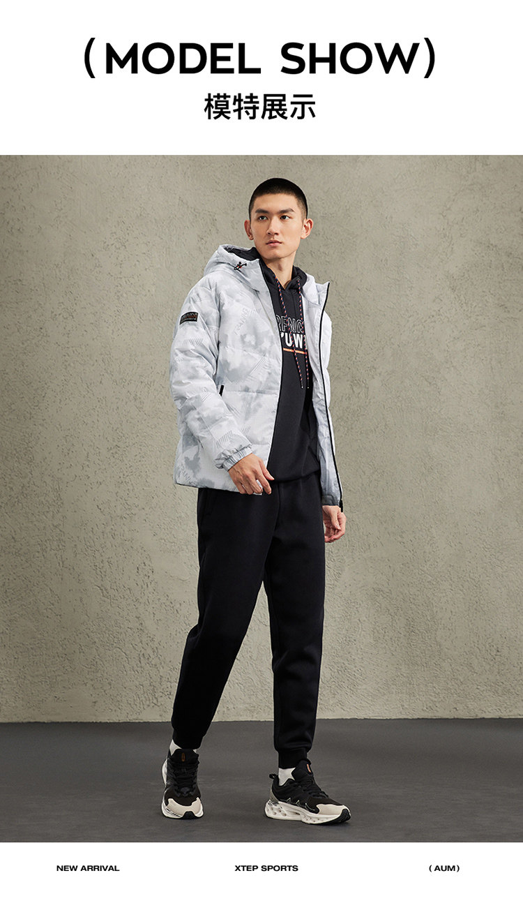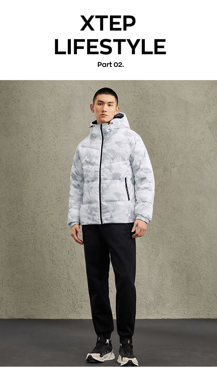 Xtep Heated Sports down Jacket for Men, Short Style, Thickened, Windproof, Winter Hooded Casual Warm Coat for Couples, Women's Version Available