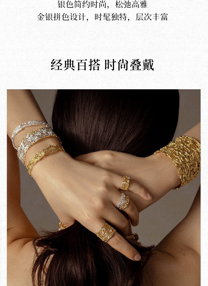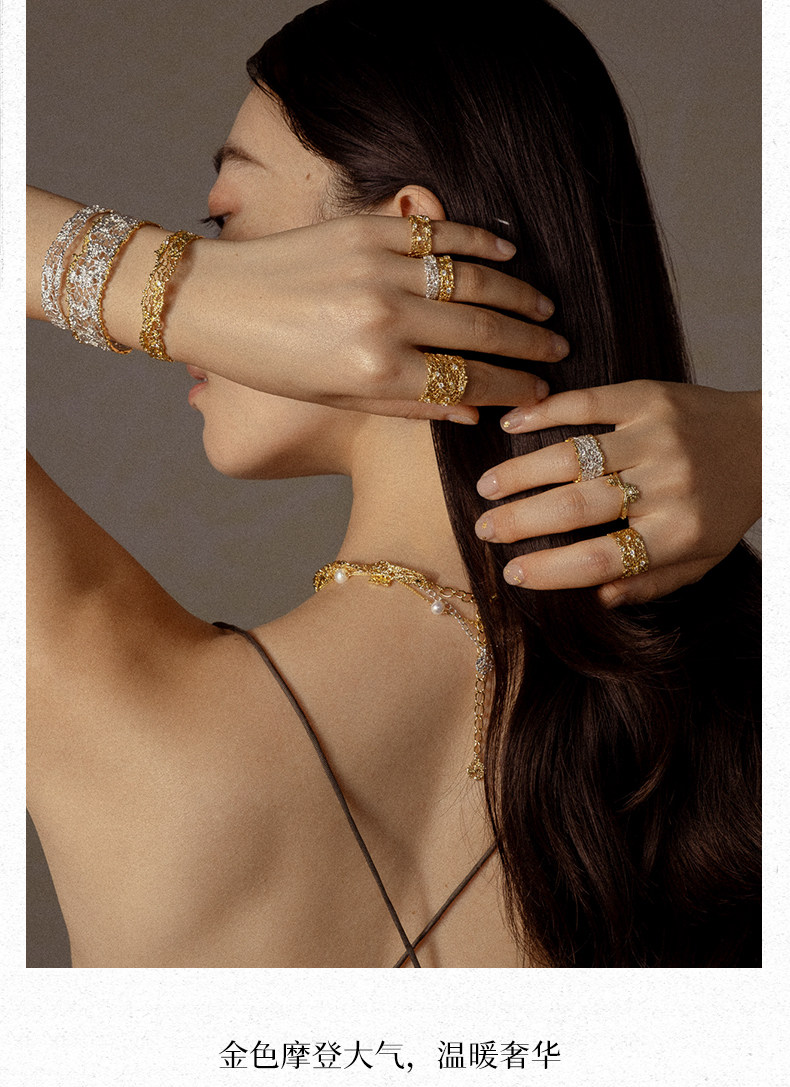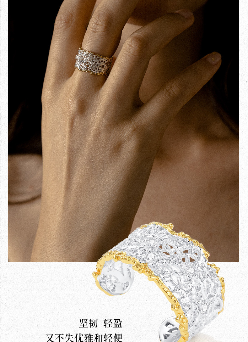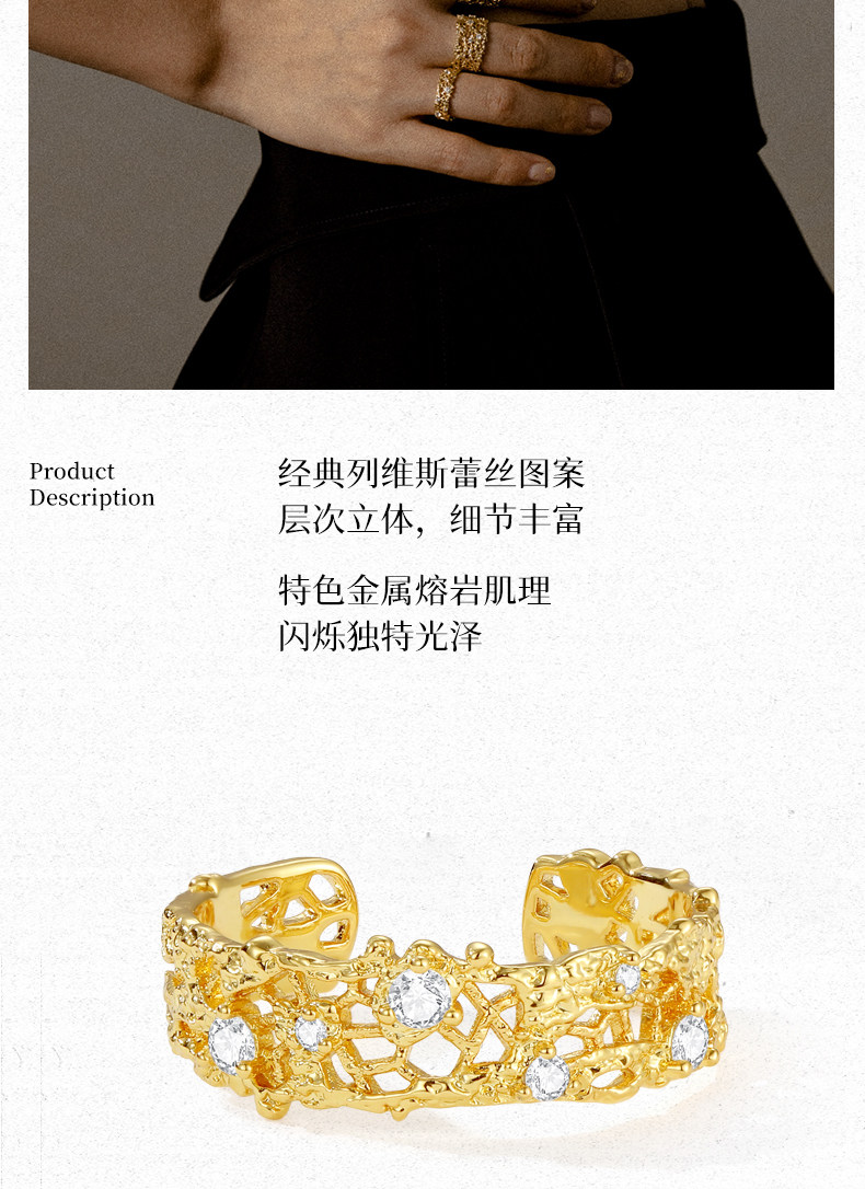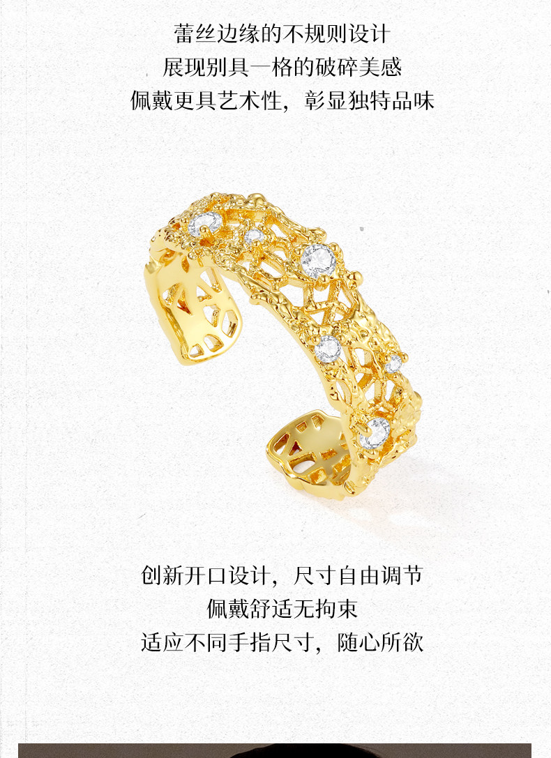 Ooak Lace Sterling Silver Ring, Simple Style Open Ring, Light Luxury, High-End Feel, Stackable Ring, Birthday Gift for Girlfriend