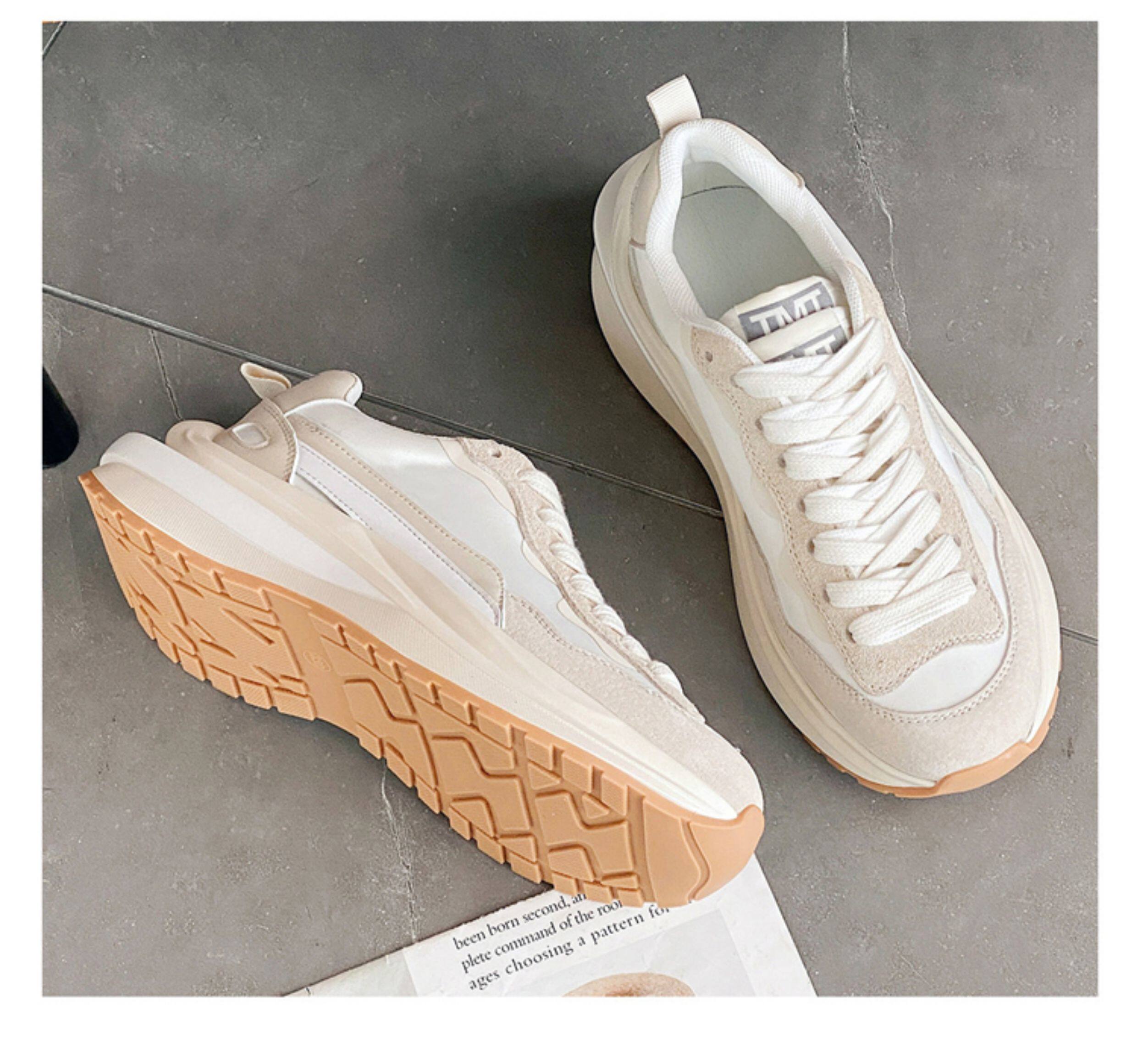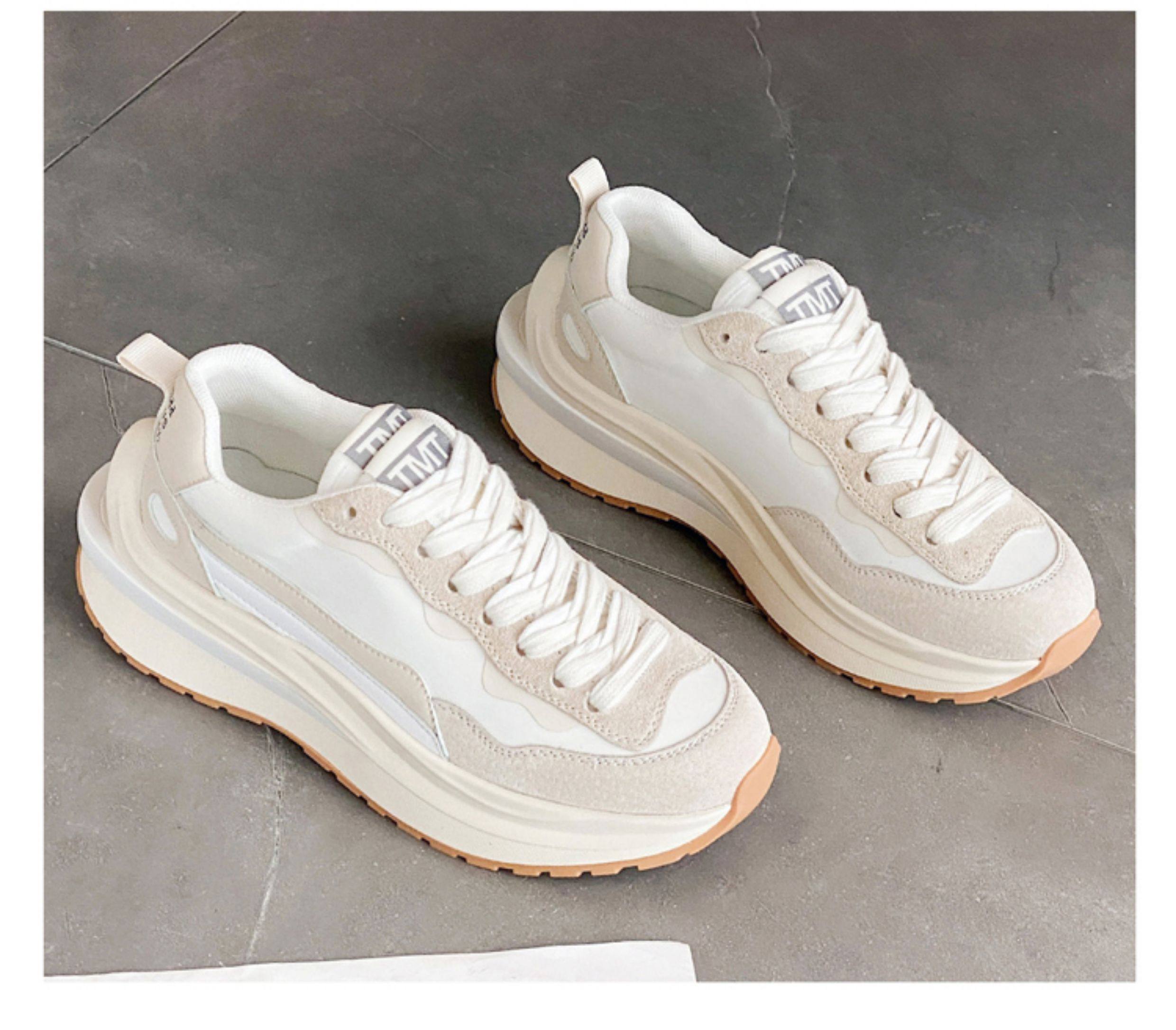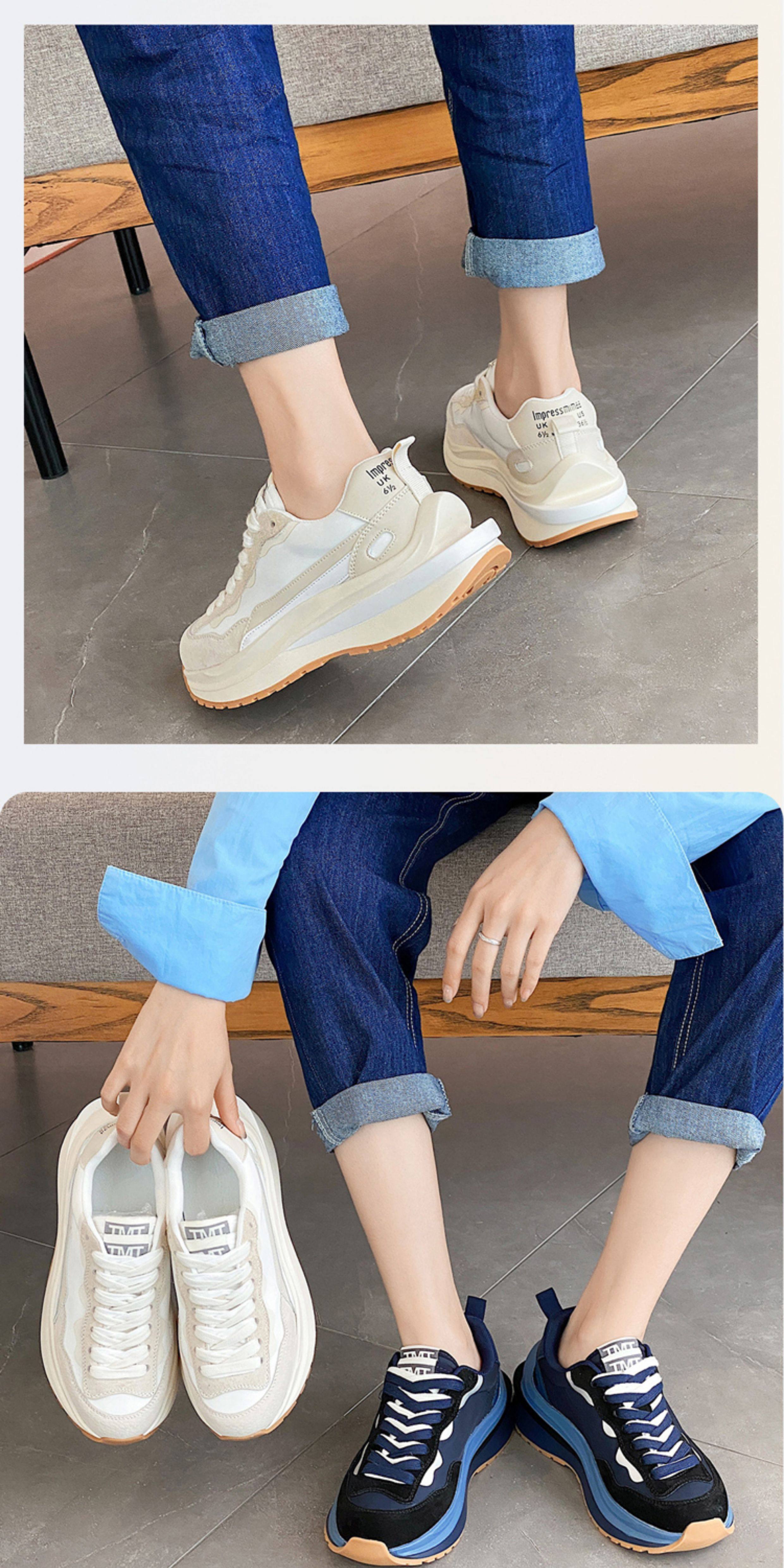 Hong Kong Genuine Leather Thick-Soled Women's Waffle Trainers Casual Sports Shoes ins Dad Shoes Spring Breathable Color-Blocking