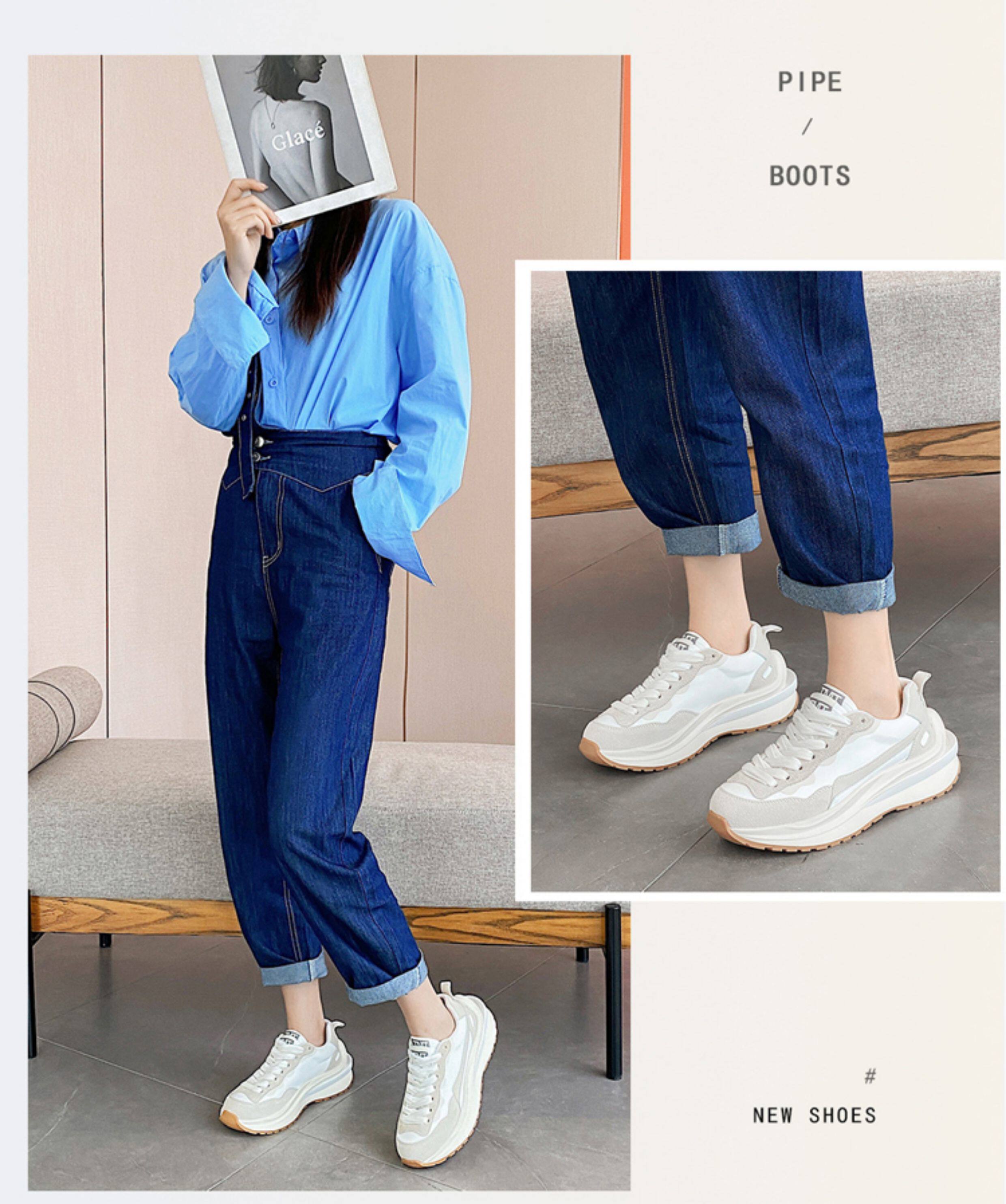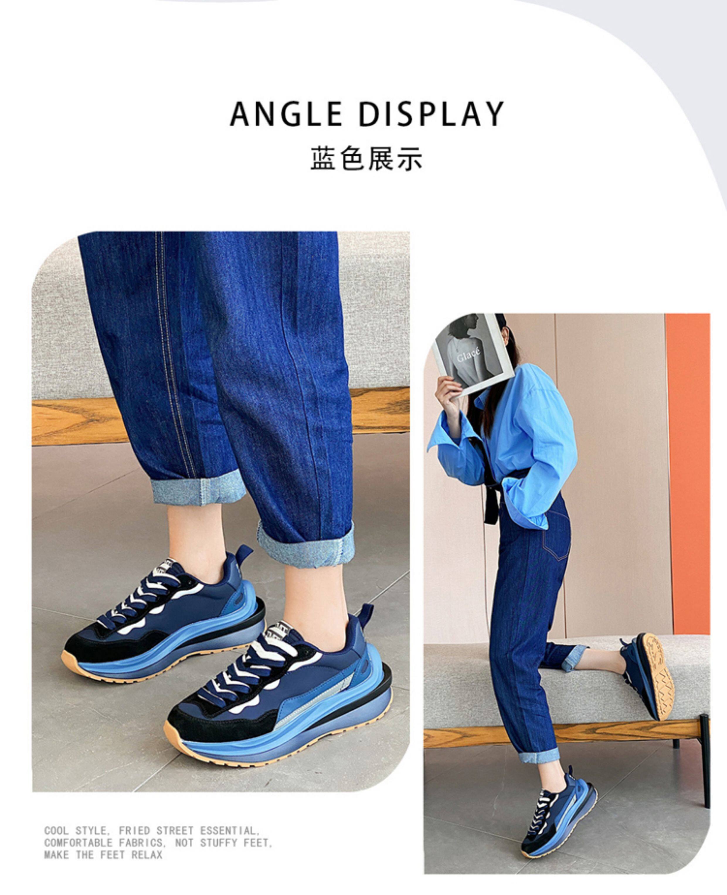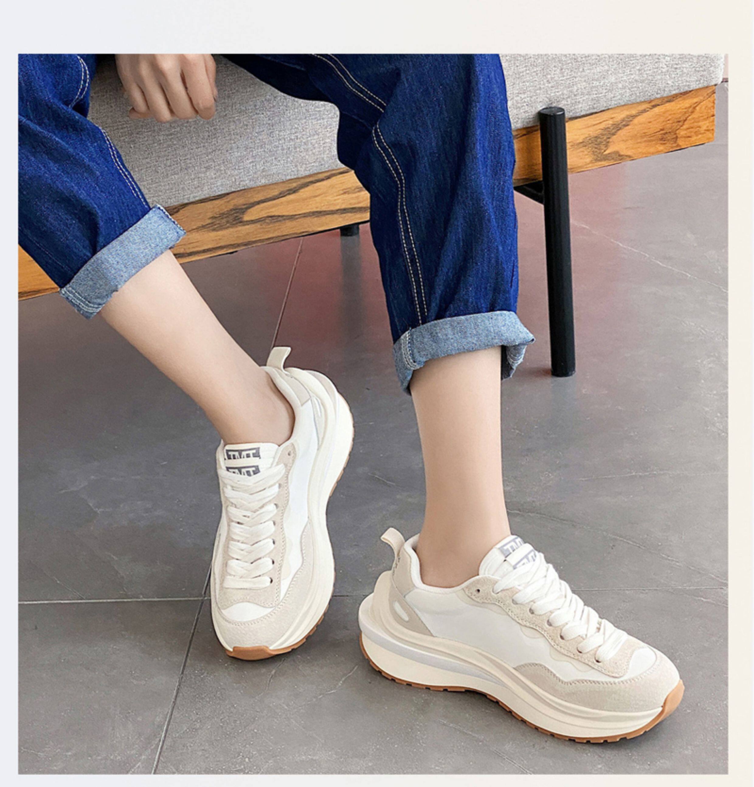 Hong Kong Genuine Leather Thick-Soled Women's Waffle Trainers Casual Sports Shoes ins Dad Shoes Spring Breathable Color-Blocking