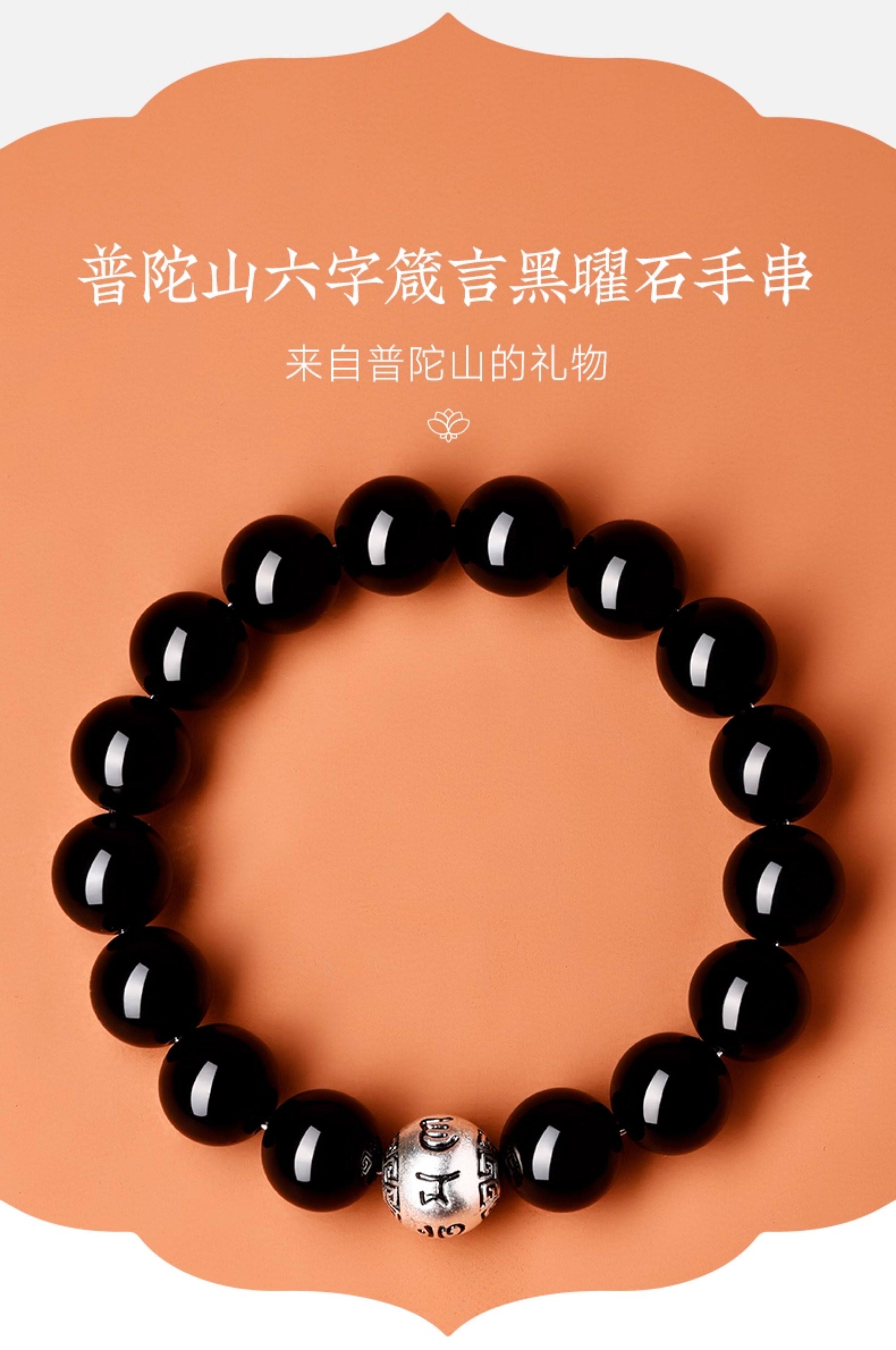 Putuo Mountain Official Obsidian Bracelet for Women, Natural Black Gold Buddha Beads Crystal Bracelet Gift