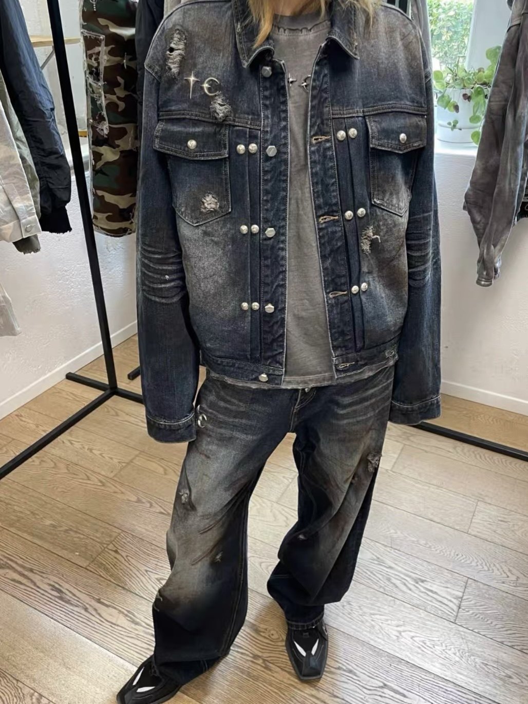 Thugclub25Ss American Retro Mud-Dyed Washed Distressed Denim Jacket Unisex Versatile Short Wide Coat