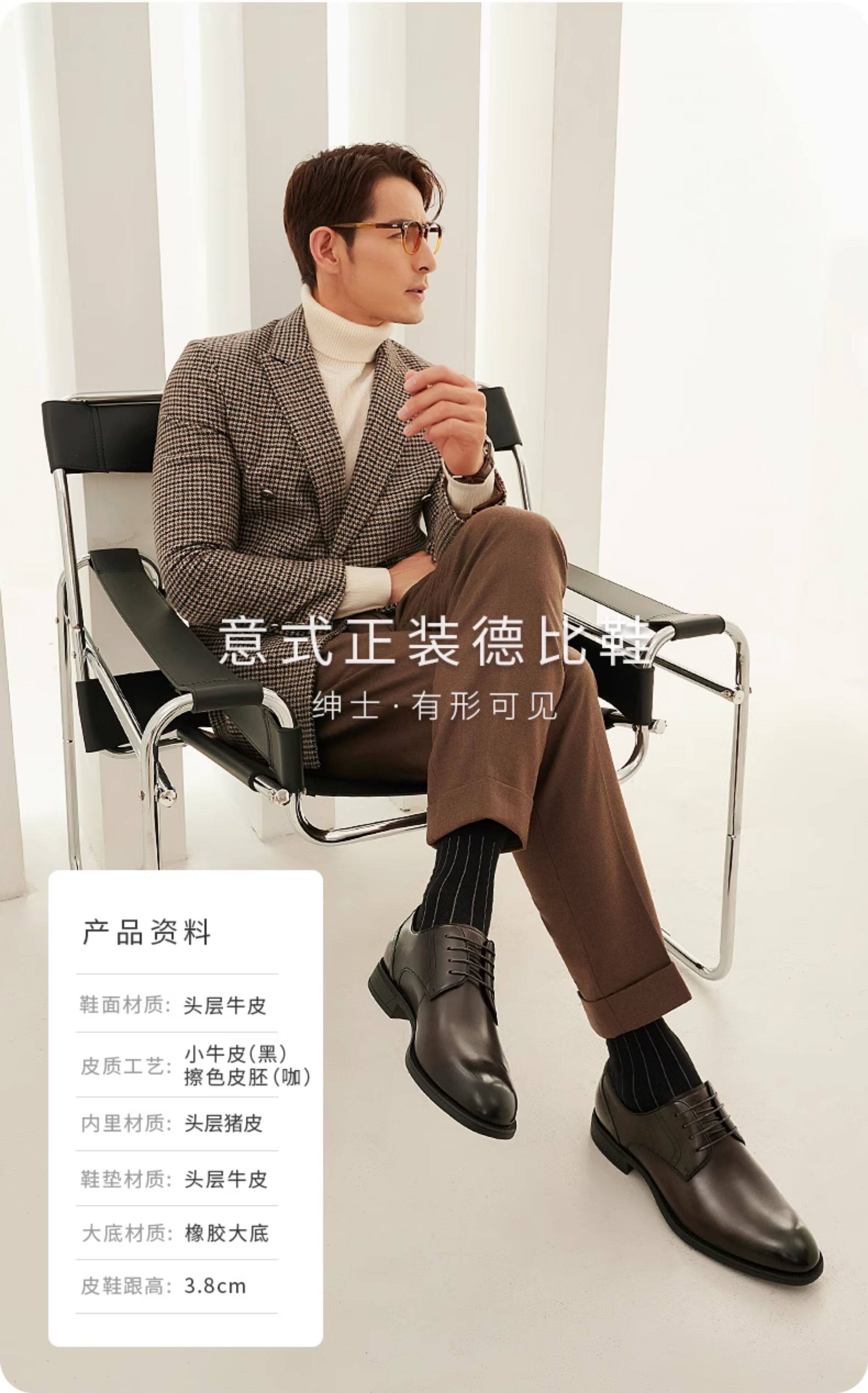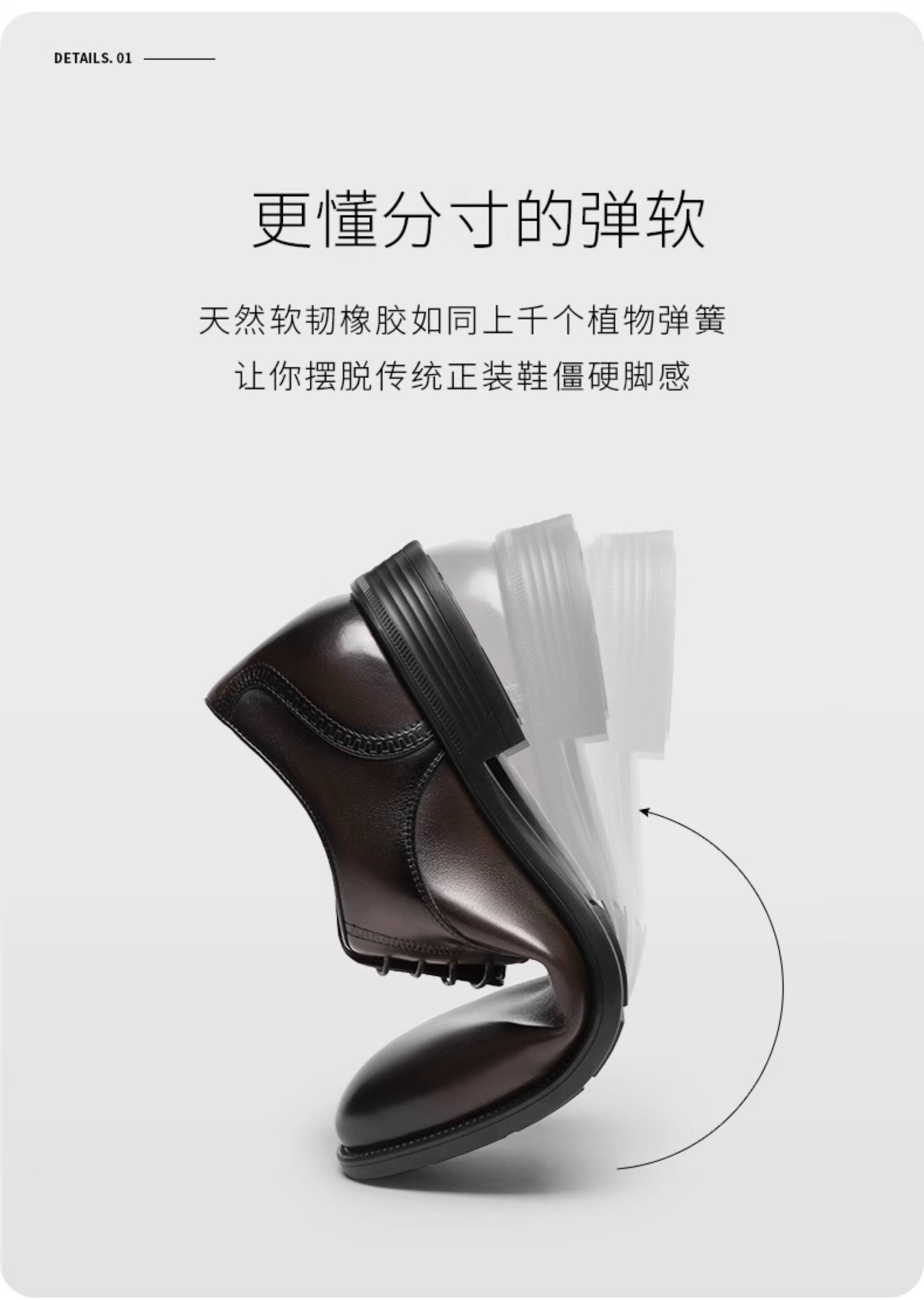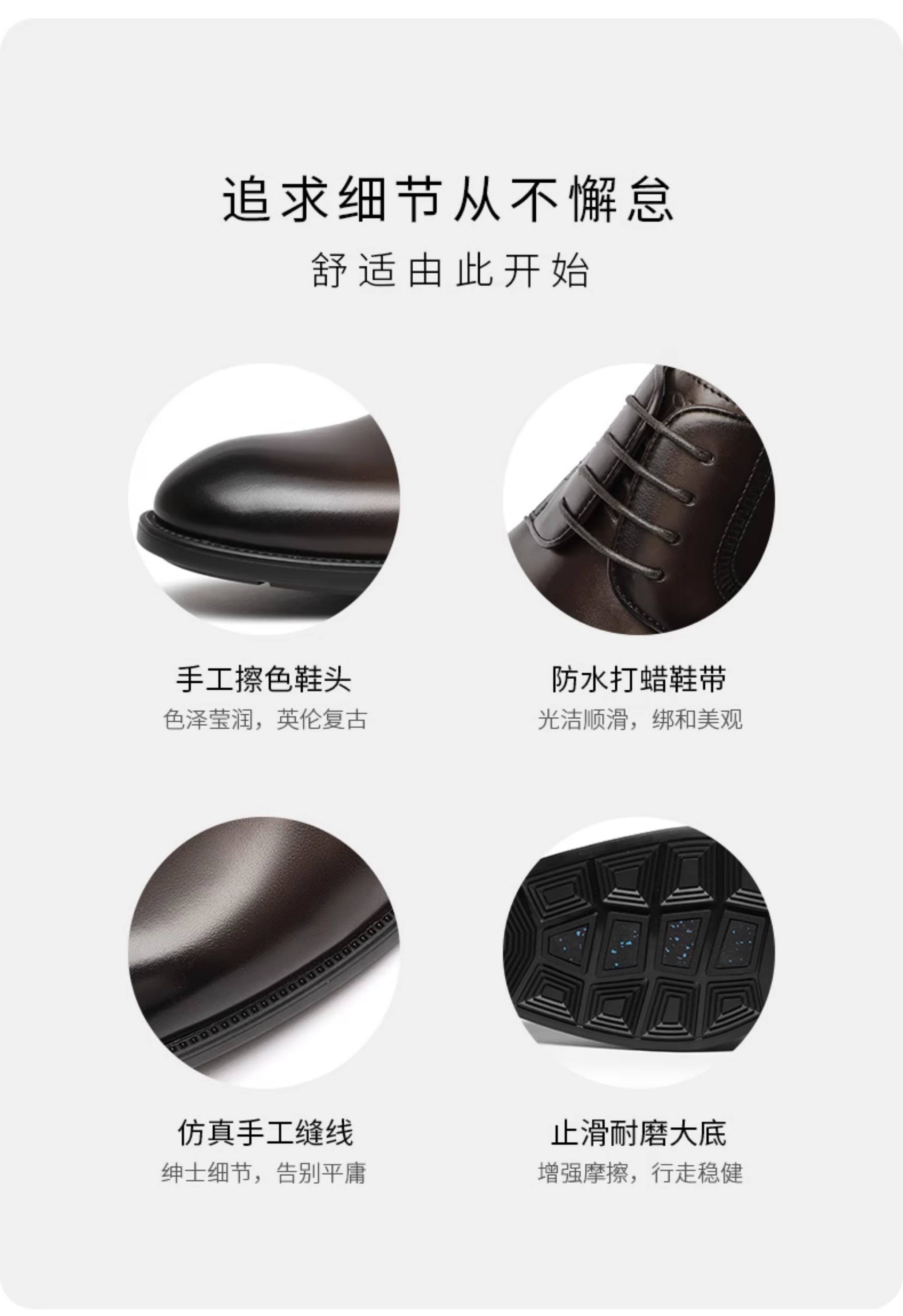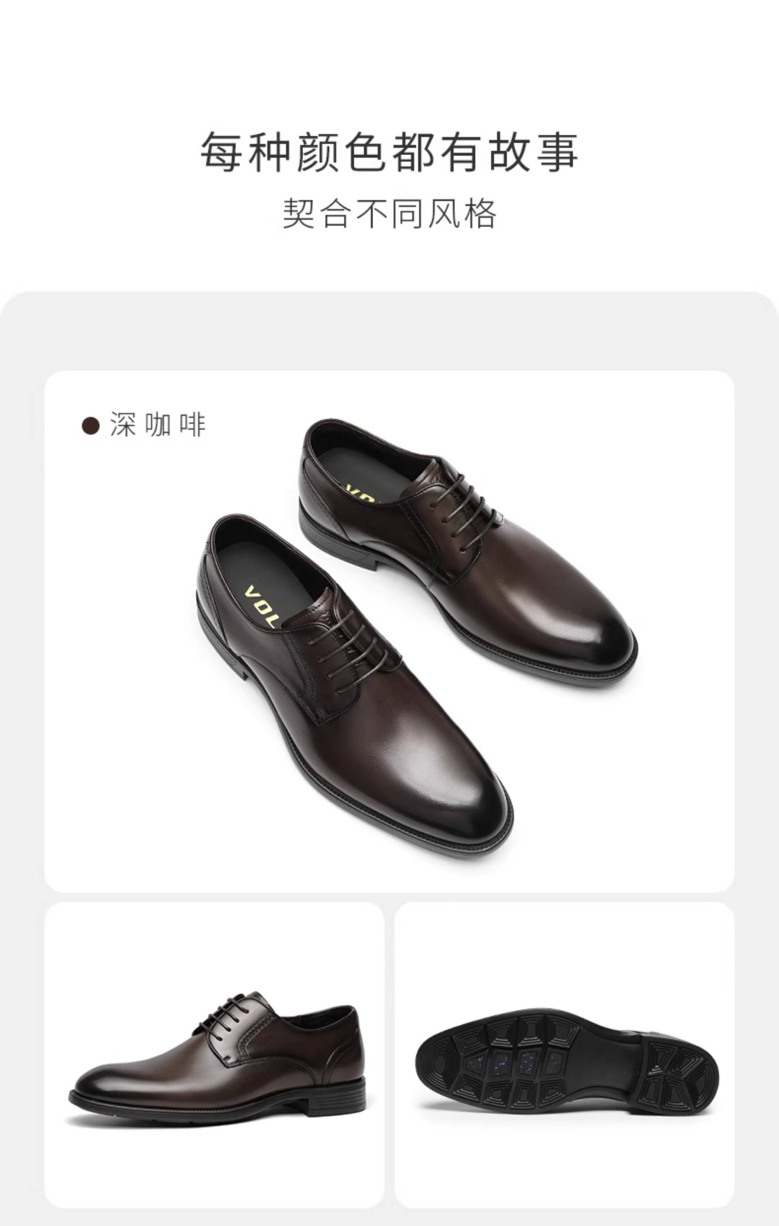 Volo Rhino Leather Shoes Men's Business Formal Shoes Genuine Leather Height-Increasing Shoes Men's Casual Leather Shoes Wedding Groom