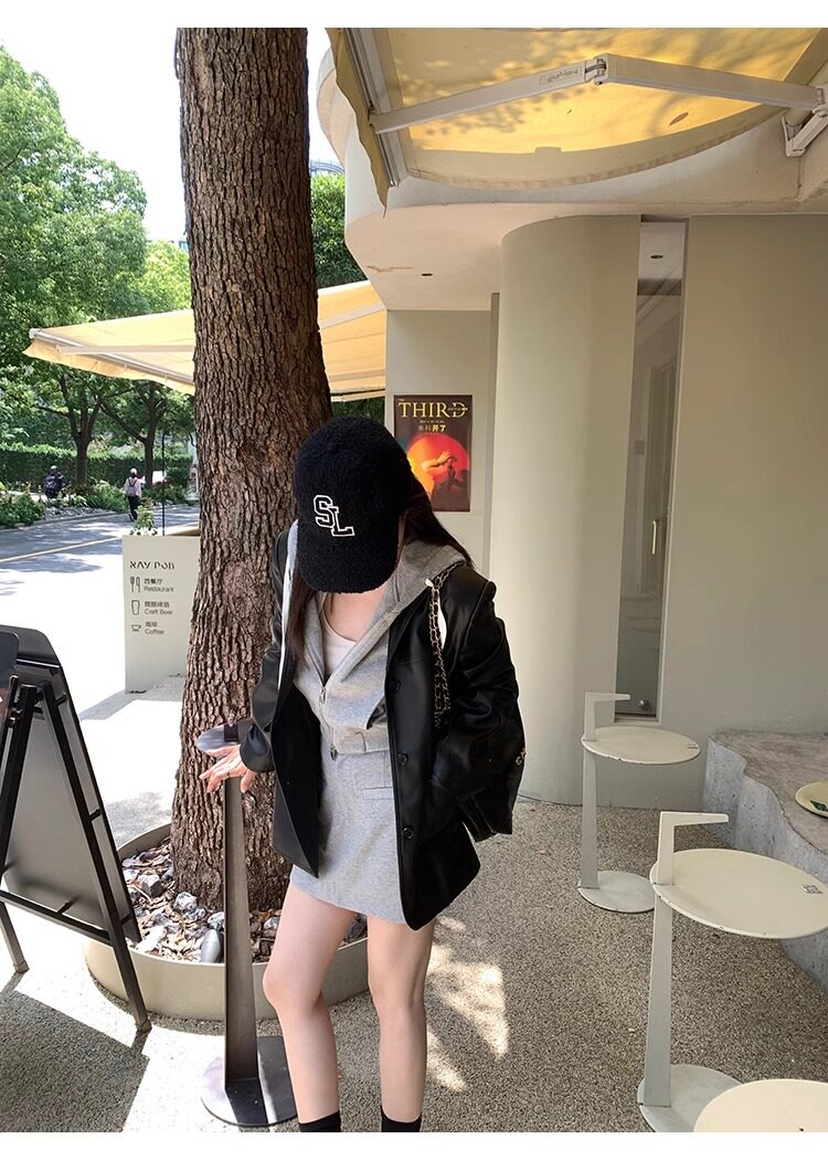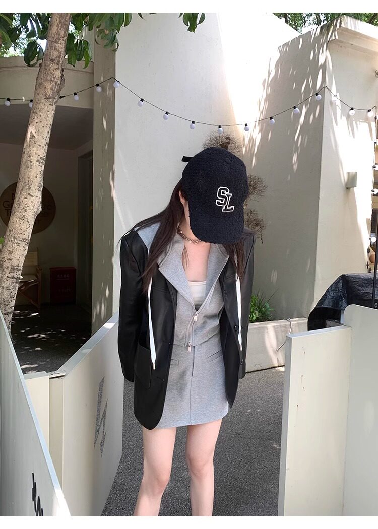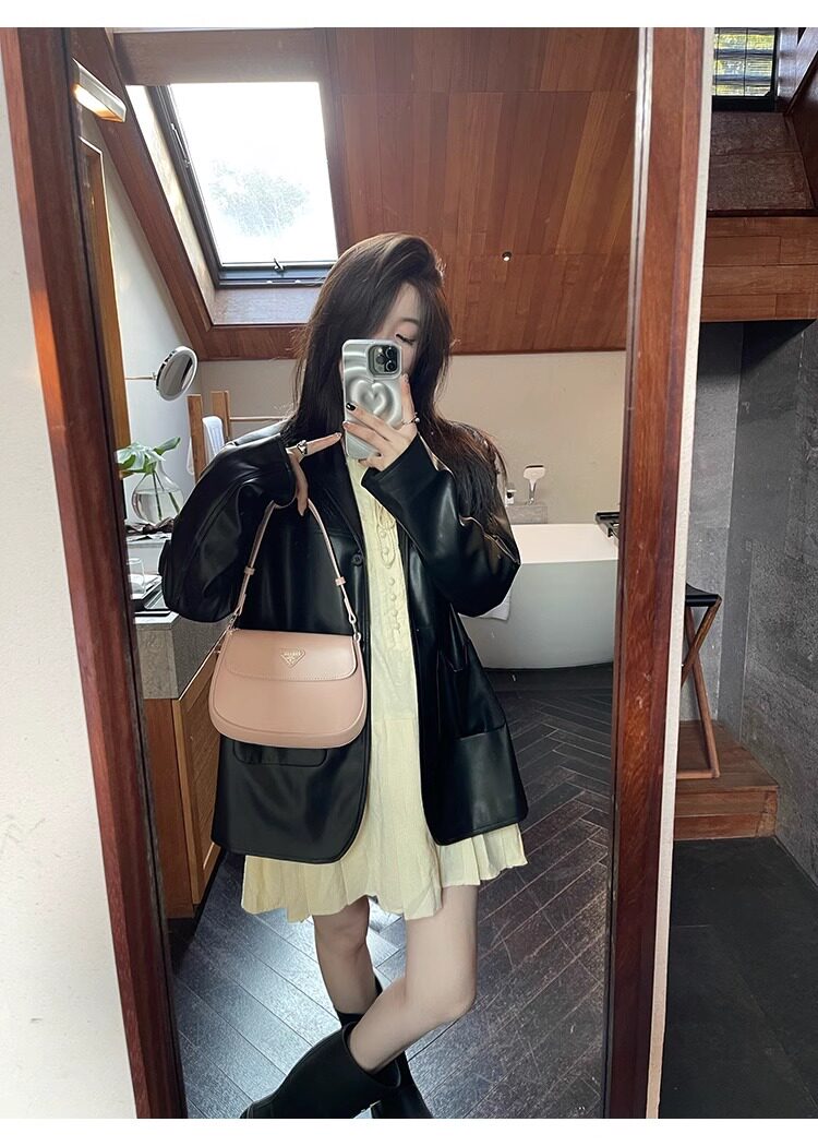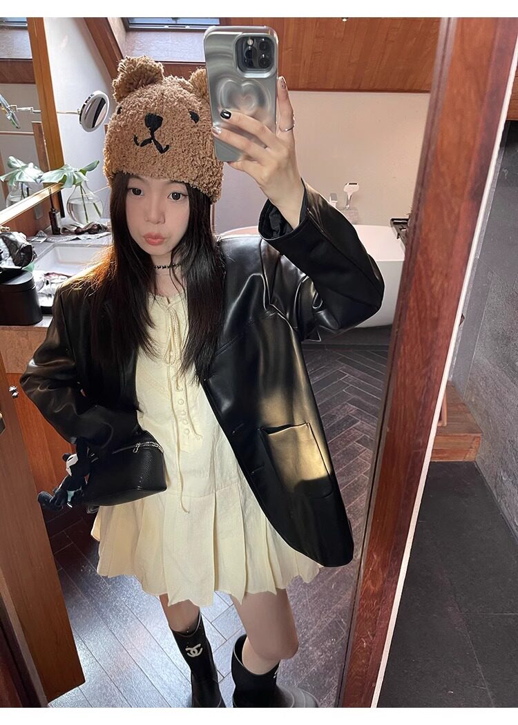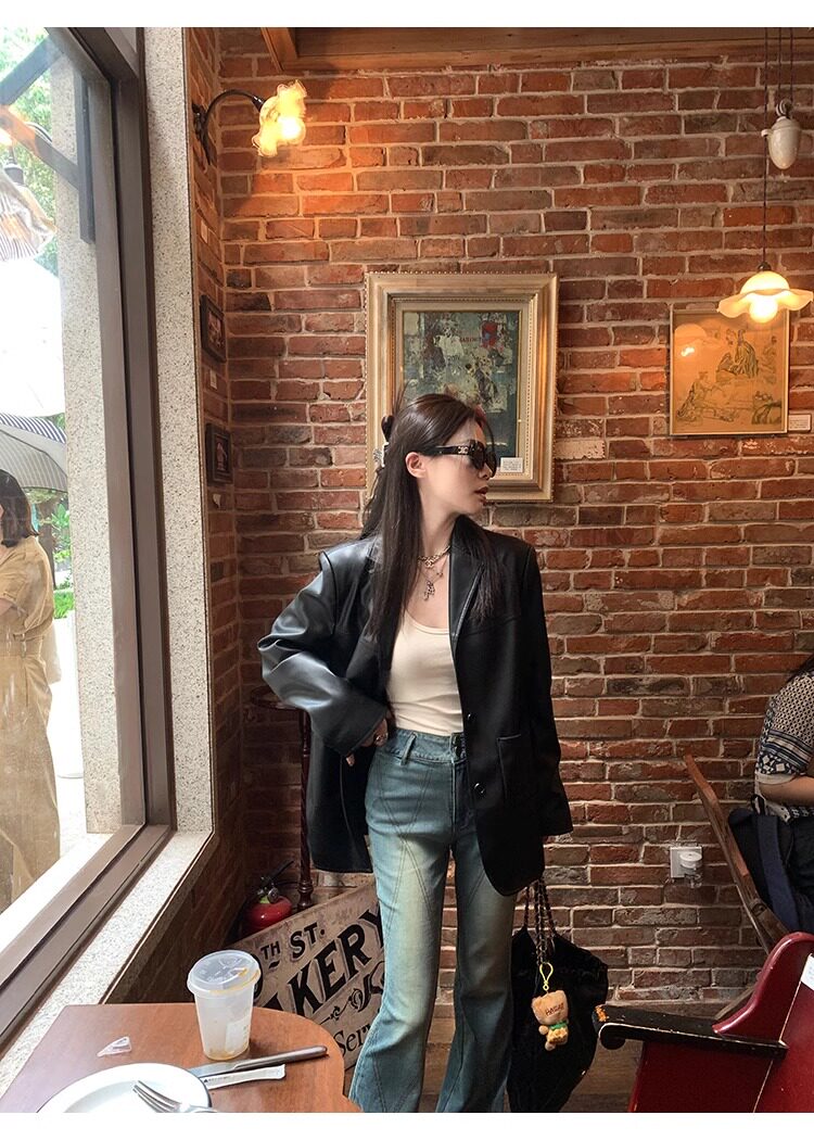 Suit Leather Jacket for Women 2026 Spring and Autumn New Style High-End Street Style Petite Retro Black Biker Leather Jacket