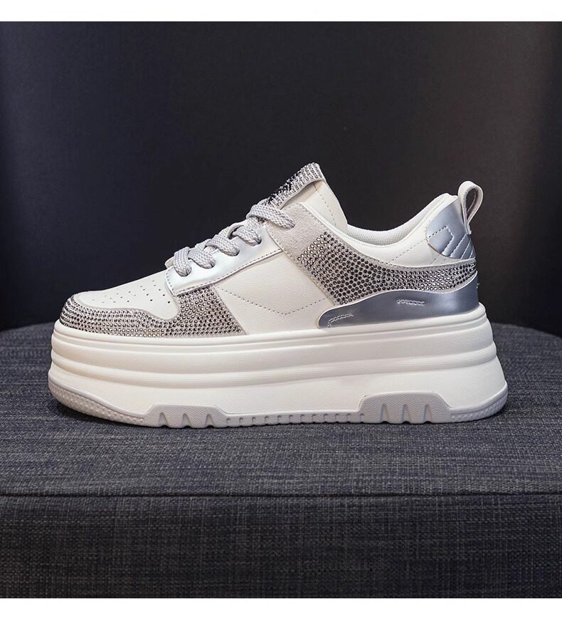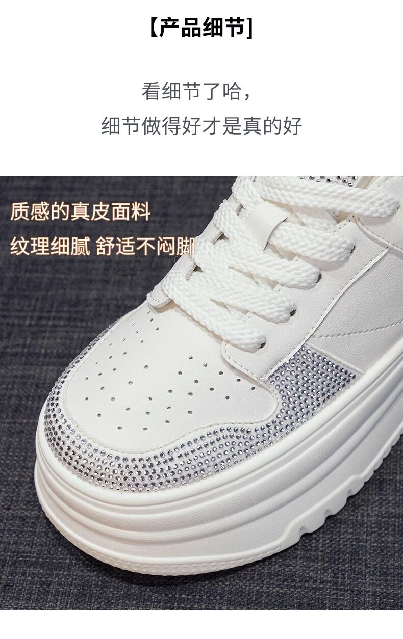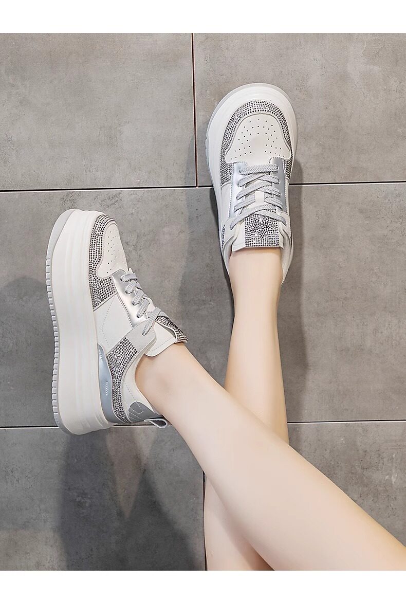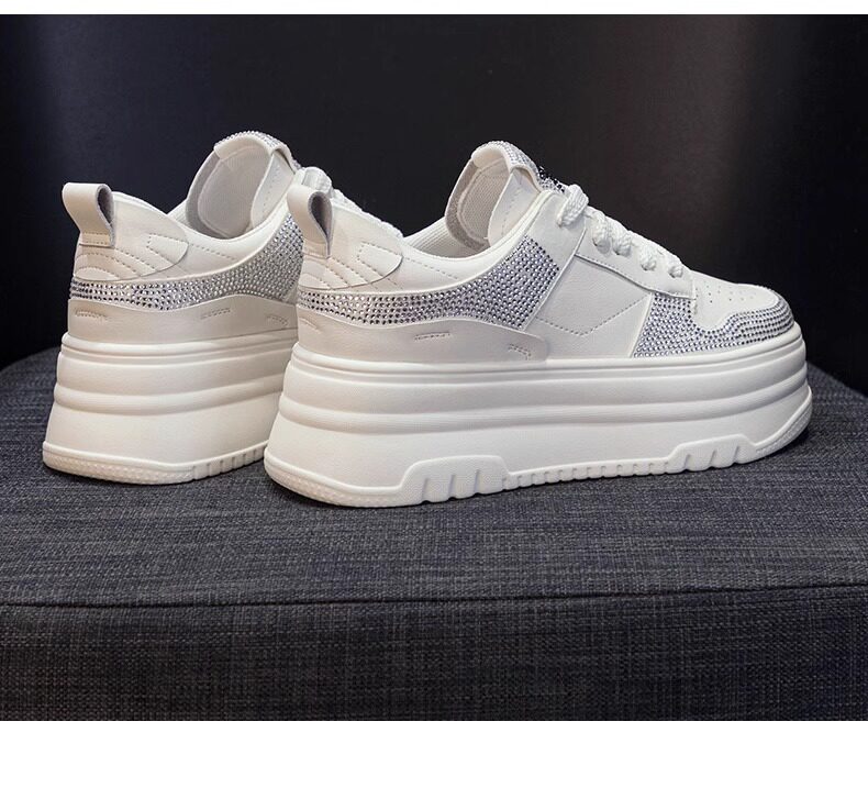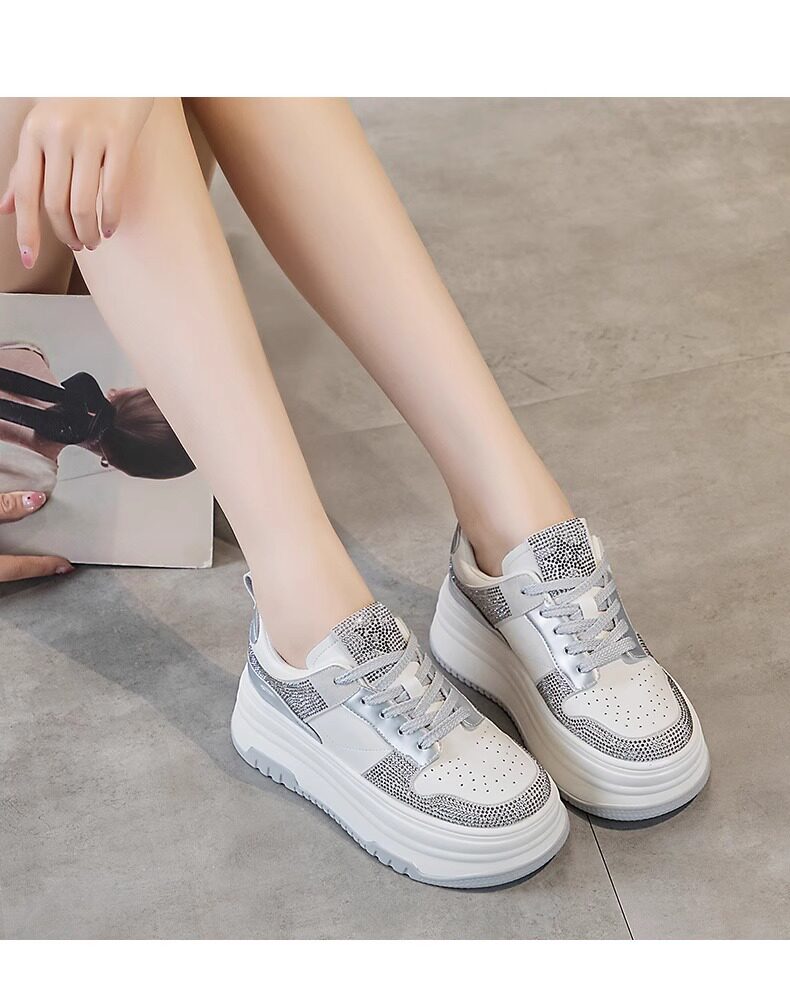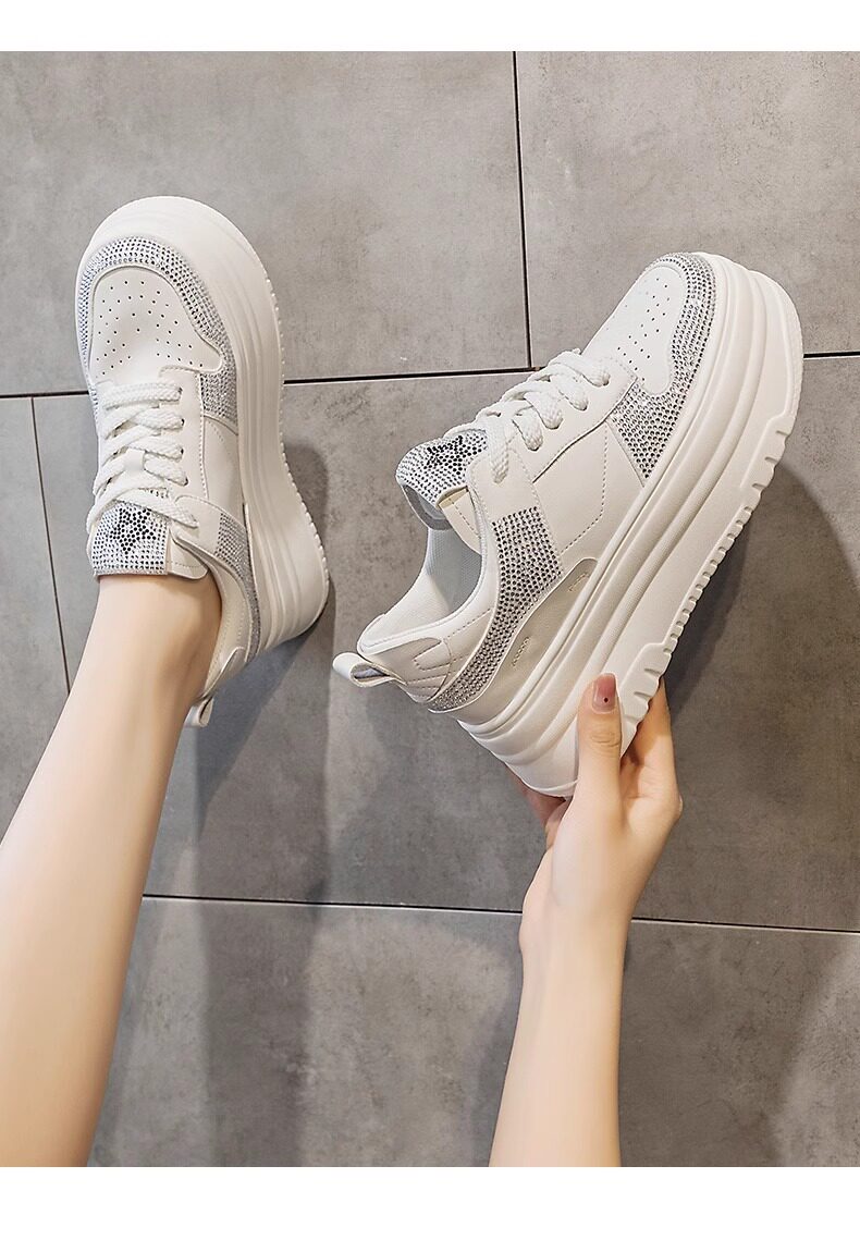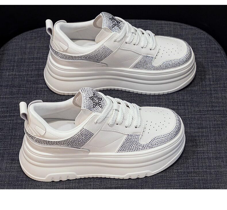 Hong Kong Style Height-Increasing White Sneakers for Women 2026 Spring and Autumn New Model with Rhinestones, Lightweight Platform Thick-Soled Casual Sneakers for Petite Individuals