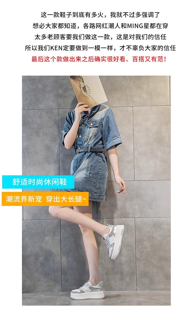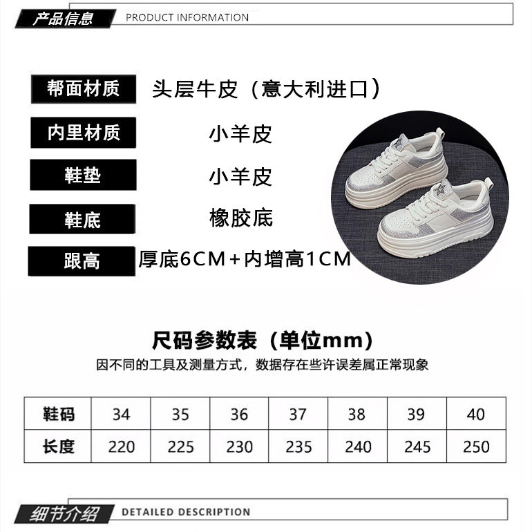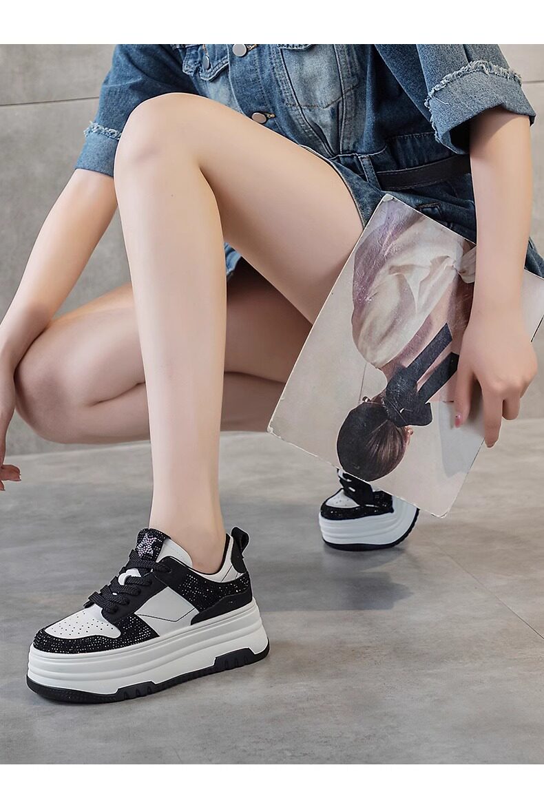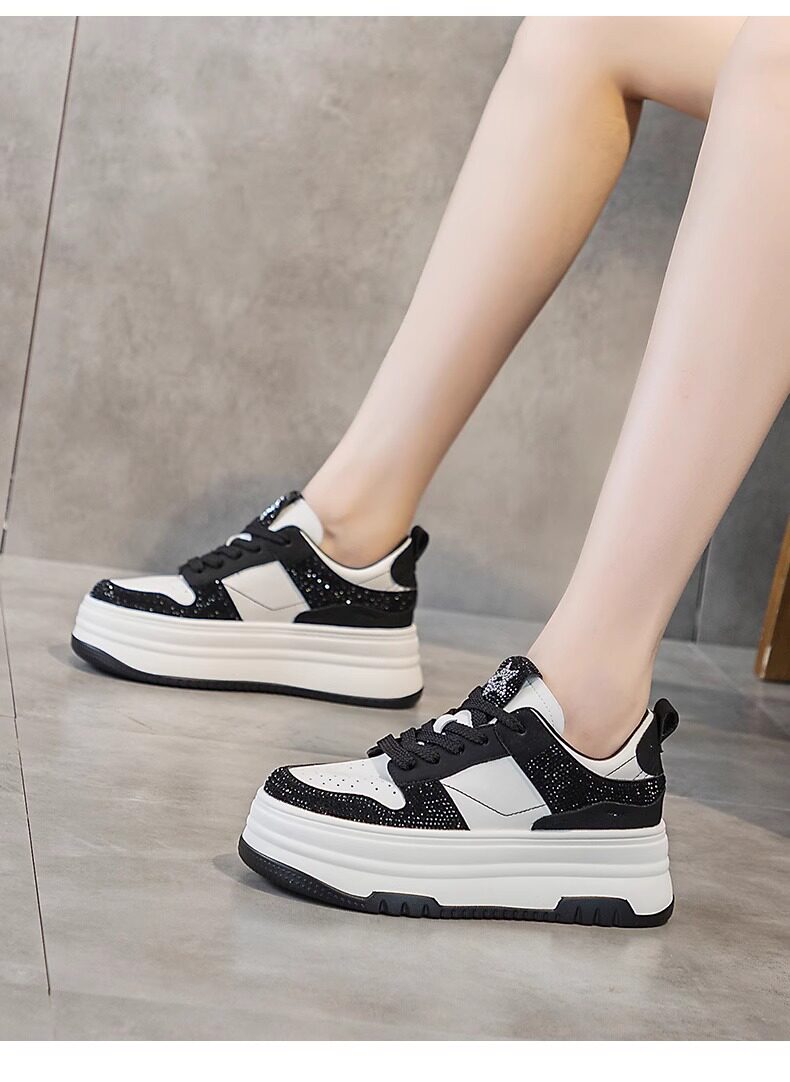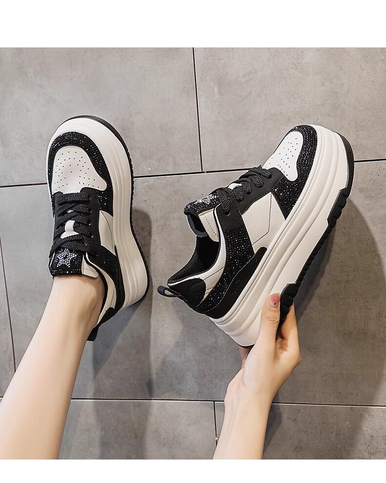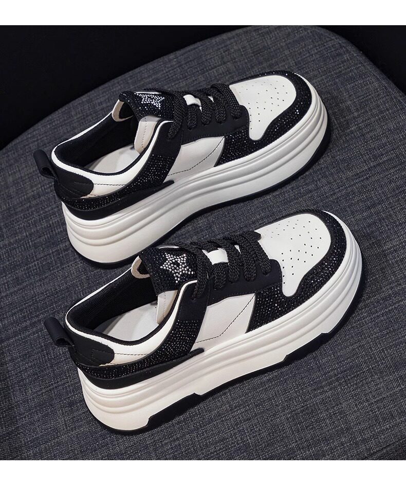 Hong Kong Style Height-Increasing White Sneakers for Women 2026 Spring and Autumn New Model with Rhinestones, Lightweight Platform Thick-Soled Casual Sneakers for Petite Individuals