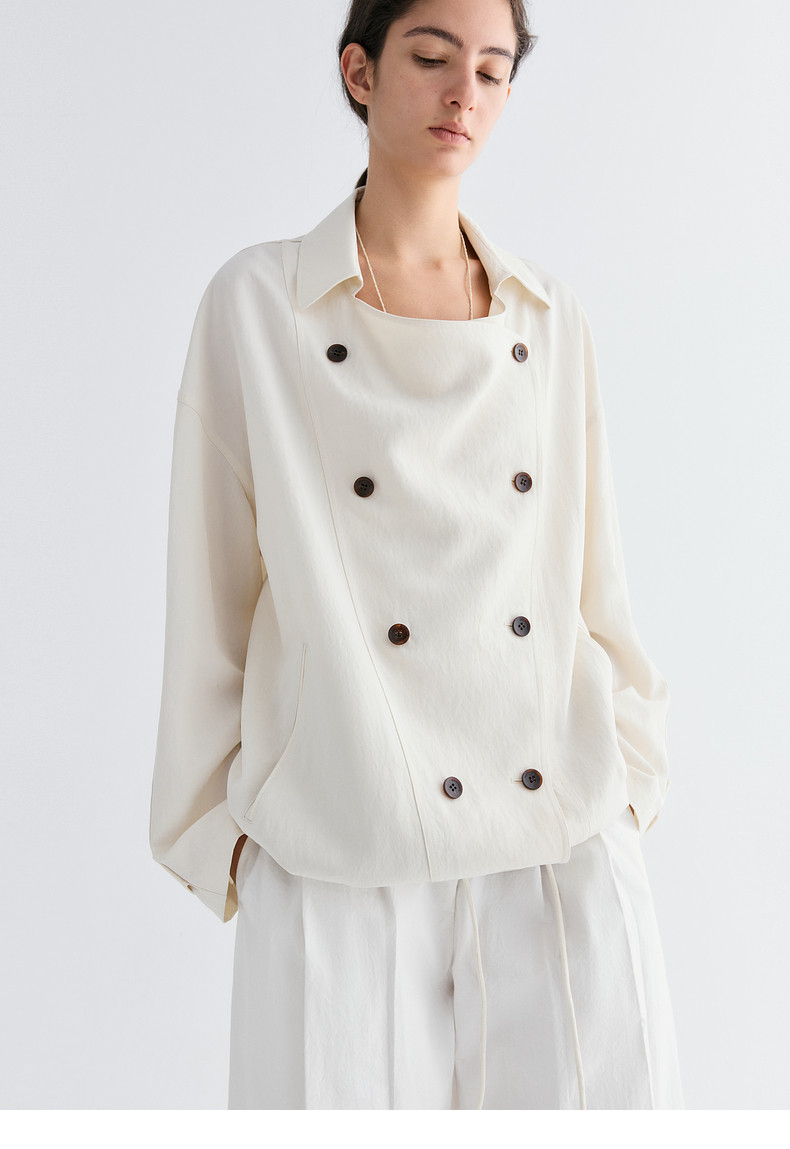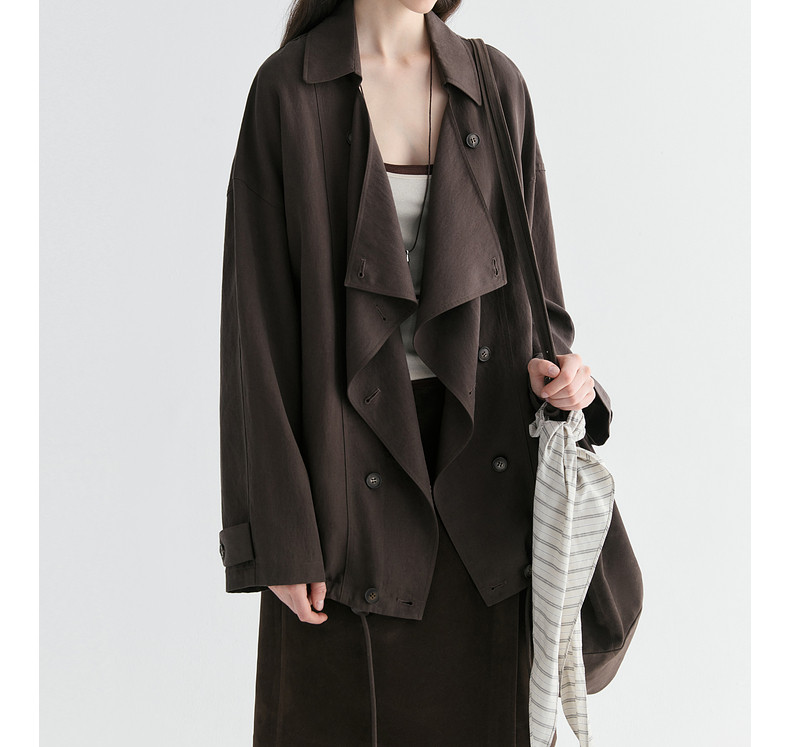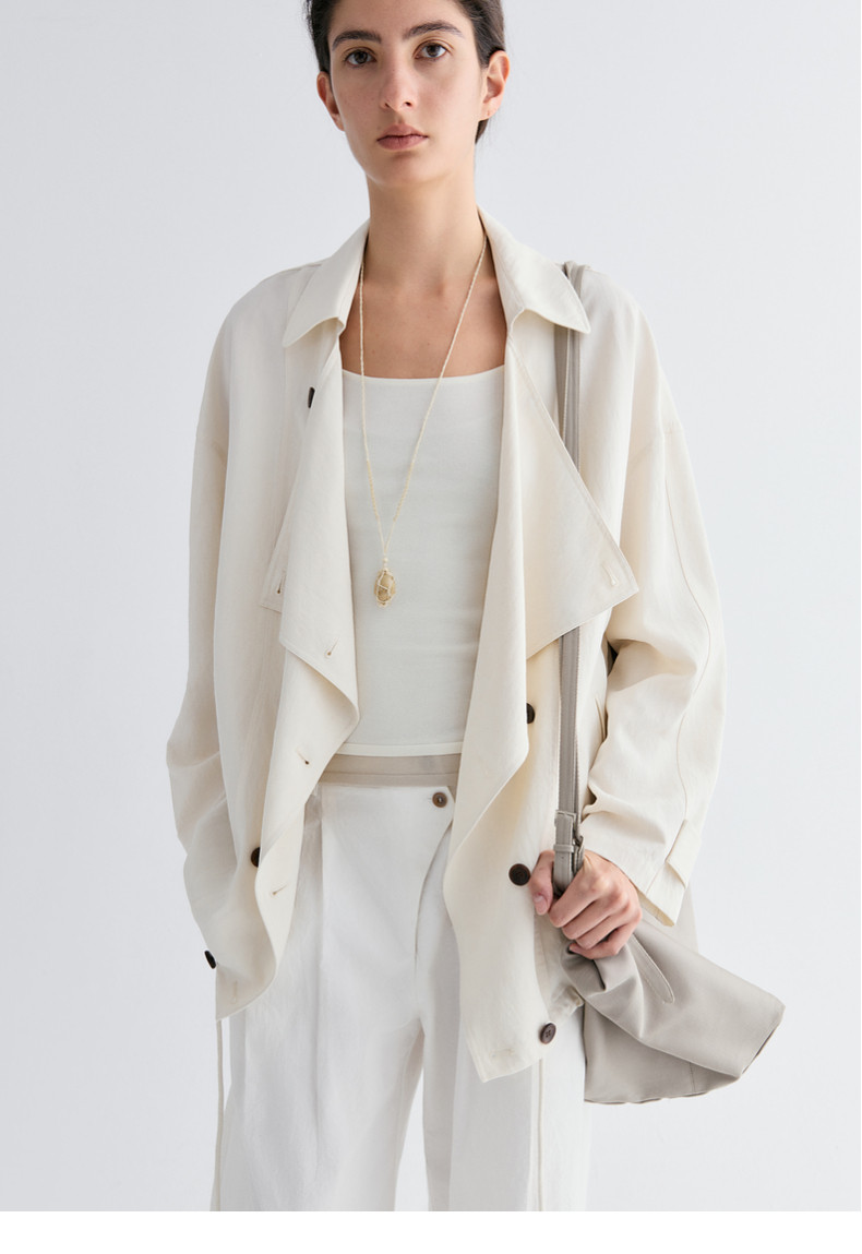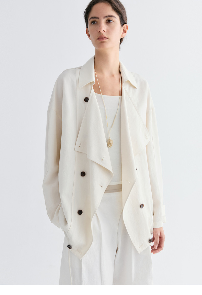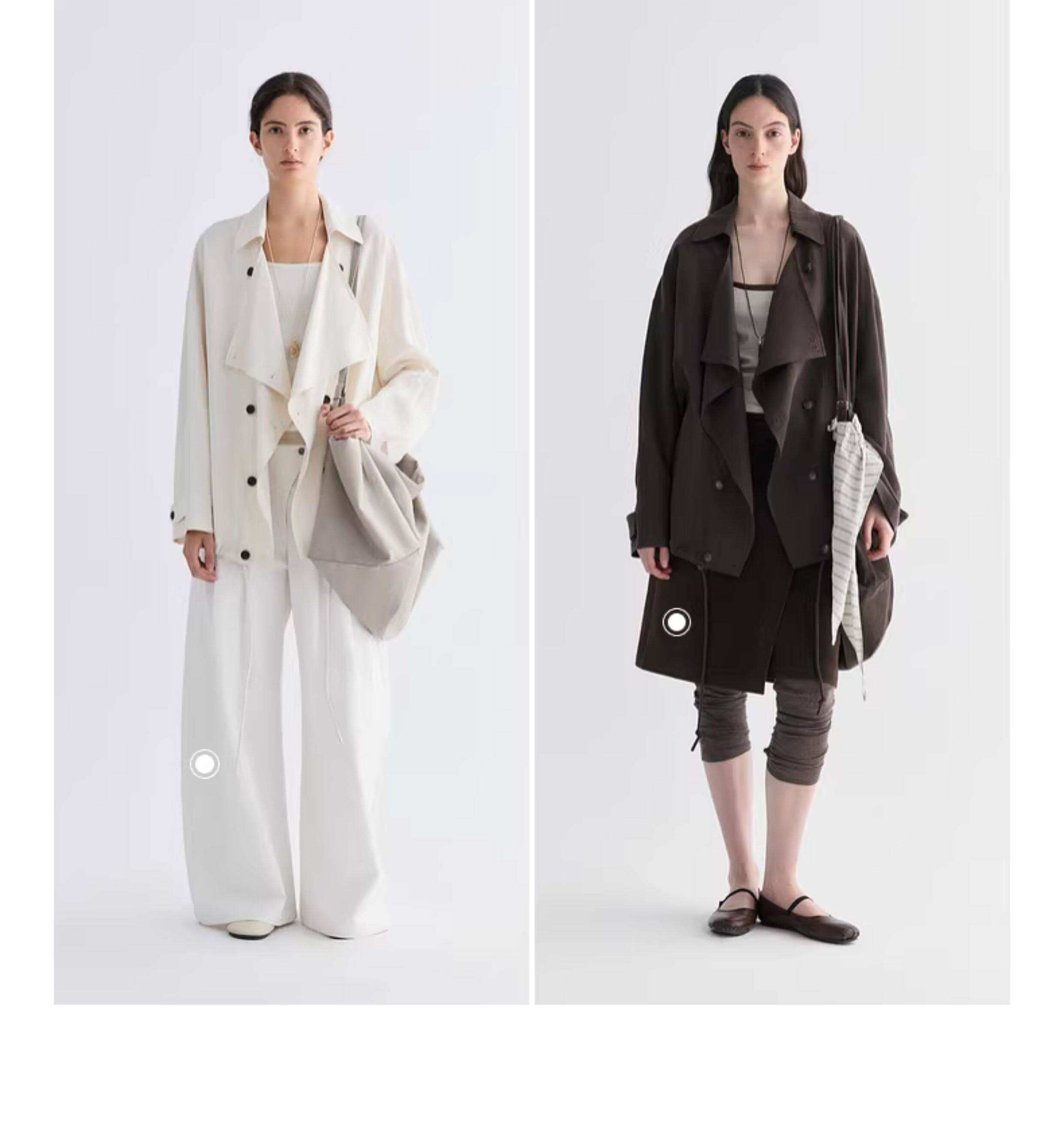 Insis Femme Tencel Spring New Style Draped Double-Breasted Elegant Large Lapel Short Loose Windbreaker Jacket for Women