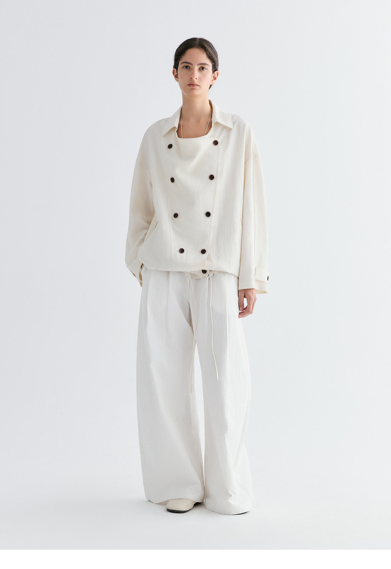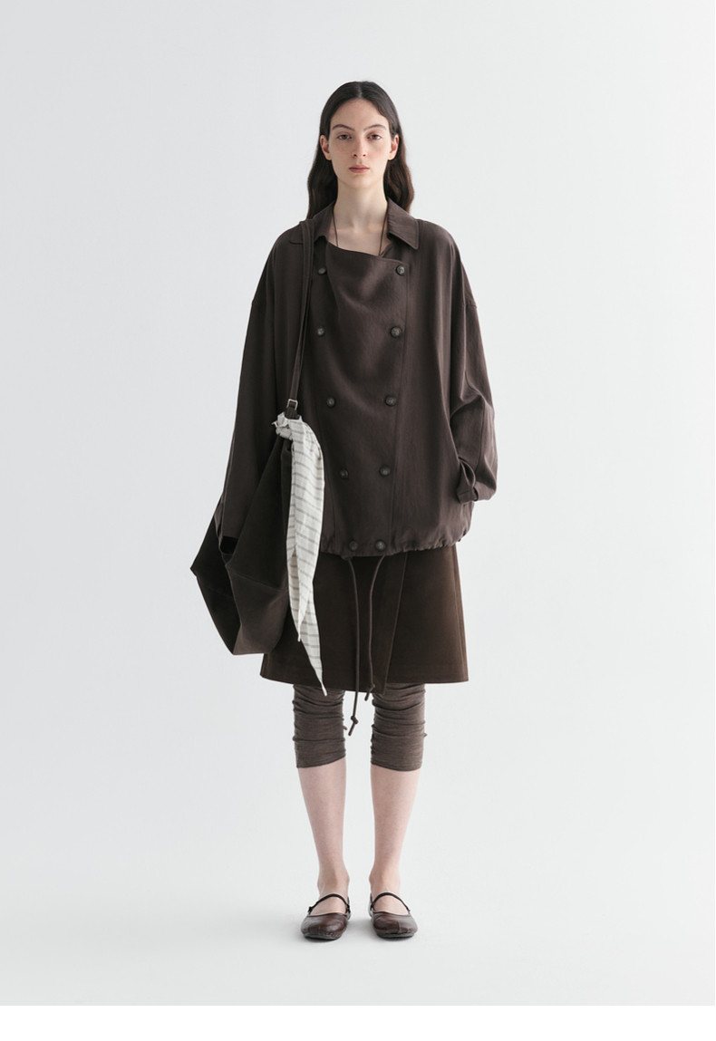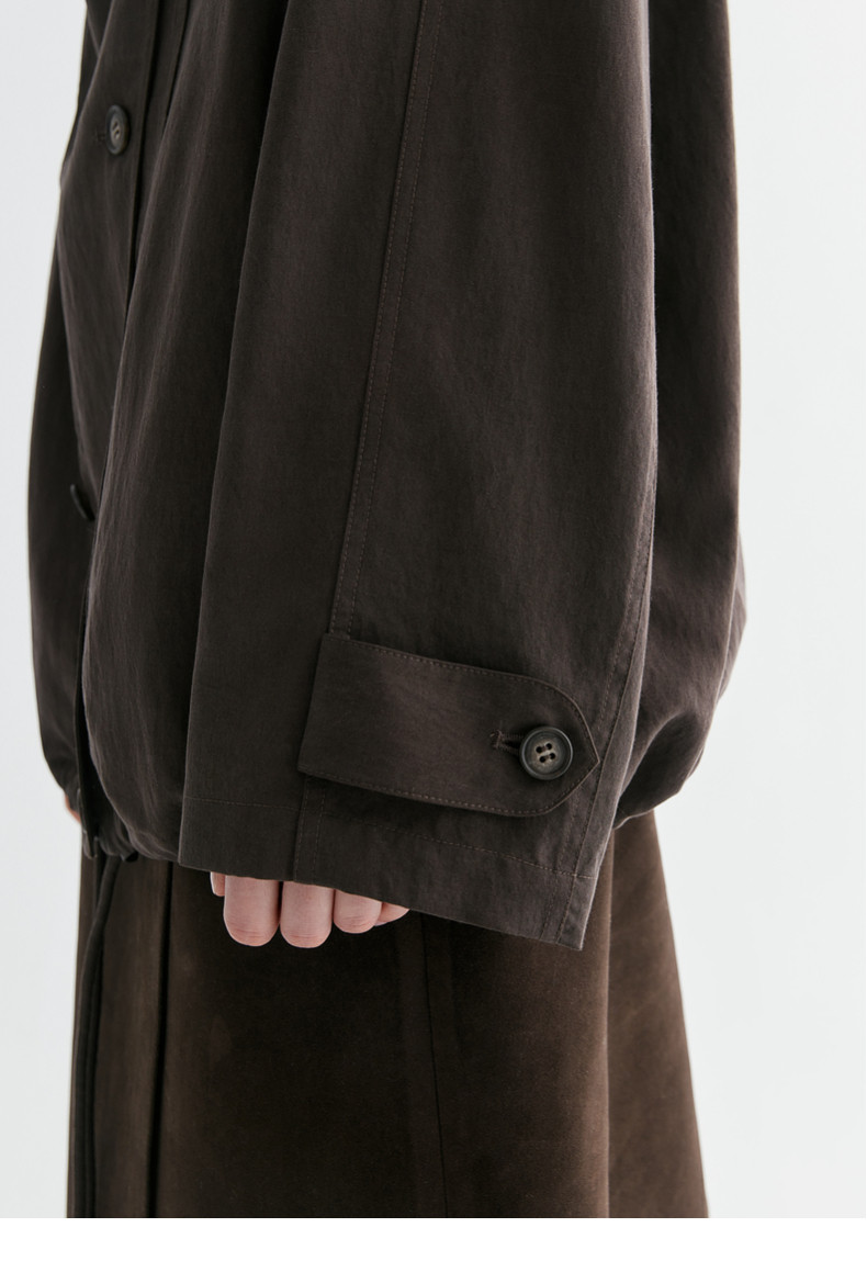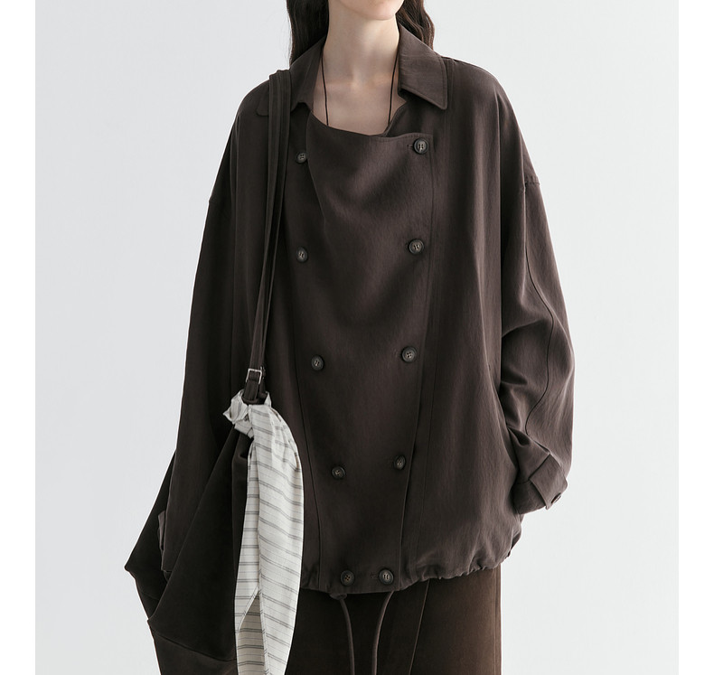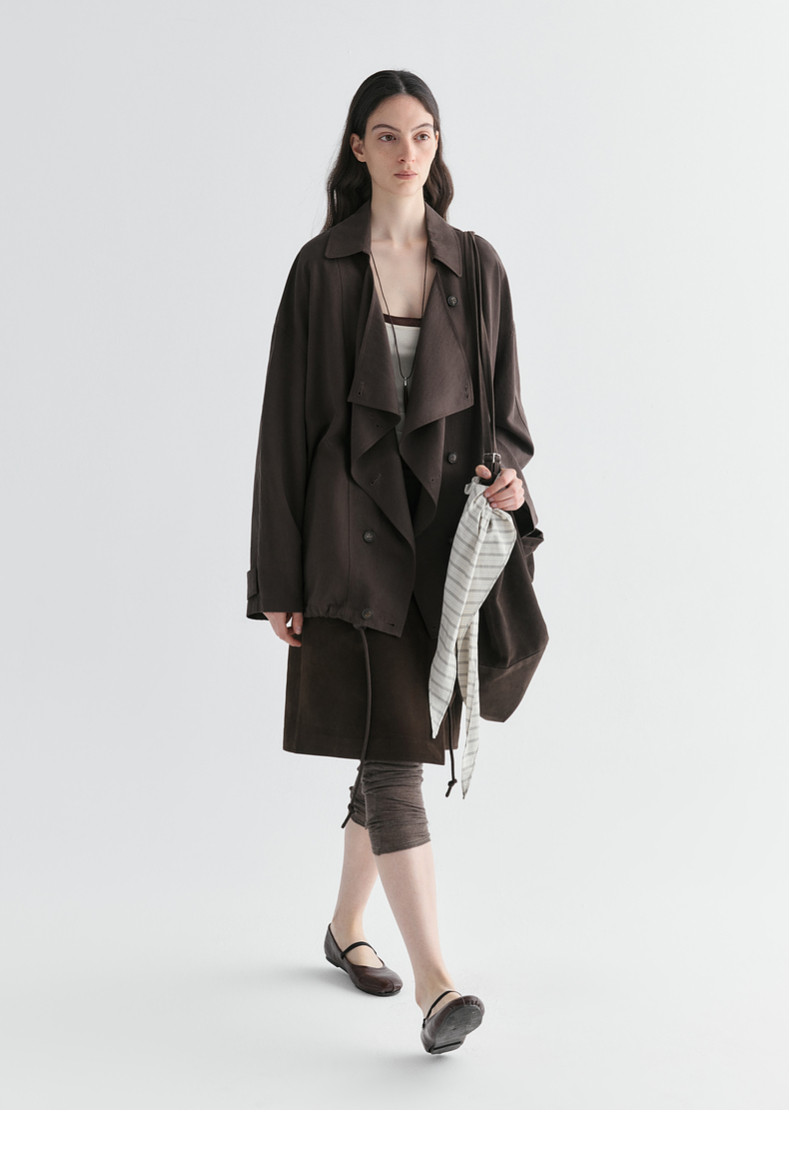 Insis Femme Tencel Spring New Style Draped Double-Breasted Elegant Large Lapel Short Loose Windbreaker Jacket for Women
