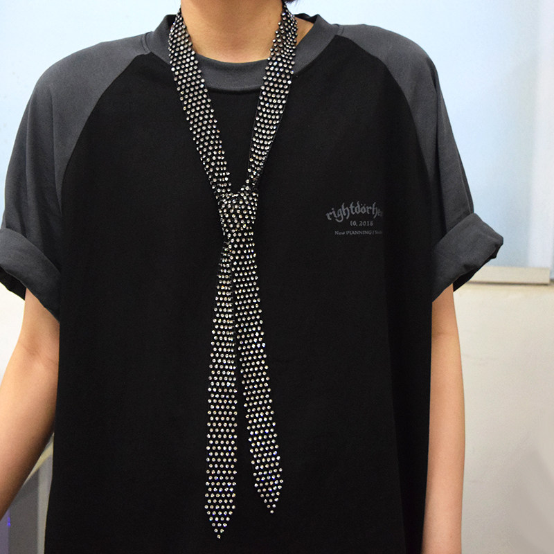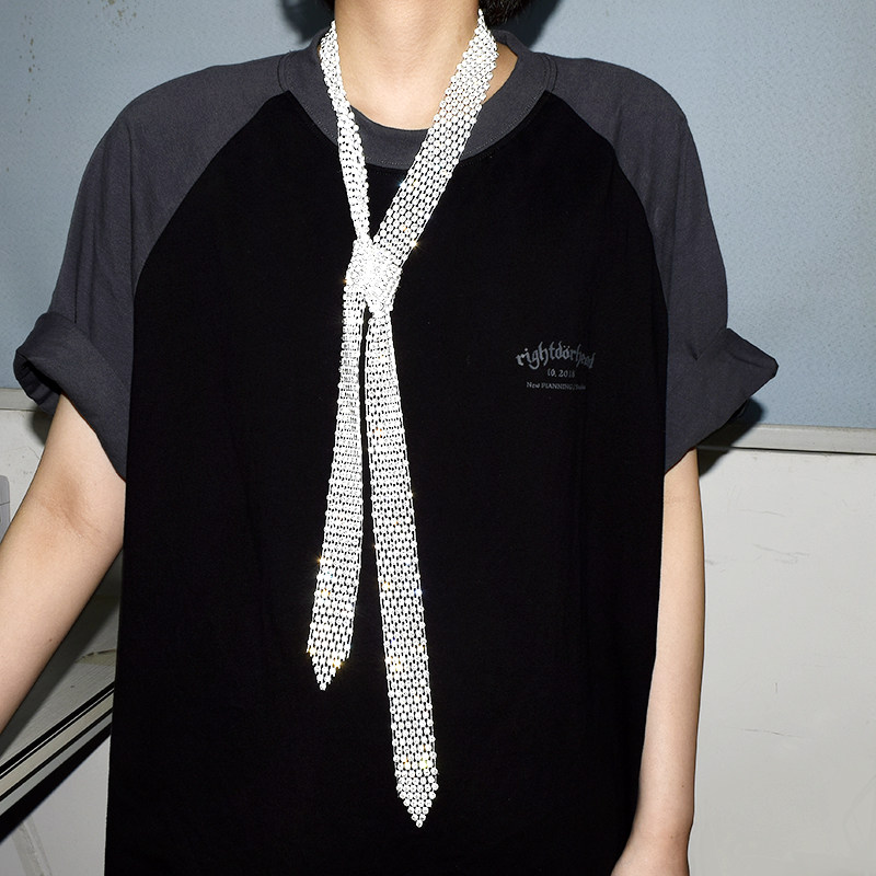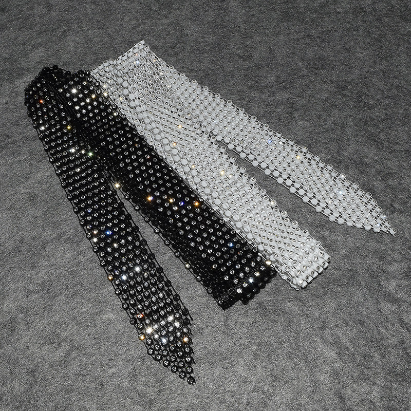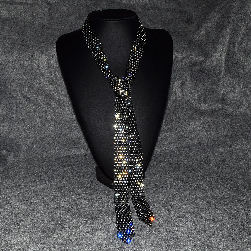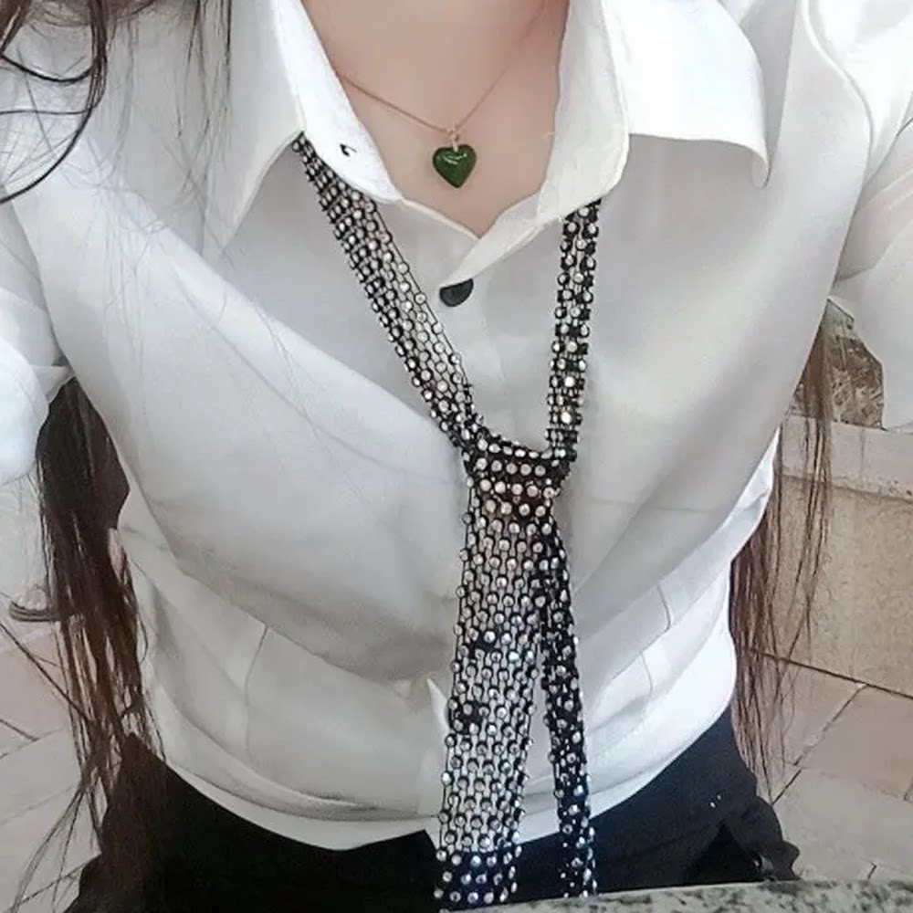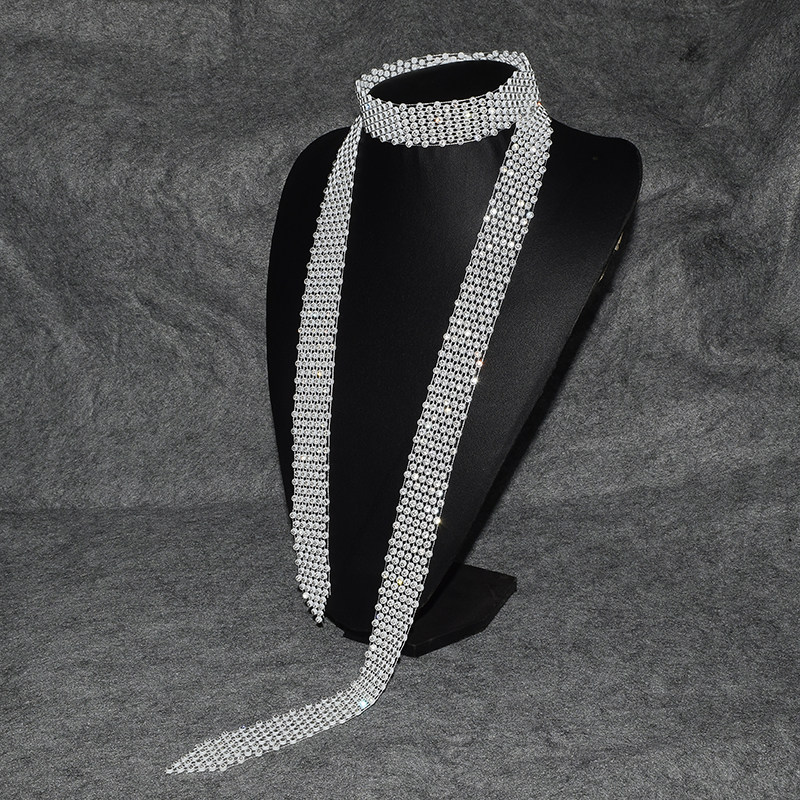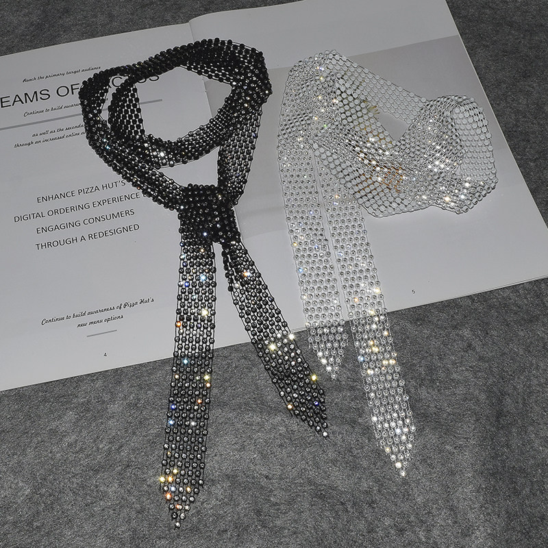 Prom Tie with Rhinestones, Shiny Rhinestone Women's Neck Decoration, Trendy Neckband, Crystal Long Necklace with Rhinestones for Men and Women