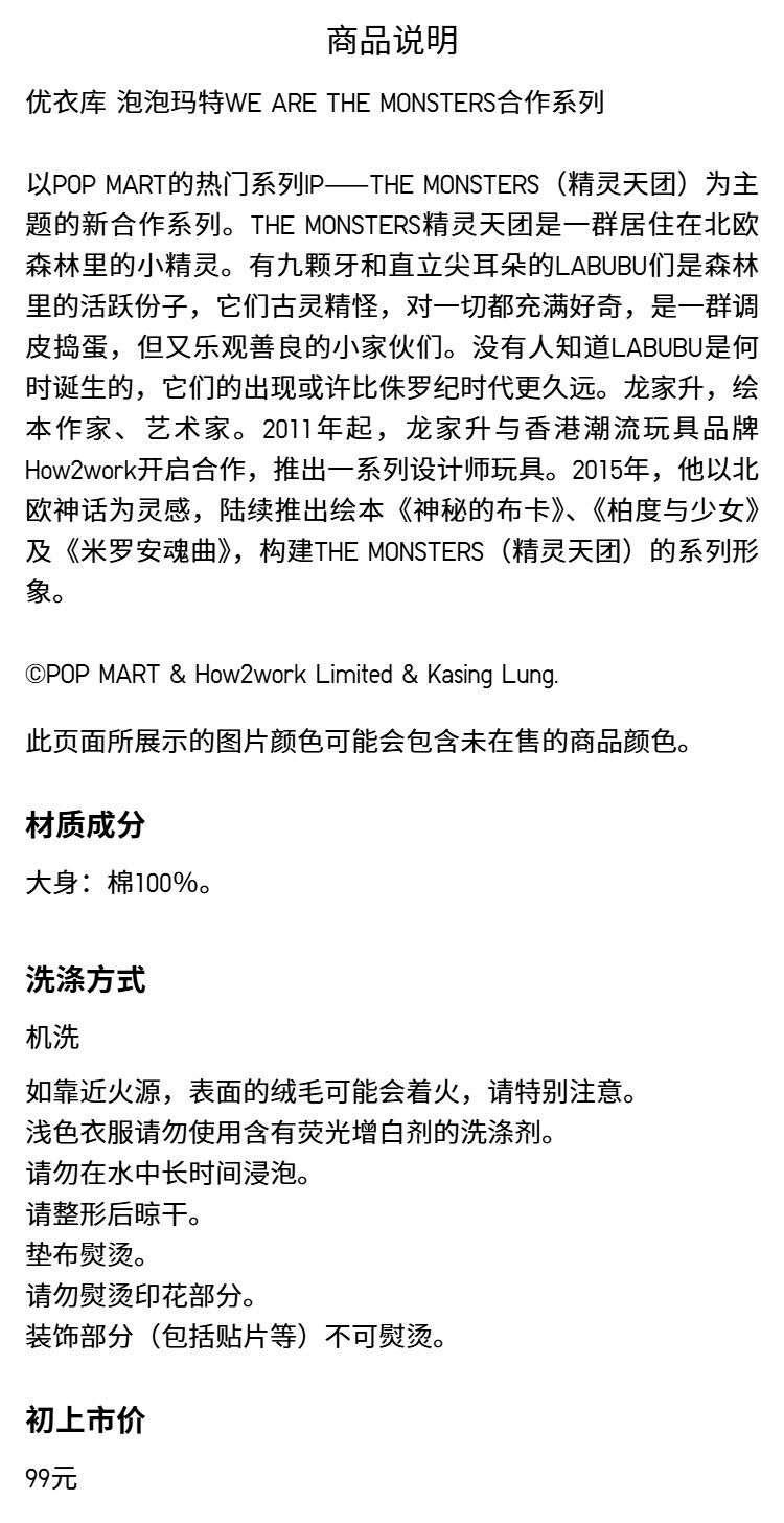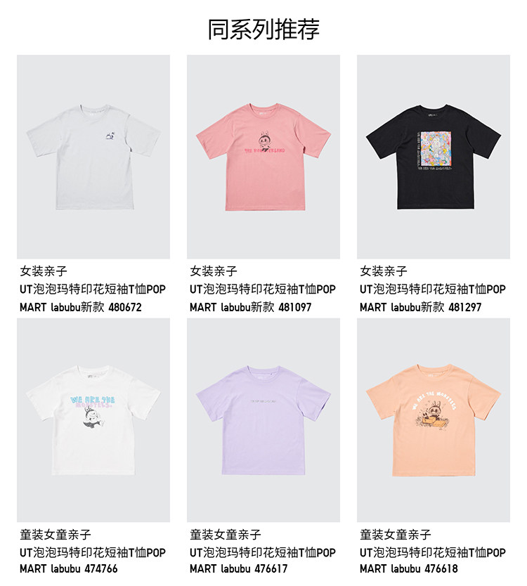 Uniqlo Women's and Men's Unisex Parent-Child Ut Bubble Mart Printed Short-Sleeved T-Shirt Pop Mart 480671