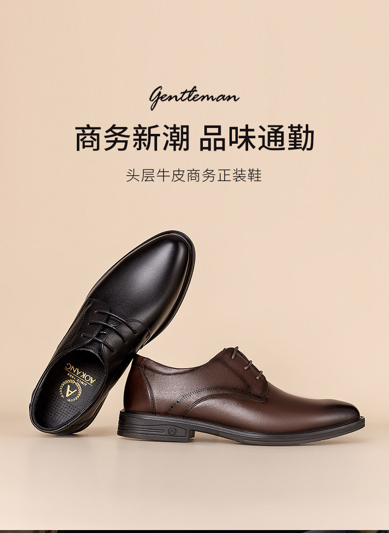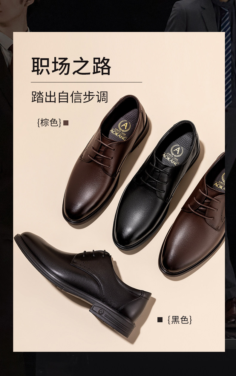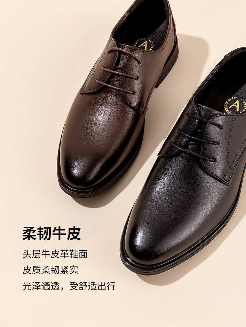 Aokang Men's Shoes Spring Derby Shoes Genuine Leather Business Formal Work Commuting Official Wedding Shoes Groom Leather Shoes