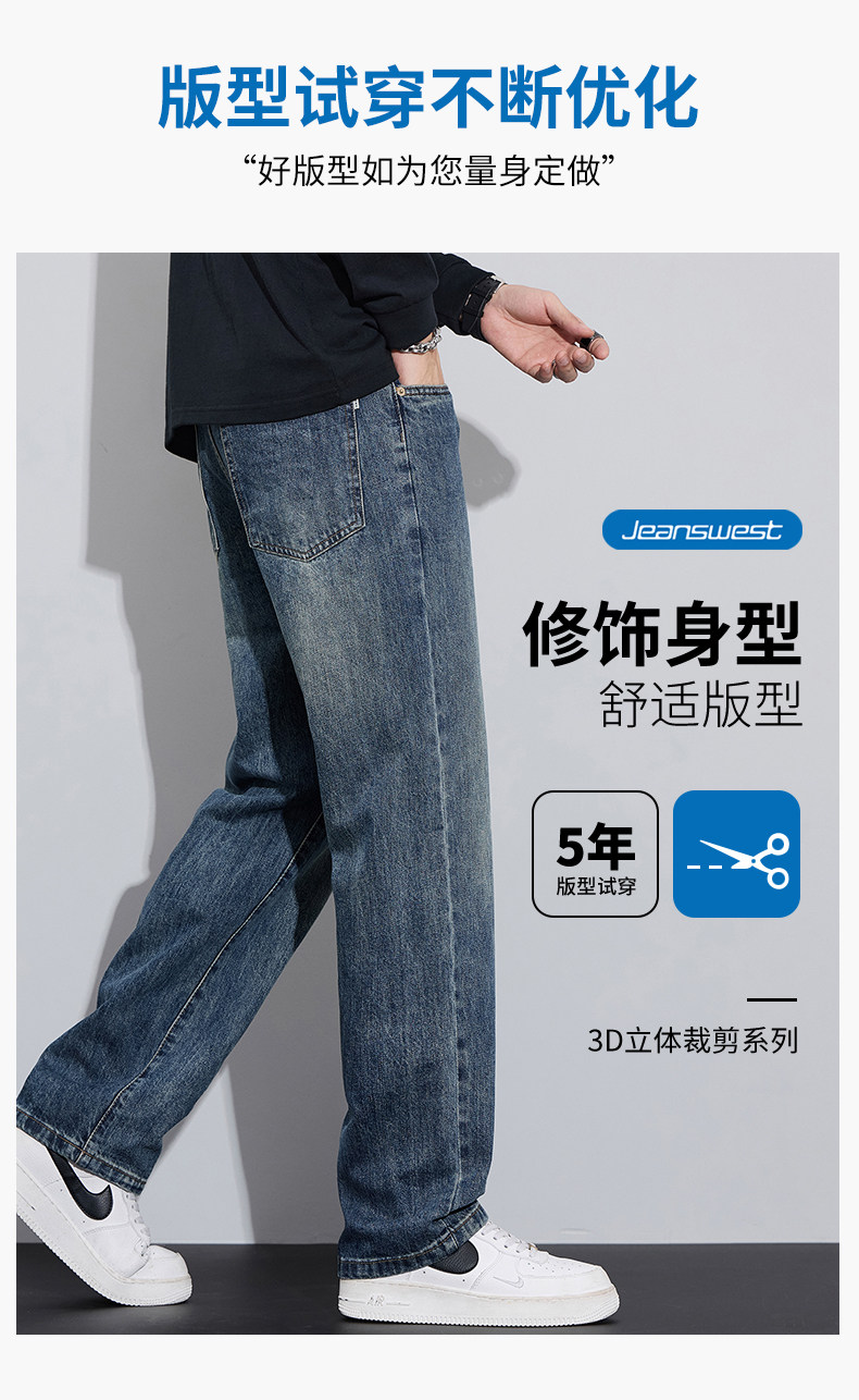 Jeans for Men, Spring/Summer 2026 New Vintage Washed Casual Pants, Loose Fit Straight Leg Trousers for Men