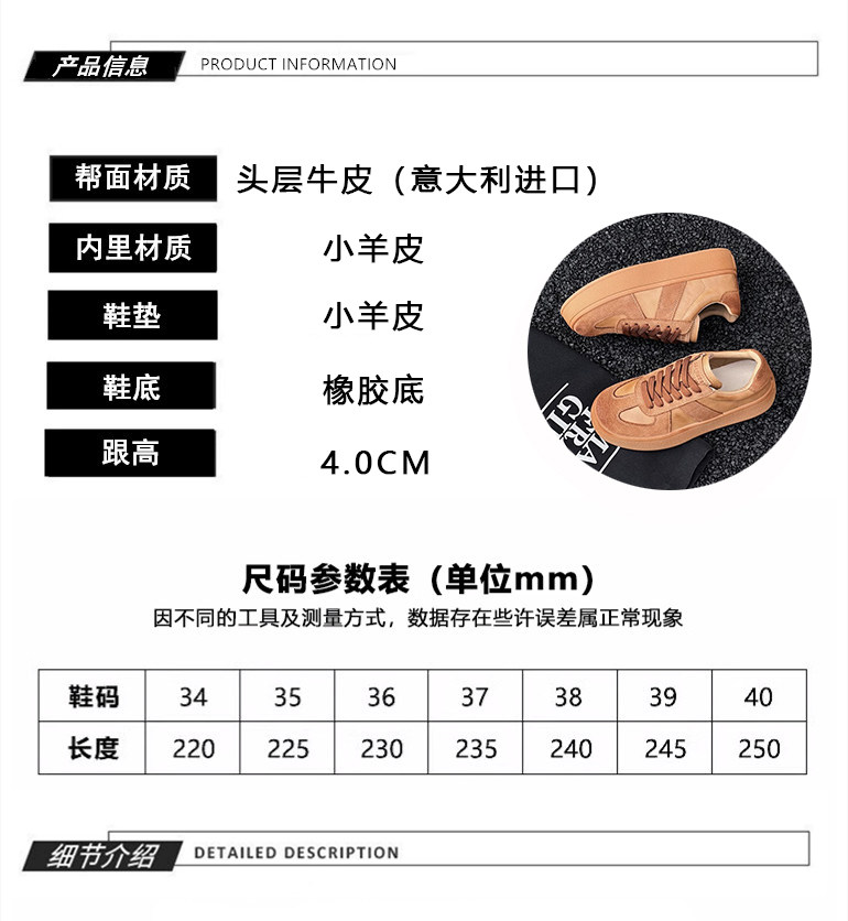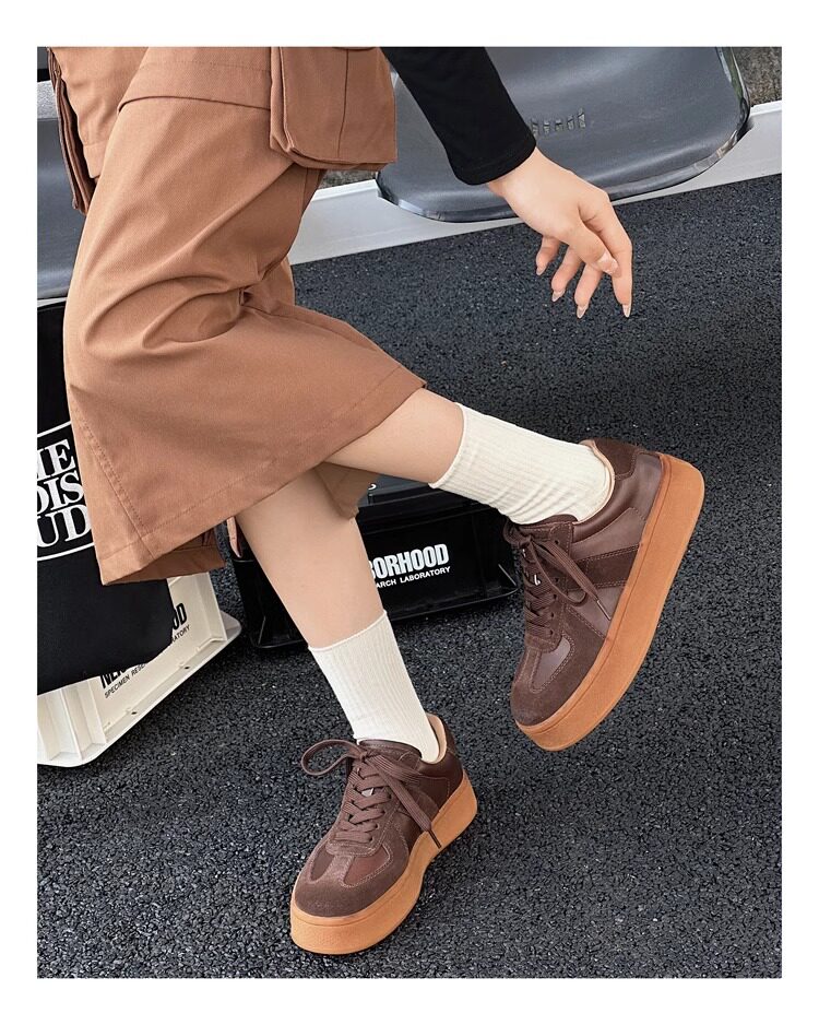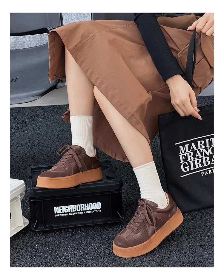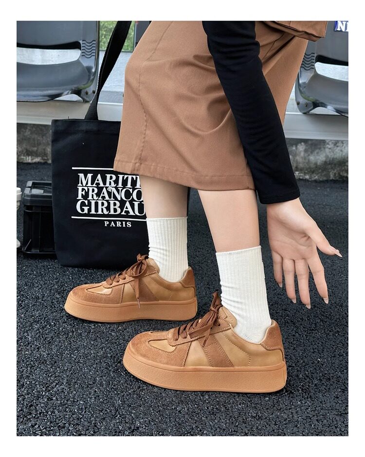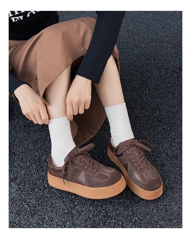 Hong Kong Genuine Leather Thick-Soled German Training Shoes for Women 2026 Spring and Autumn New Versatile Sneakers Polished Sports Casual Shoes Agan Shoes