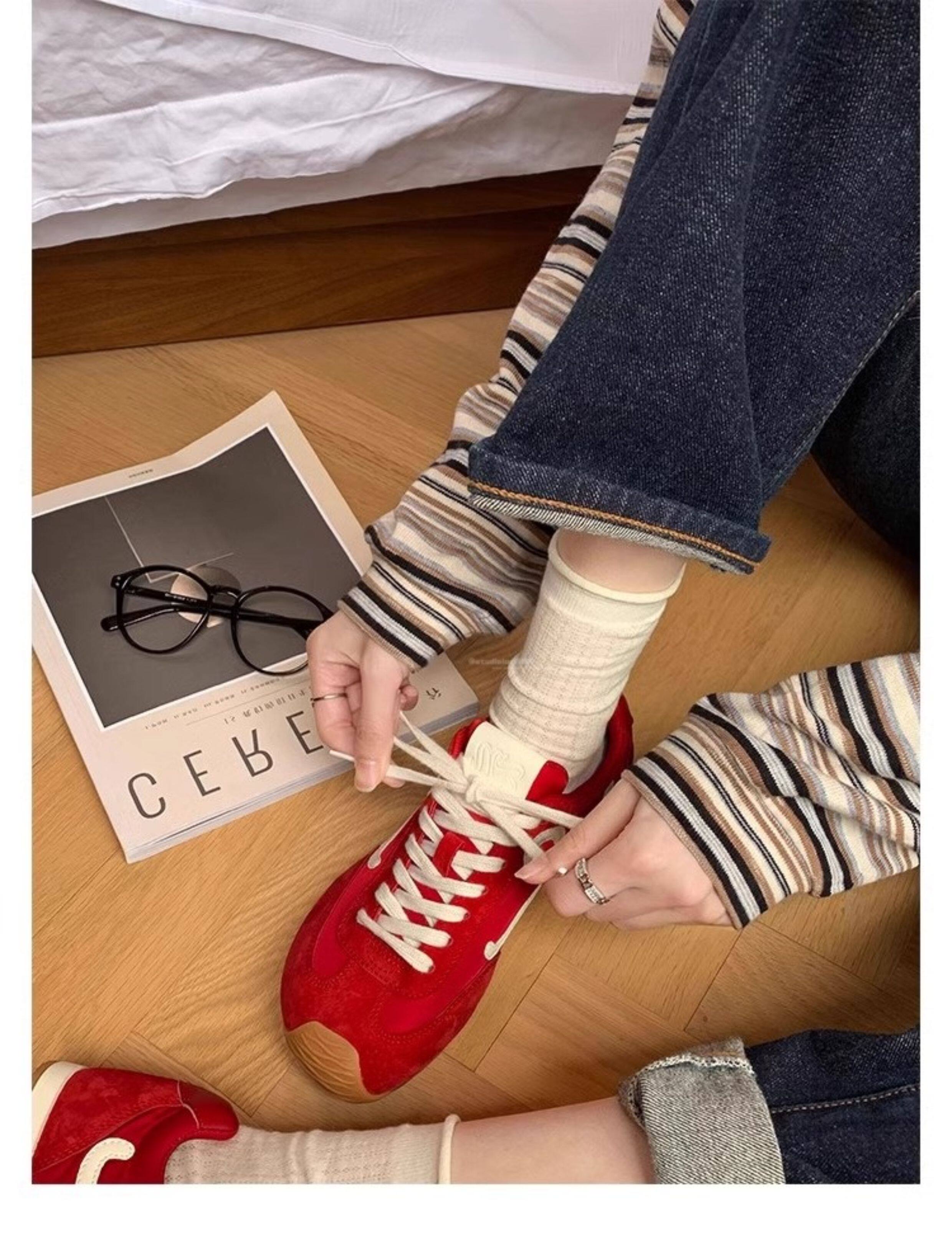 Hong Kong Fashion Flat Sneakers for Women 2026 Spring and Autumn New Casual Versatile Height-Increasing Suede German Training Shoes