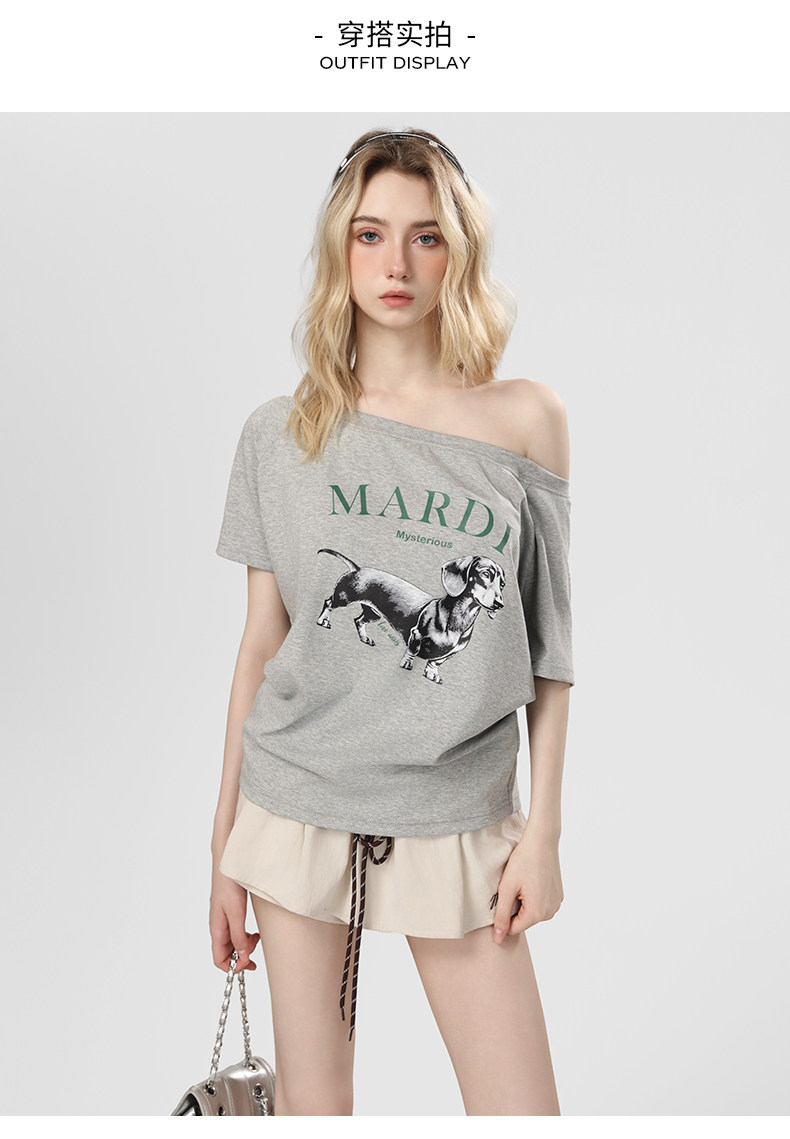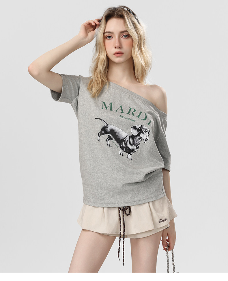 Mardi Korean Classic Dachshund 25 Summer New Style One-Shoulder Short-Sleeve Niche Design Casual Trendy Brand Top