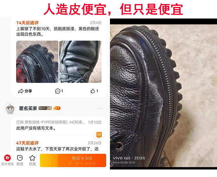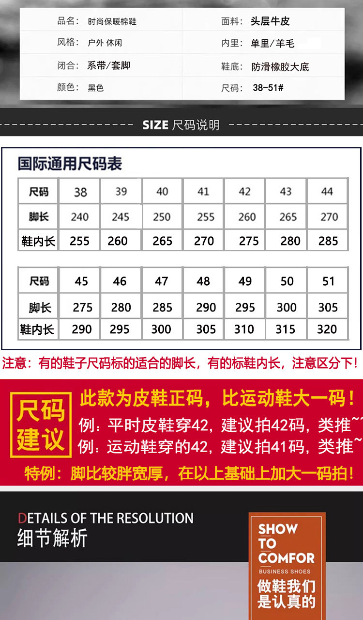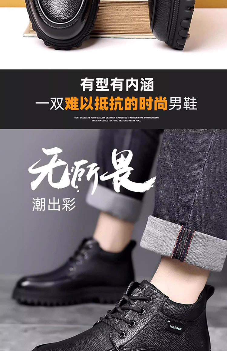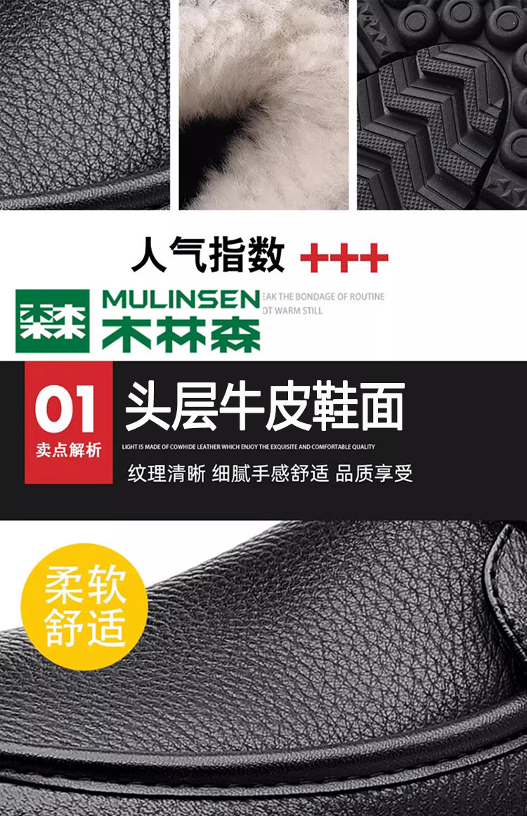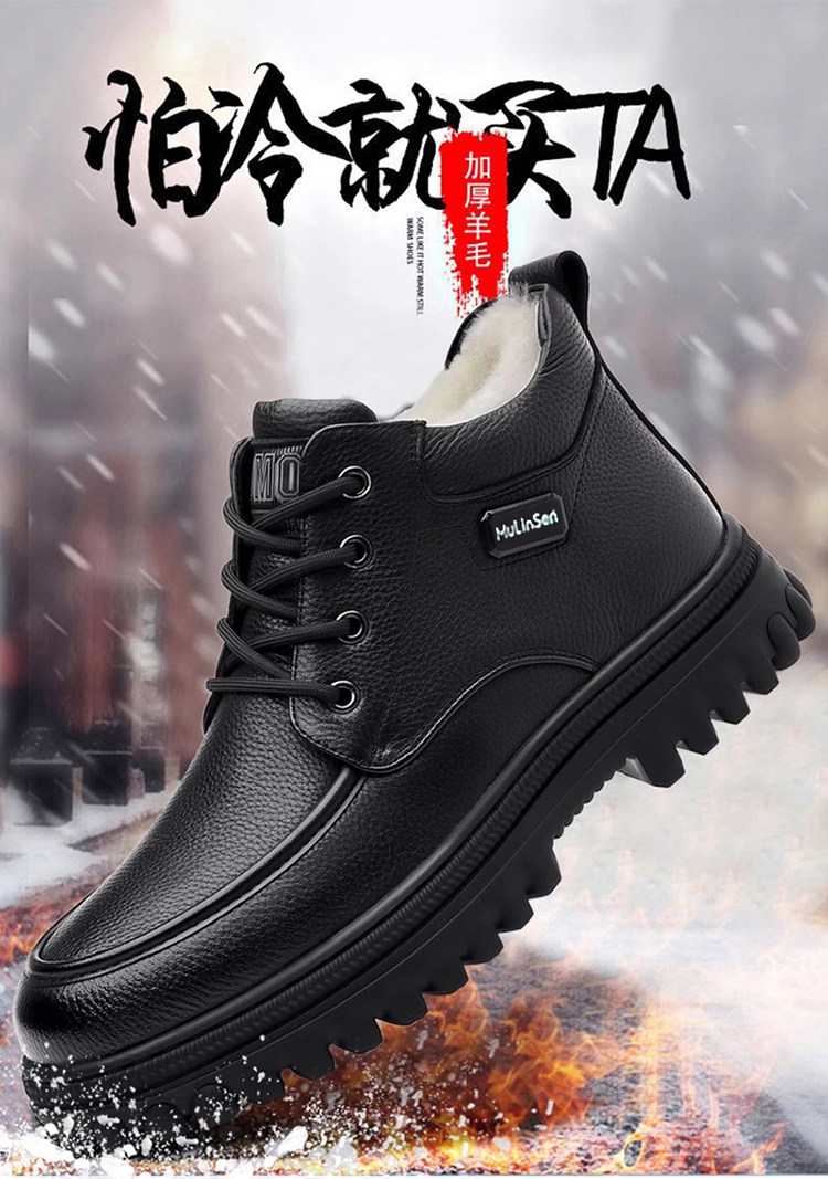 Mulinsen Large Size Men's Shoes Genuine Leather 46 Wool Fleece-Lined Cotton Shoes 47 Extra Large 48 Snow Boots 49 High-Top Leather Shoes 50