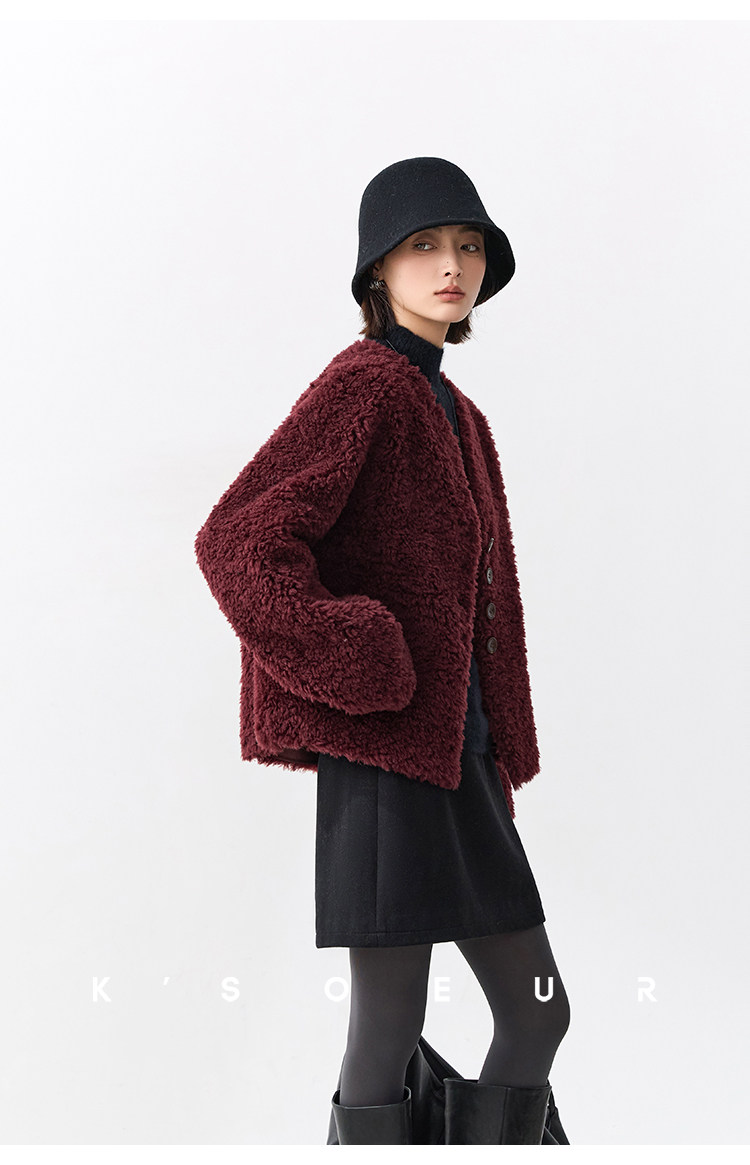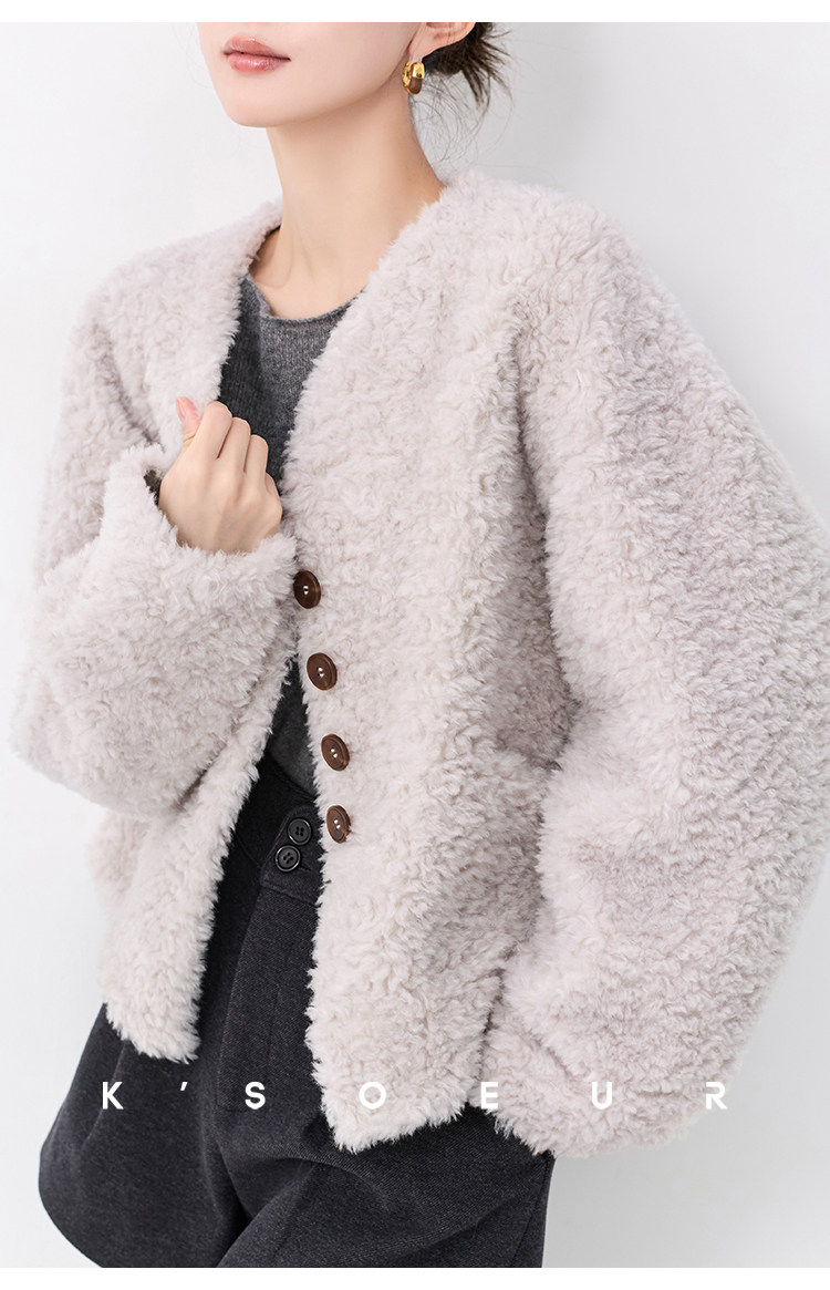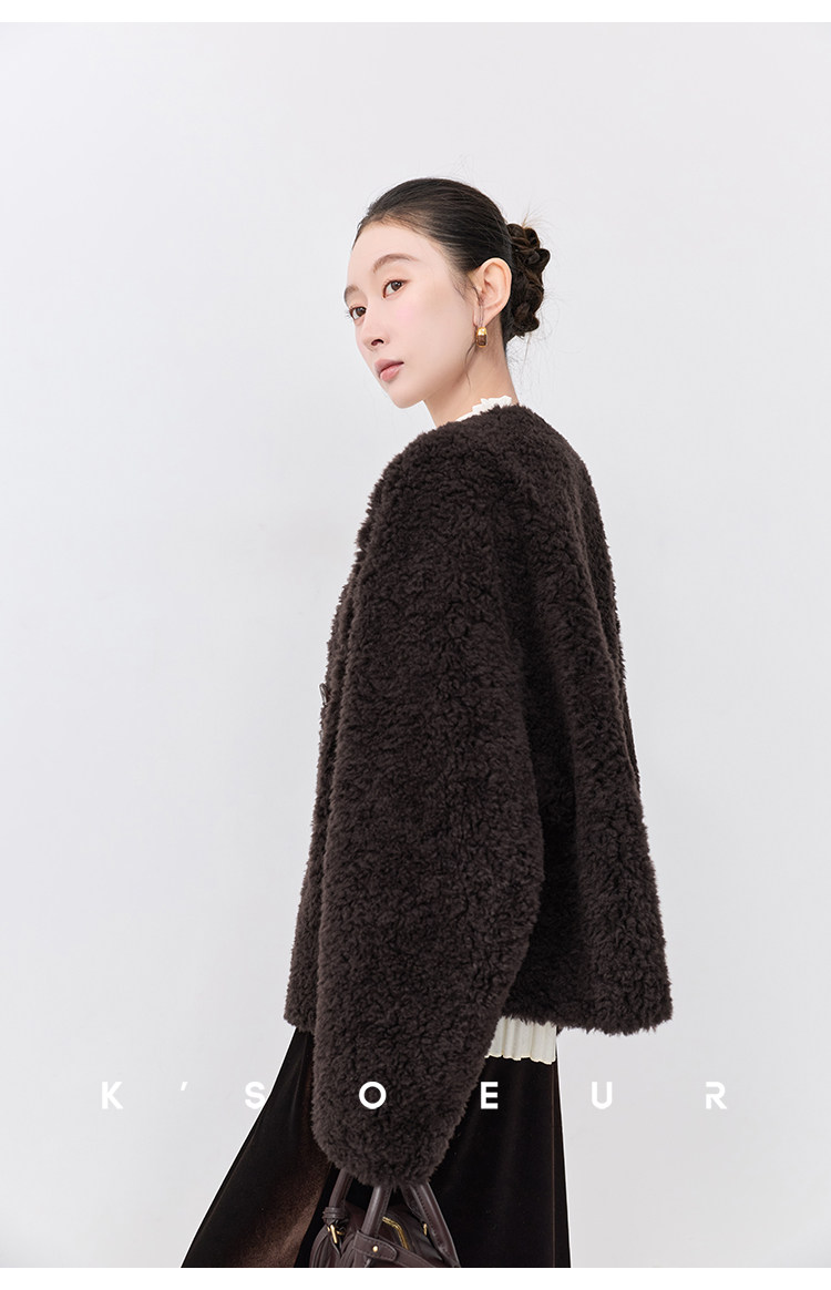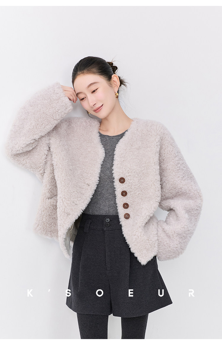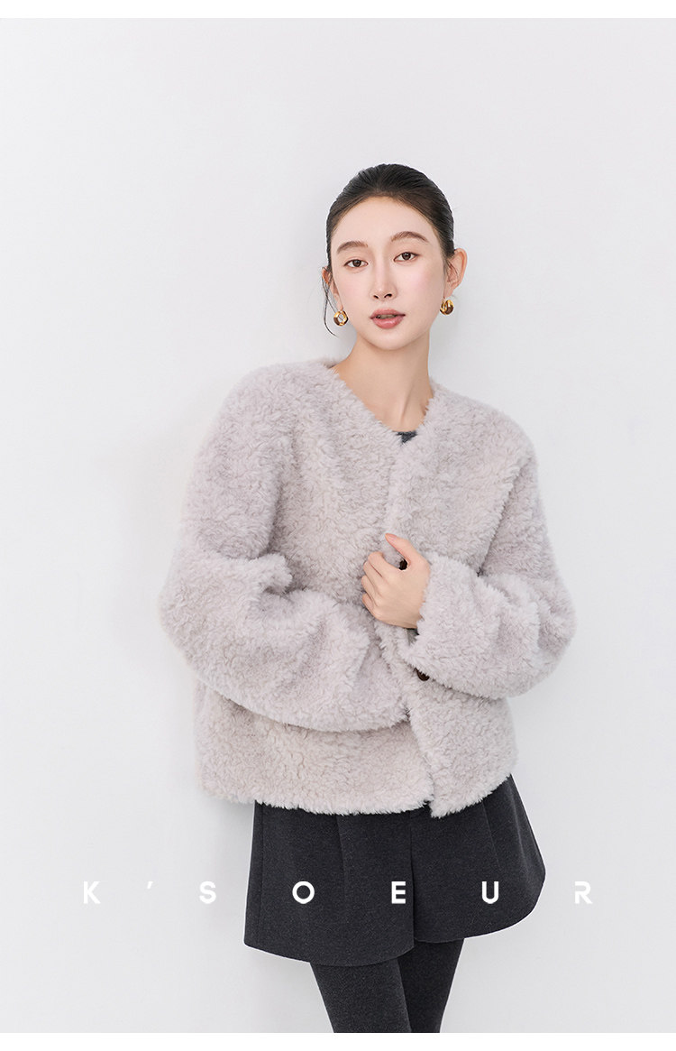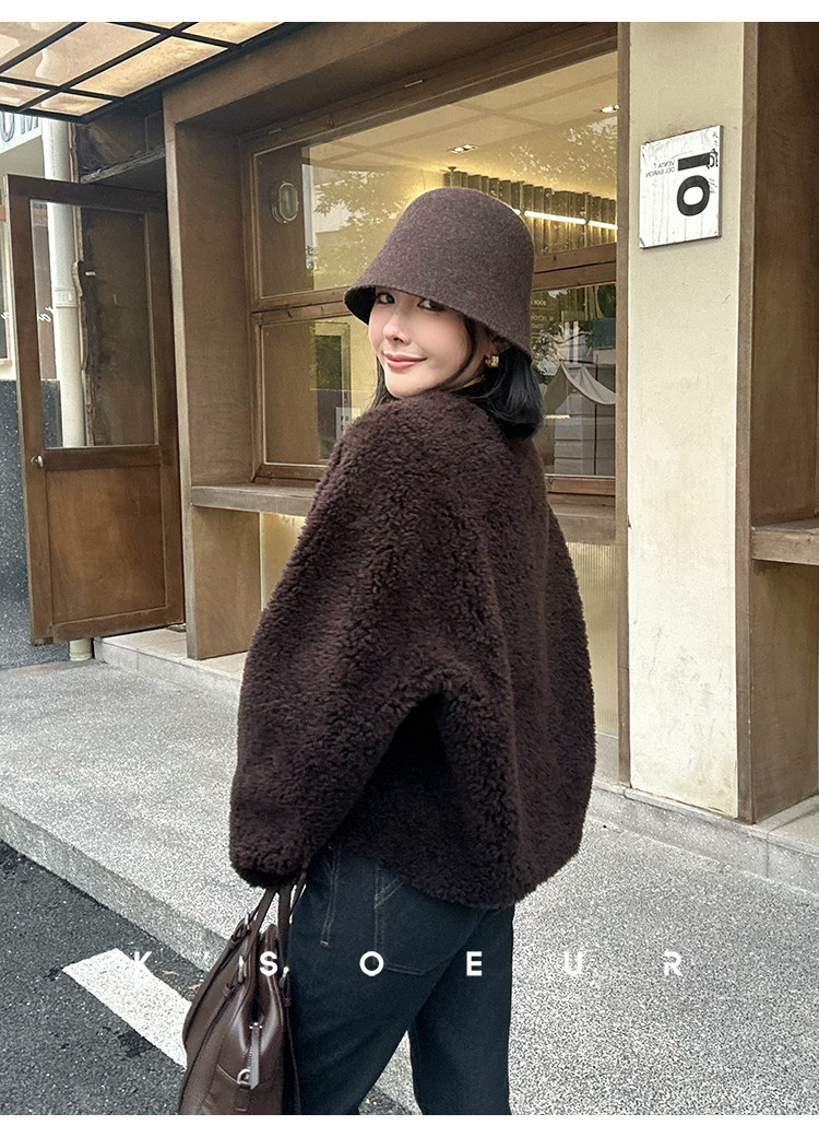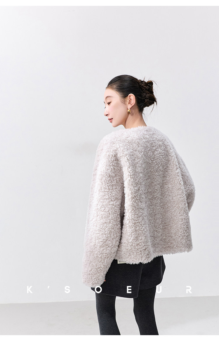 K Sister Ksoeur【Little Bean Bun】Bai Bai Wool Granules Loose Fit Batwing Sleeve Furry Coat for Women