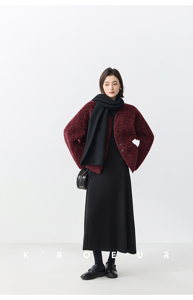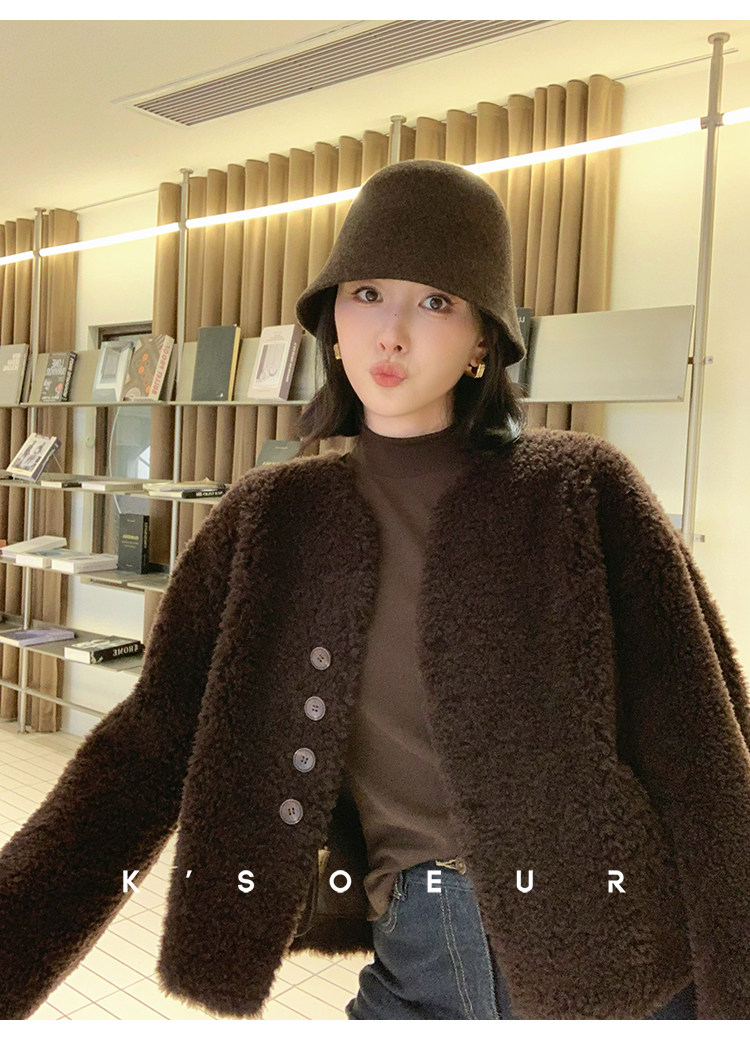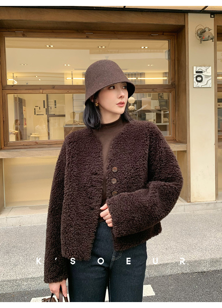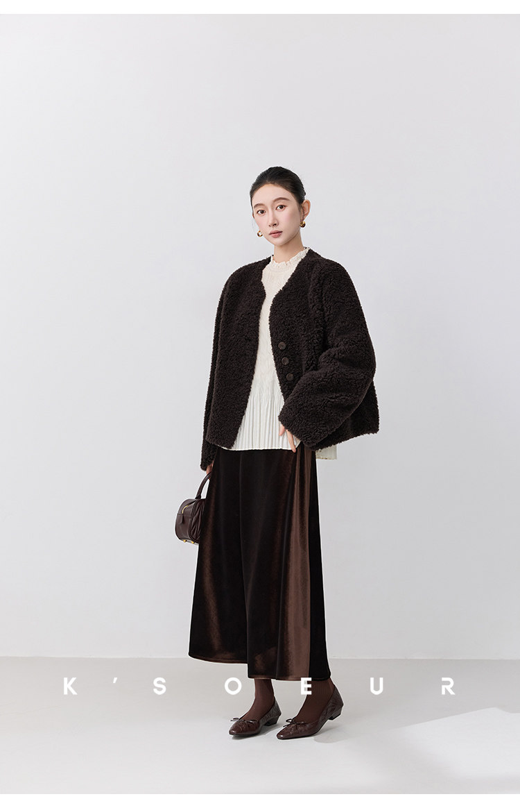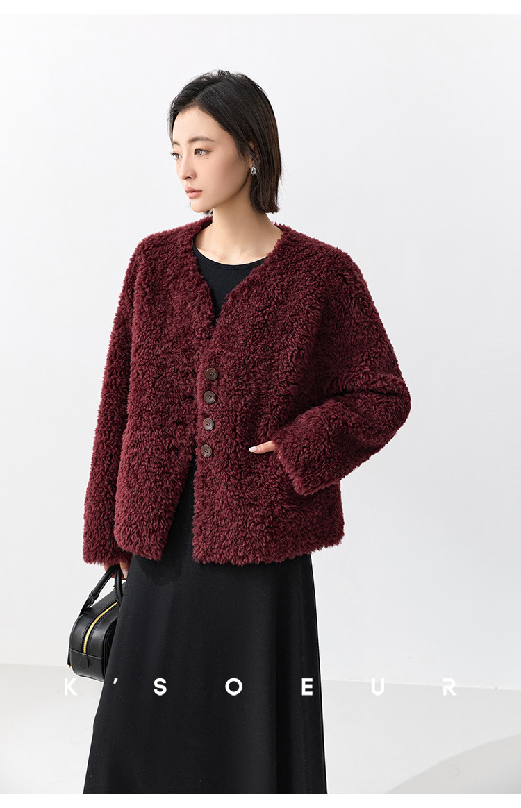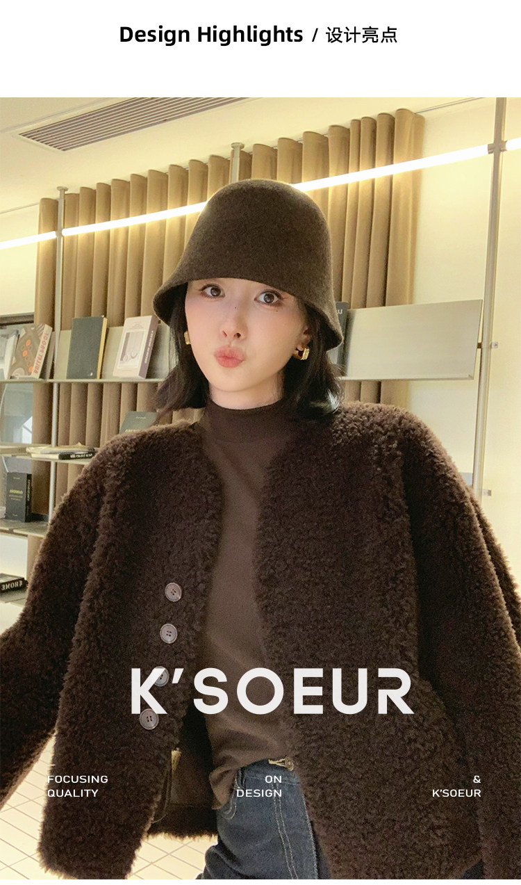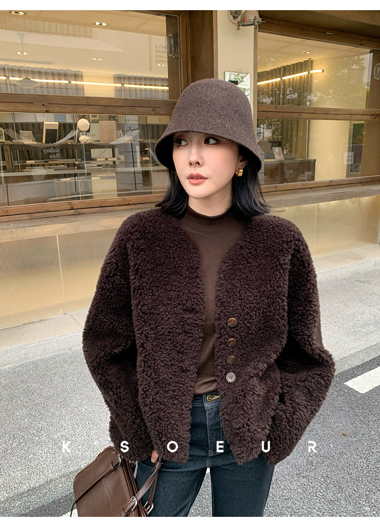 K Sister Ksoeur【Little Bean Bun】Bai Bai Wool Granules Loose Fit Batwing Sleeve Furry Coat for Women