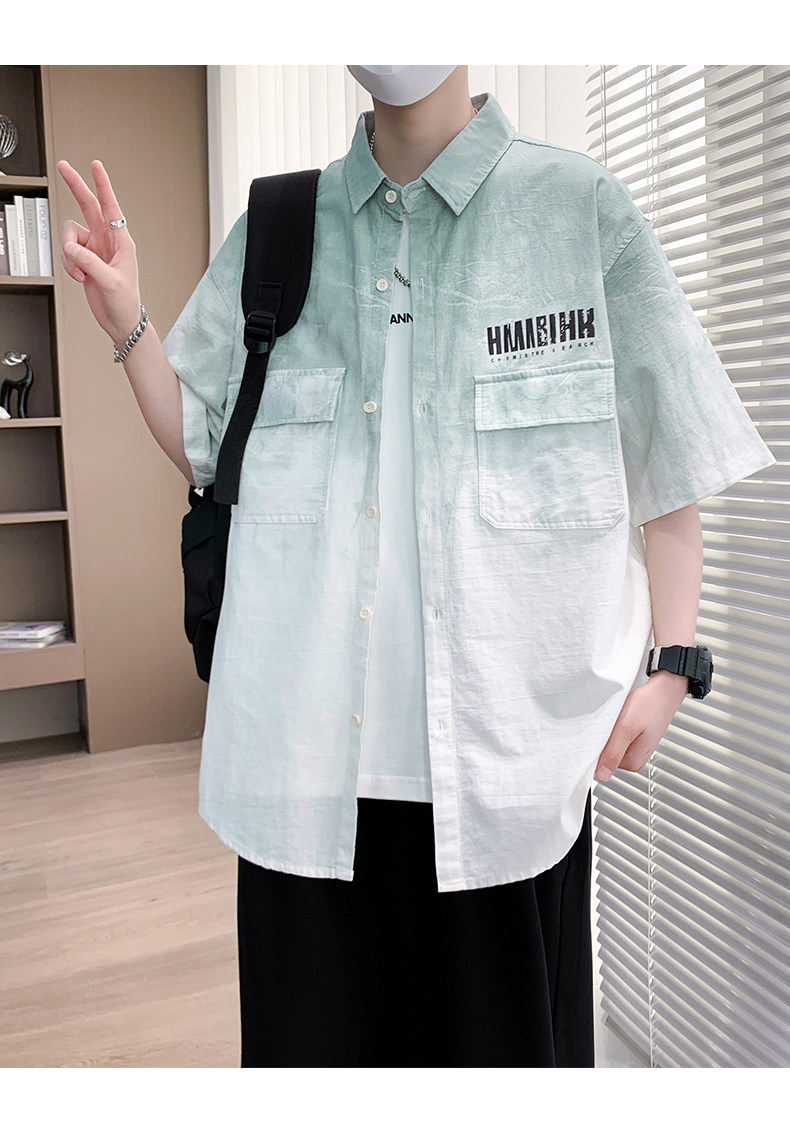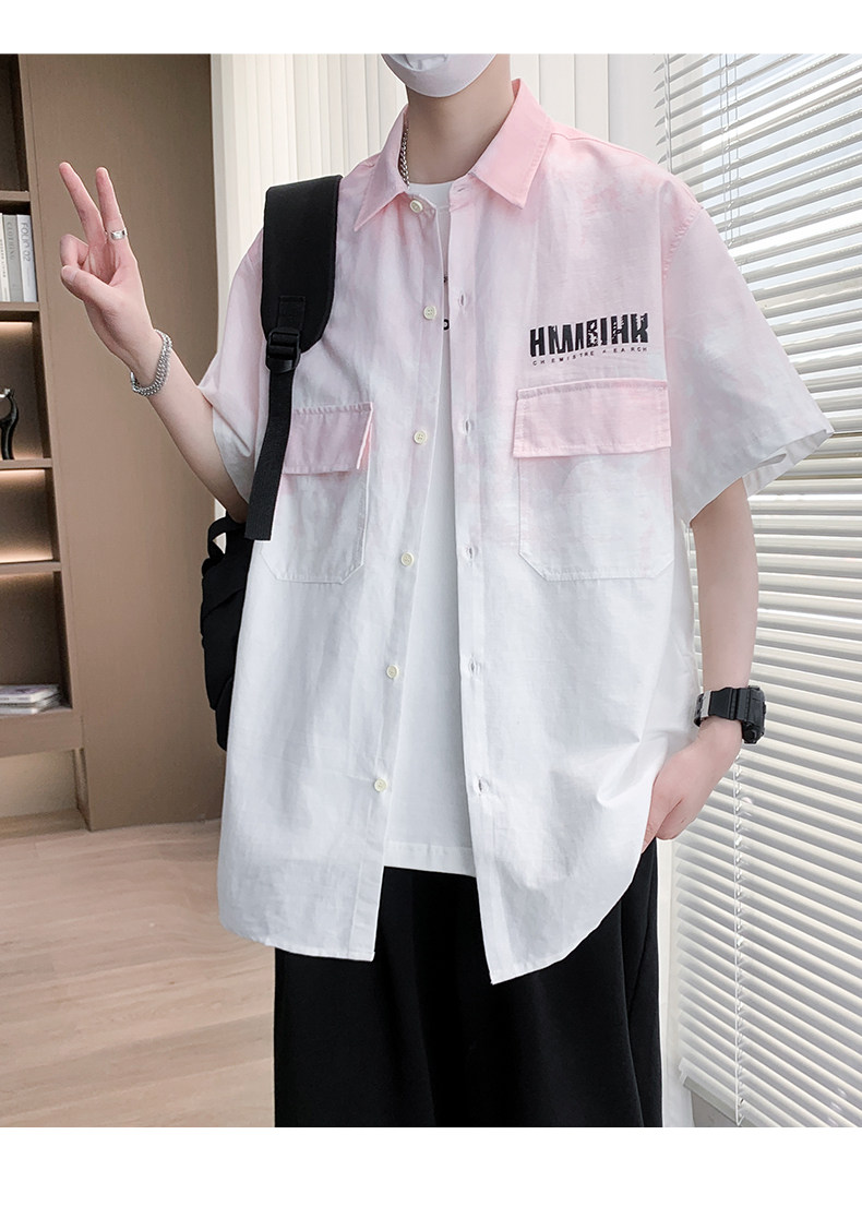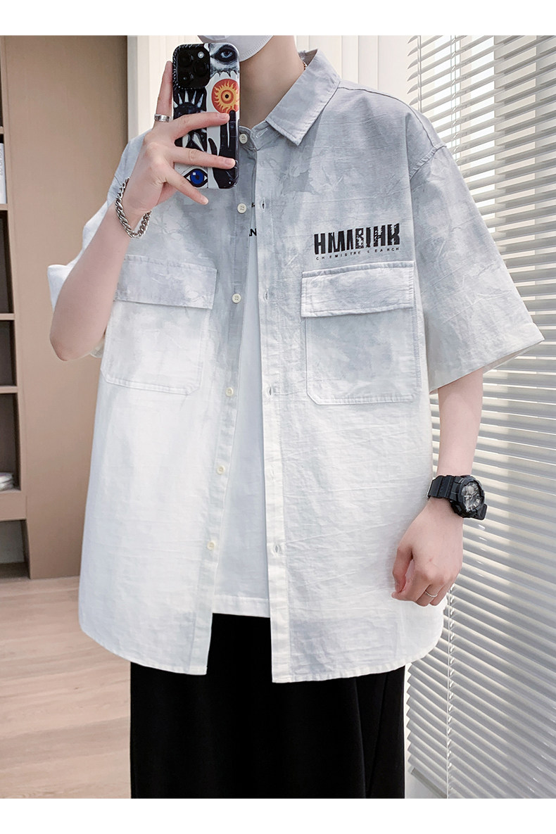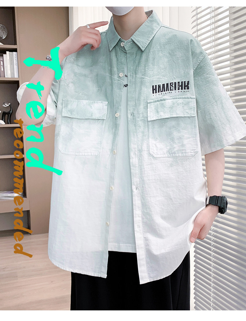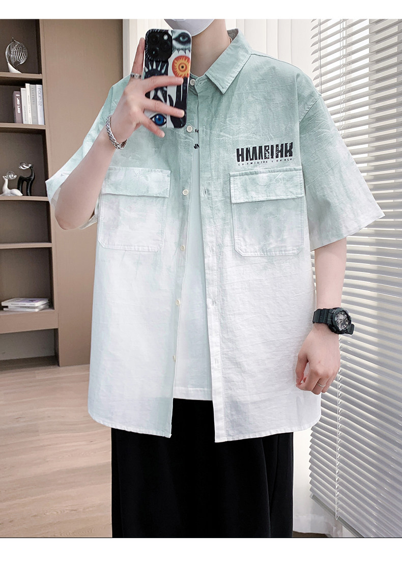 Gradient Color Pure Cotton Short-Sleeved Shirt Men's Summer Trendy Brand Loose Half-Sleeved Shirt for Teenagers, Junior High School and High School Students