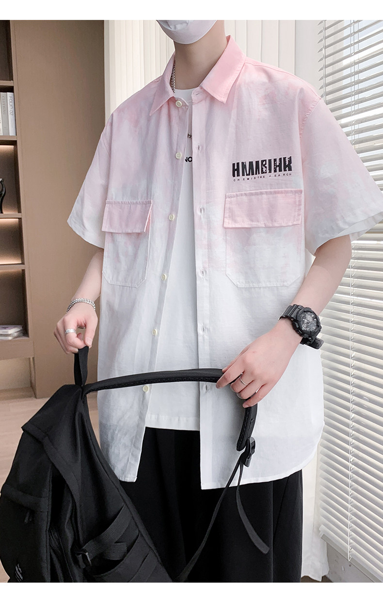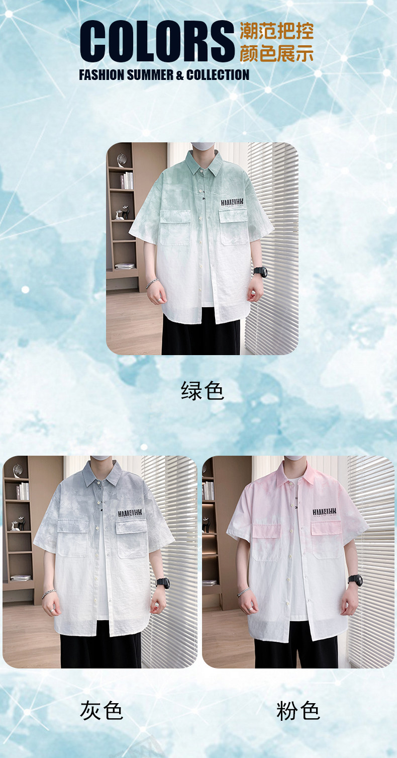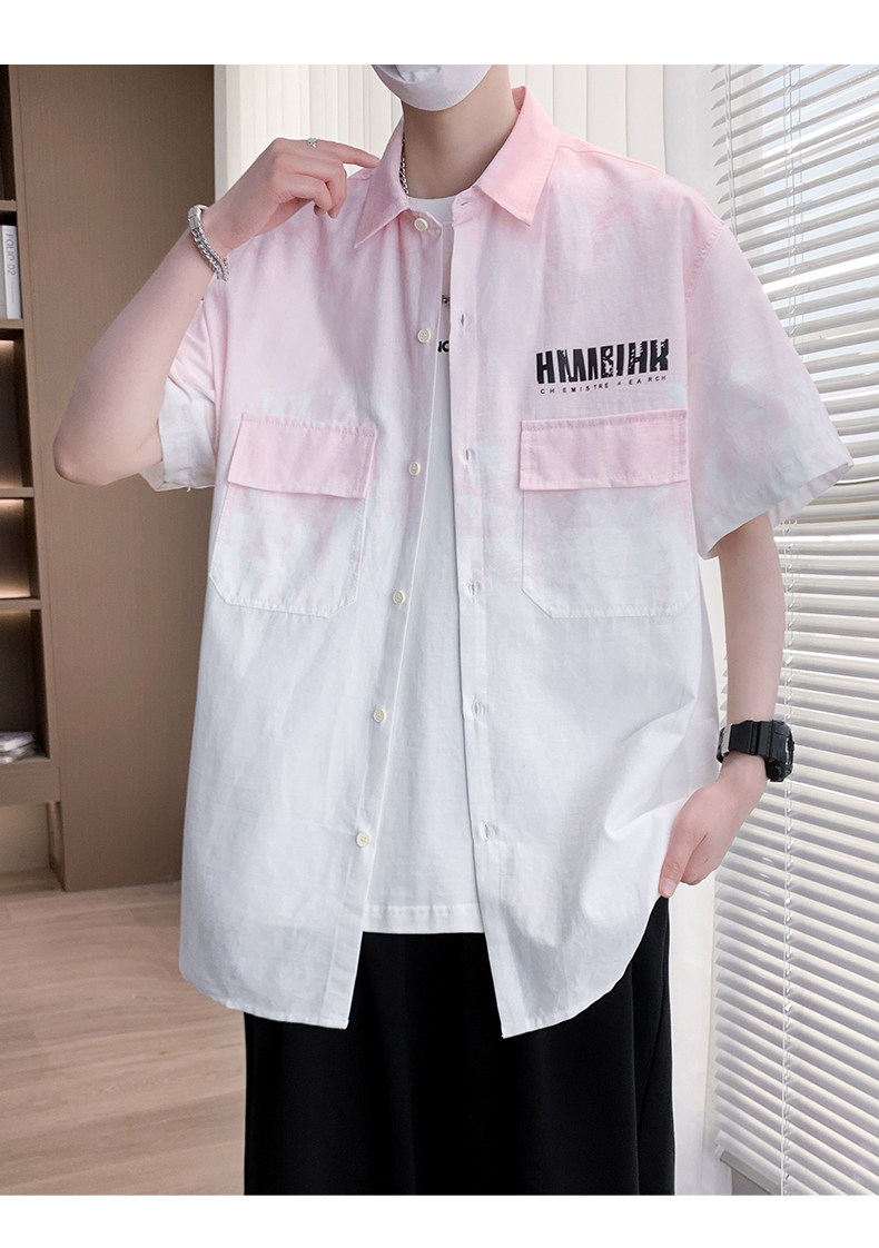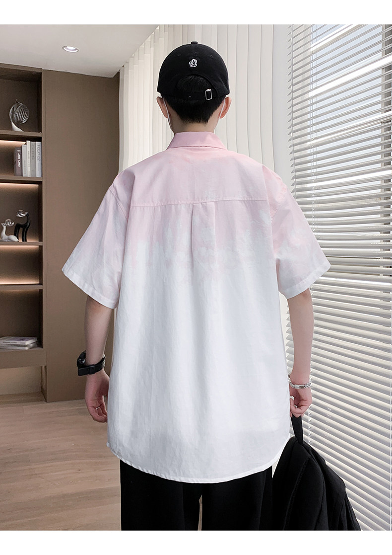 Gradient Color Pure Cotton Short-Sleeved Shirt Men's Summer Trendy Brand Loose Half-Sleeved Shirt for Teenagers, Junior High School and High School Students