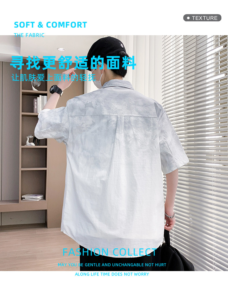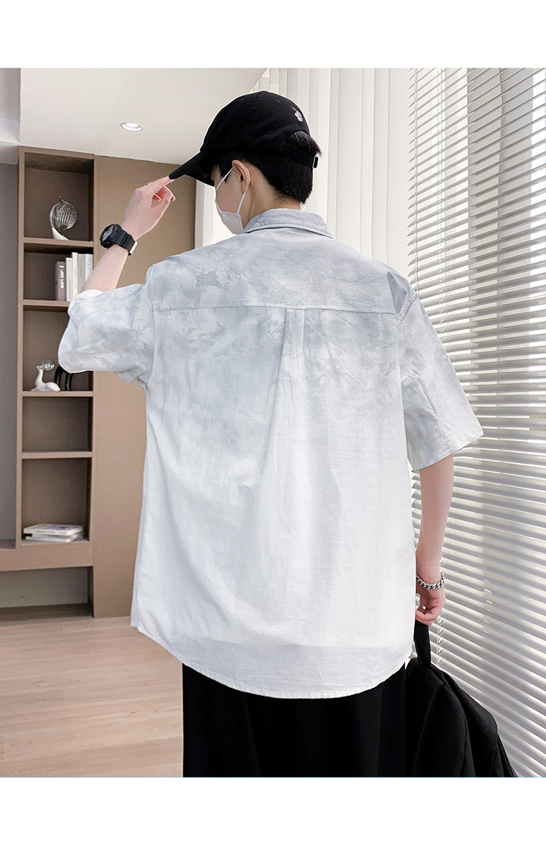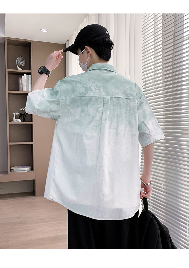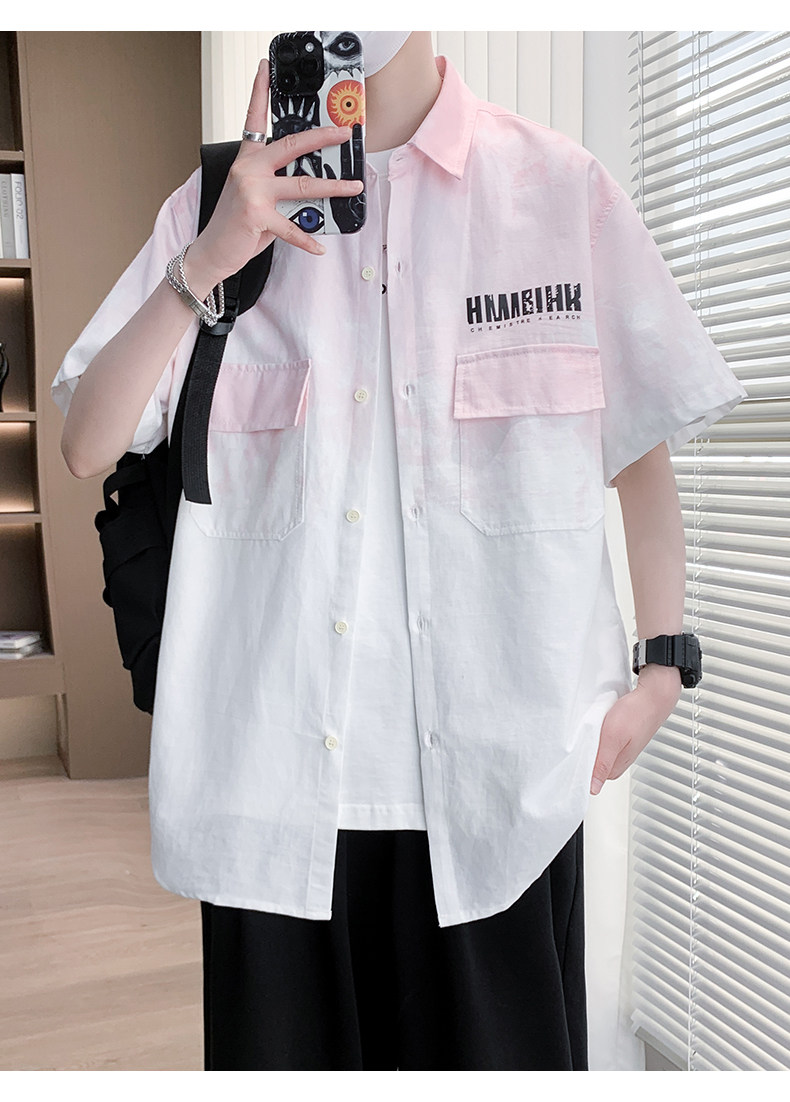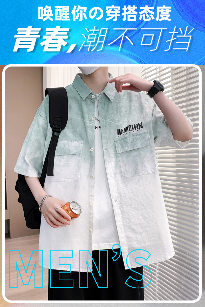 Gradient Color Pure Cotton Short-Sleeved Shirt Men's Summer Trendy Brand Loose Half-Sleeved Shirt for Teenagers, Junior High School and High School Students