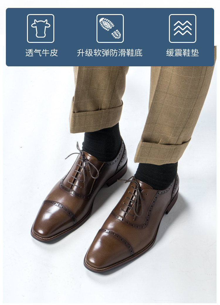 Men's Business Casual Brogue Carved British Formal Handmade Men's Shoes Genuine Leather Soft Sole Oxford Leather Shoes Wedding Shoes Trendy