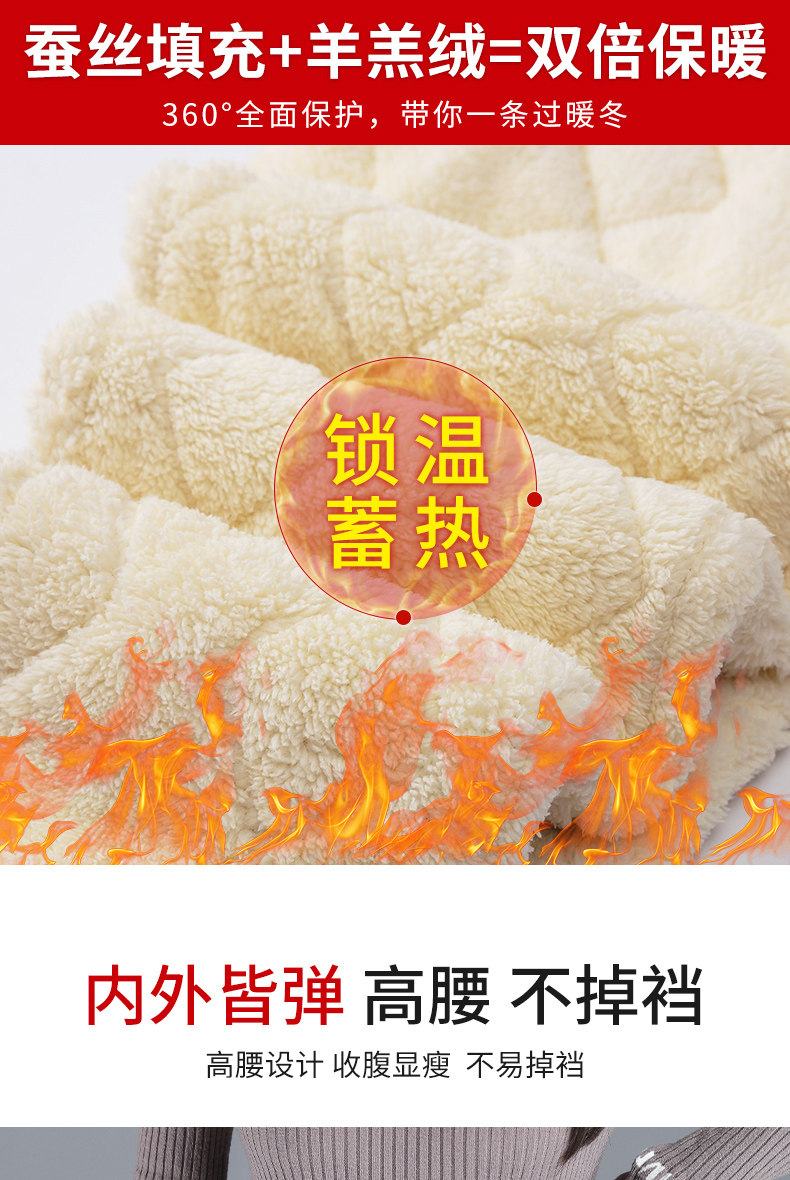 Silk-Filled Women's Winter Leggings with Fleece Lining, Thickened High-Waisted Plus-Size Lamb Wool Thermal Pants for Northeastern Regions