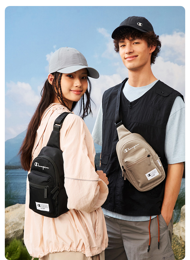 Champion Chest Bag for Men, American Style Sports Couple Waist Bag, Small Shoulder Bag, Spring Crossbody Bag, Women's Casual Backpack