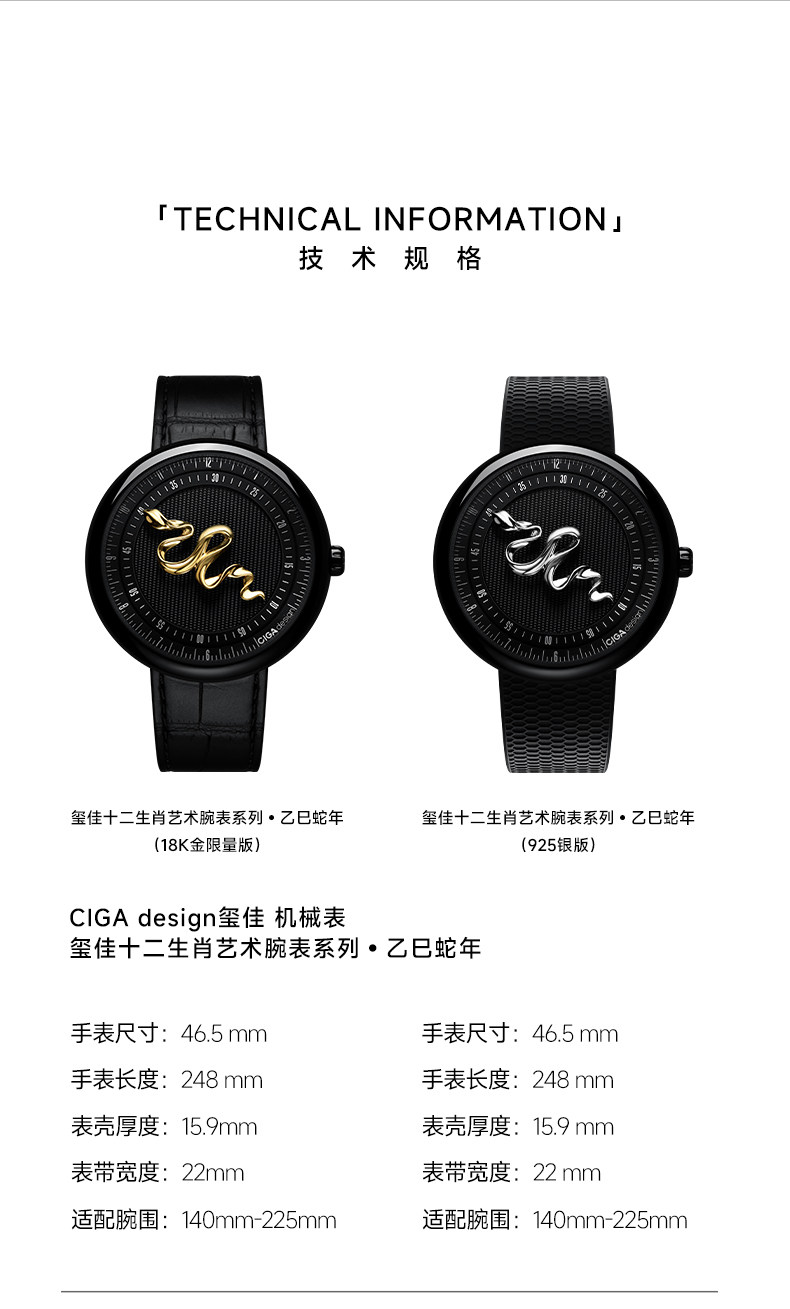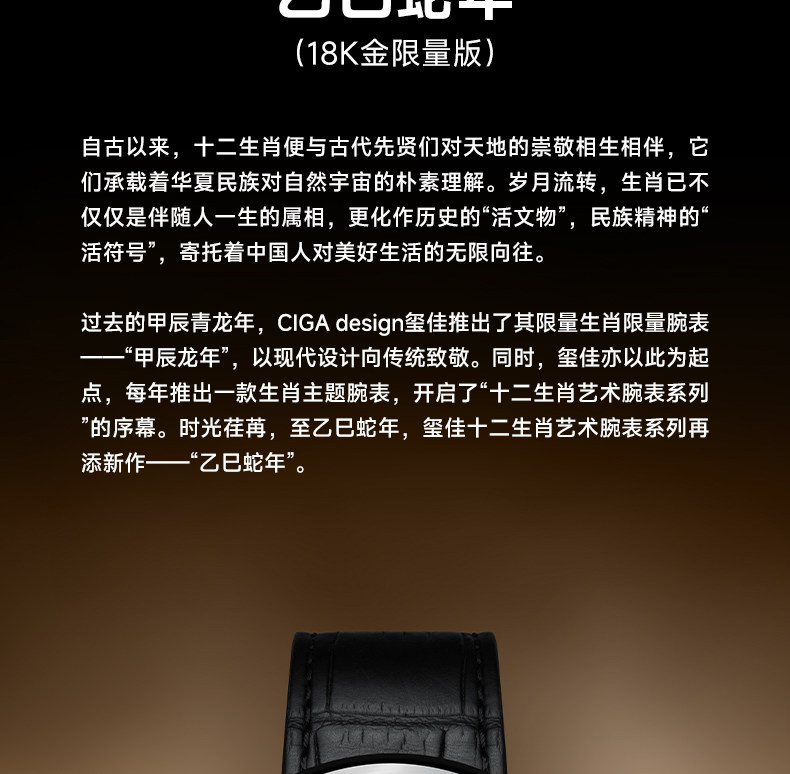 Ciga Design Xijia Zodiac Series Artistic Wristwatch Year of the Snake Limited Edition 18K Gold High-End Business Gift