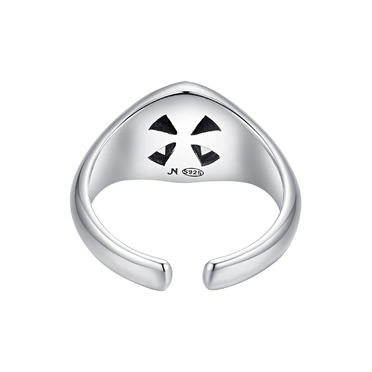 Janeng 925 Silver Cross Flower Signet Open Ring Unisex Vintage Adjustable Ring