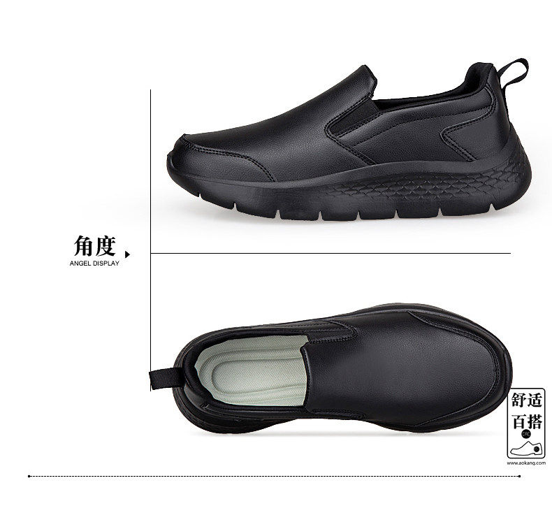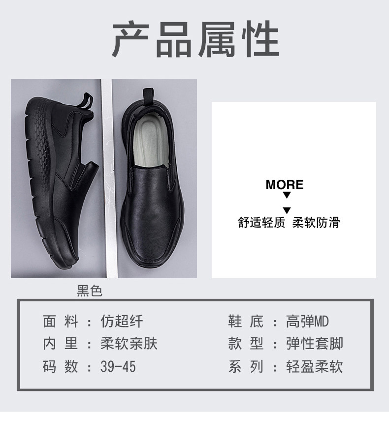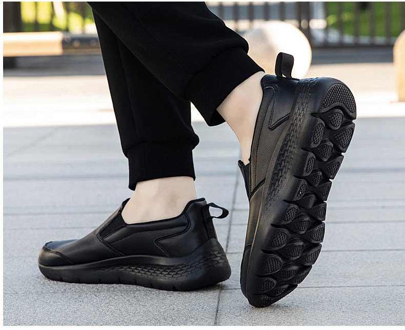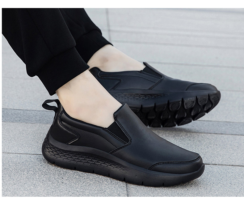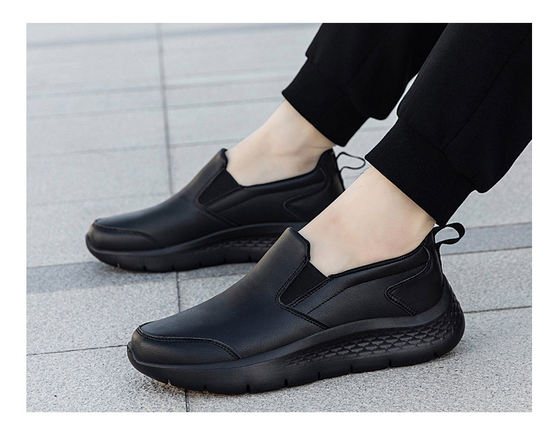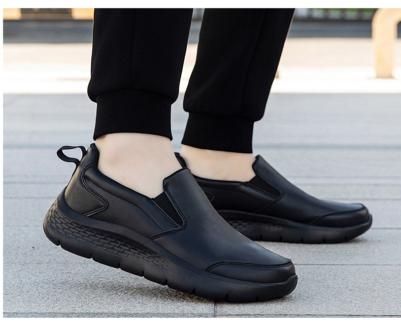 Slip-On Men's Shoes 47 Leather Black Chef Shoes Extra Large Size 48 Indoor Non-Slip Oil-Proof Water-Resistant Sports Leather Shoes Soft Sole