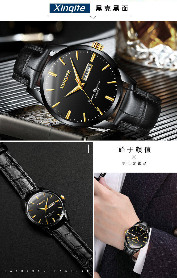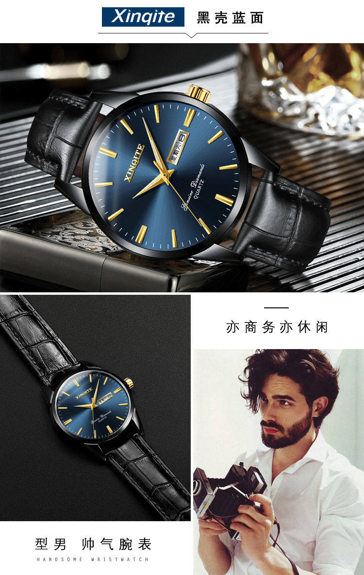 Swiss Genuine Watch Men's Fully Automatic Mechanical Watch Fashionable Business Ultra-Thin Waterproof Luminous Quartz Leather Strap Model