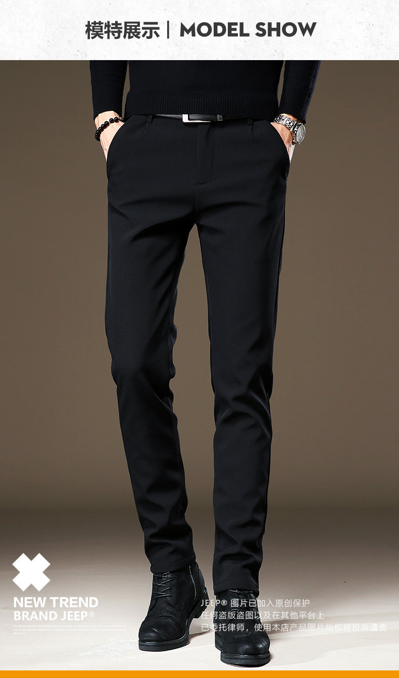 Jeep High-End Men's Slim-Fit Formal Business Trousers for Spring and Summer, Thin Black Wrinkle-Resistant No-Iron Casual Pants for Men